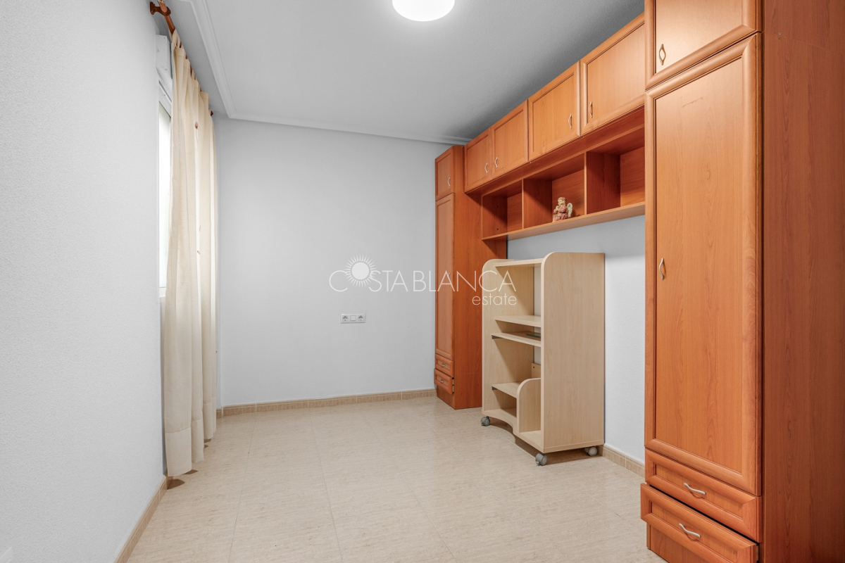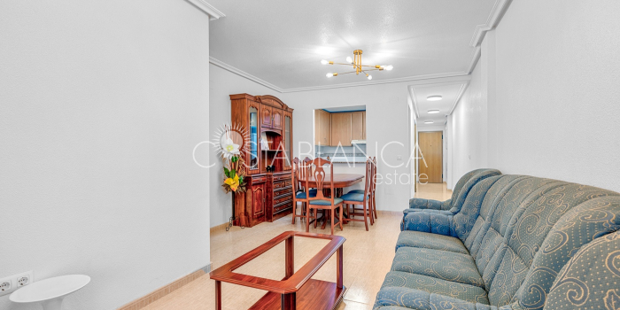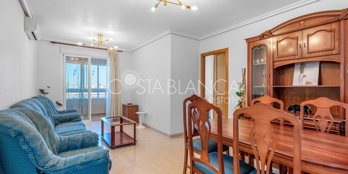 Diese schöne Wohnung in Torrevieja bietet eine außergewöhnliche Gelegenheit, komfortables Wohnen in einer der lebendigsten Küstenstädte der Costa Blanca zu genießen. Sie befindet sich im vierten Stock an der Rambla Juan Mateo und verfügt über zwei Schlafzimmer, zwei Badezimmer, ein helles Wohnzimmer mit einem separaten Essbereich sowie eine eigenständige Küche mit einem Fenster zum Wohnraum, was eine angenehme und verbundene Atmosphäre schafft. Darüber hinaus umfasst die Immobilie einen praktischen Hauswirtschaftsraum, der als Waschküche genutzt wird, sowie einen Balkon, auf dem man das mediterrane Licht und die lebendige Energie der Umgebung genießen kann. Die Wohnung wird teilweise möbliert, wie auf den Fotos zu sehen ist, verkauft, sodass neue Eigentümer die Möglichkeit haben, die Innenräume nach ihren eigenen Vorstellungen zu gestalten, während bereits eine funktionale Basis vorhanden ist. Sie eignet sich sowohl für den dauerhaften Wohnsitz als auch hervorragend als Investition für die Kurz- oder Langzeitvermietung – dank ihres attraktiven Grundrisses und der zentralen Lage. Die Rambla Juan Mateo ist eine der bekannten Straßen Torreviejas, in unmittelbarer Nähe zu Geschäften, Cafés, Restaurants, Supermärkten und öffentlichen Verkehrsmitteln. Das Viertel bietet eine perfekte Mischung aus Komfort und lokalem Charme, mit allem, was man braucht, in fußläufiger Entfernung. Torrevieja selbst ist eine dynamische Küstenstadt, die für ihre Strände, den Yachthafen, die Promenaden sowie die einzigartigen rosa und grünen Salzlagunen bekannt ist und einen entspannten mediterranen Lebensstil mit zahlreichen Freizeitmöglichkeiten bietet. Diese Immobilie stellt eine seltene Gelegenheit dar, eine geräumige und gut gelegene Wohnung in Torrevieja zu einem äußerst attraktiven Preis zu erwerben. Egal, ob Sie ein dauerhaftes Zuhause, ein Feriendomizil oder eine kluge Mietinvestition suchen – diese Wohnung hat das Potenzial, all Ihren Erwartungen gerecht zu werden.