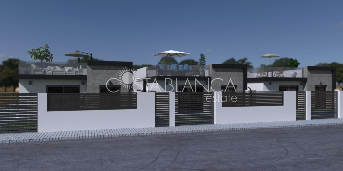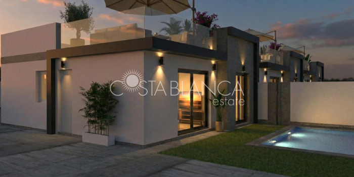 Luxuriöse einstöckige Villen mit privaten Pools in Balsicas, Murcia Exklusive Neubauwohnanlage Entdecken Sie eine exklusive Anlage mit 5 freistehenden Villen in Balsicas, die jeweils auf einer Etage angelegt sind und über einen privaten Swimmingpool, großzügige Terrassen und eine spektakuläre Dachterrasse verfügen. Diese modernen Häuser bieten 3 Schlafzimmer und 2 Badezimmer und verbinden Komfort, Privatsphäre und modernen Stil in einer der ruhigsten und am besten angebundenen Gegenden von Murcia. Modernes Design und hochwertige Ausstattung Diese Villen zeichnen sich durch ihre offene Raumaufteilung aus, bei der die voll ausgestattete Küche nahtlos in den hellen Wohn- und Essbereich übergeht. Jede Immobilie umfasst: Voll ausgestattete Küche mit Geräten Komplette Badezimmer mit Möbeln, Spiegel und Duschwand Privater Pool Parkplatz auf dem Grundstück Beleuchtung inklusive, außer dekorative Lampen Vorinstallation für eine Klimaanlage Sommerküche auf der Sonnenterrasse Das einstöckige Design sorgt für maximalen Komfort, während Sie auf dem großen Solarium das ganze Jahr über die Sonne genießen können. Eine ruhige und gut angebundene Lage Balsicas ist bekannt für seine charmante Atmosphäre, umgeben von Natur, Golfplätzen und weitläufigen Grünflächen. Es ist ein idealer Ort für diejenigen, die das Leben im Freien, Ruhe und das warme mediterrane Klima genießen. Die Stadt bietet alle wichtigen Dienstleistungen, Restaurants und Freizeitmöglichkeiten in nur wenigen Minuten Entfernung. Entfernungen zu den wichtigsten Sehenswürdigkeiten: Internationaler Flughafen Murcia Corvera: ca. 22 km Flughafen Alicante: ca. 90 km Nächstgelegene Golfplätze: New Sierra Golf 4 km, La Torre Golf 8 km, Hacienda Riquelme 12 km Strände des Mar Menor: ca. 18 km Hafen von San Pedro del Pinatar: ca. 24 km Ideal zum Wohnen oder Investieren Dank seines ausgezeichneten Klimas, der Nähe zum Mar Menor und der guten Anbindung an Flughäfen ist Balsicas ein attraktives Ziel sowohl für dauerhaftes Wohnen als auch für Urlaubsinvestitionen. Die Gegend ist besonders beliebt bei Golfliebhabern und Menschen, die einen entspannten Lebensstil inmitten der Natur suchen. Machen Sie den nächsten Schritt Diese Luxusvillen bieten alles, was Sie für ein komfortables Leben am Mittelmeer benötigen. Kontaktieren Sie uns noch heute und sichern Sie sich Ihren Platz in dieser exklusiven Wohnanlage.