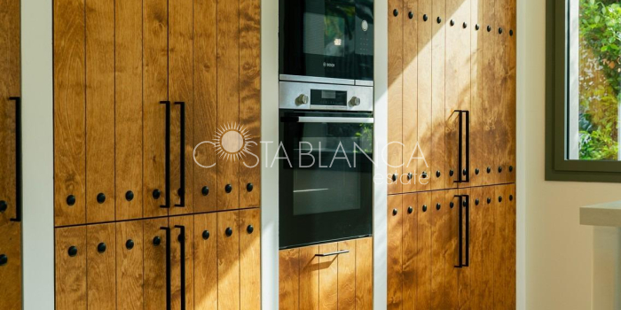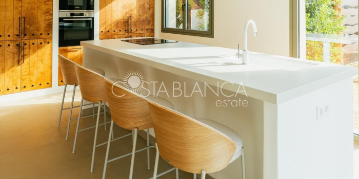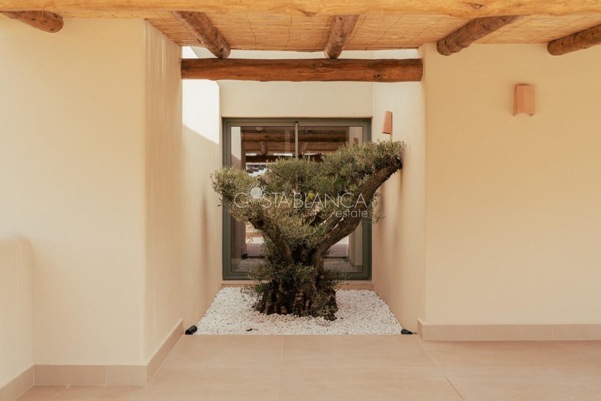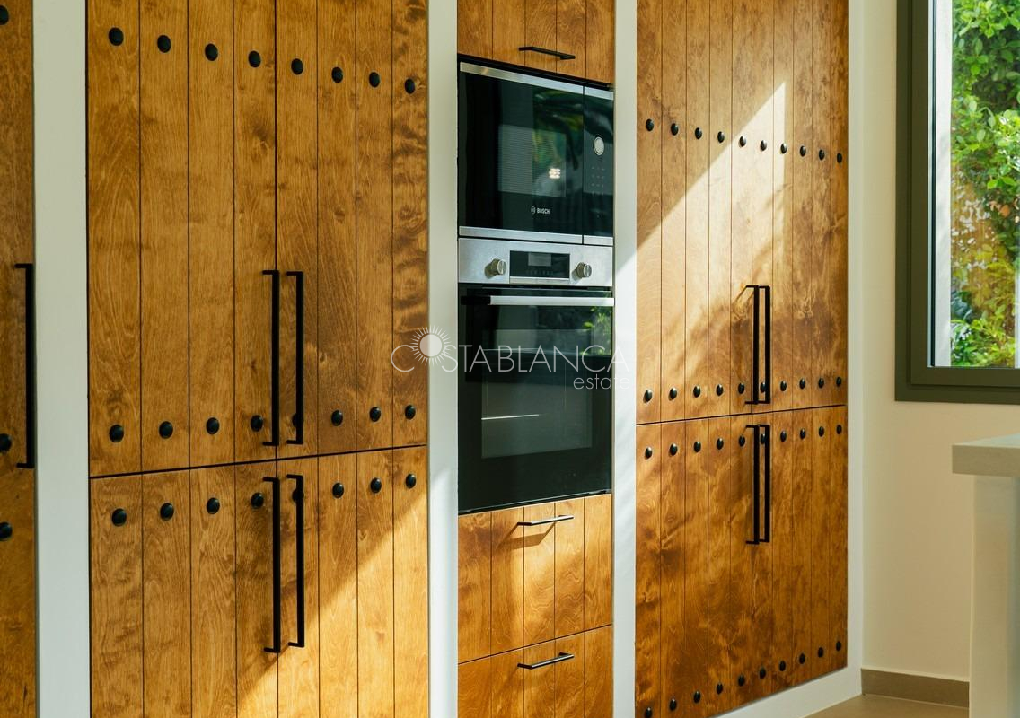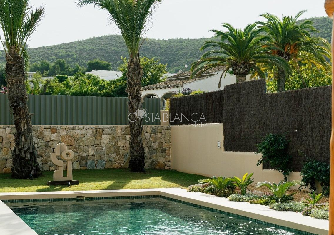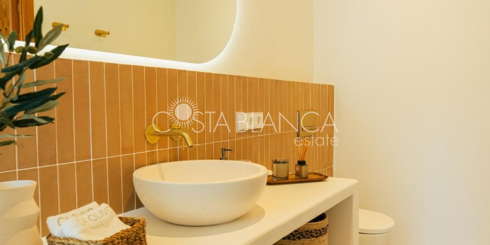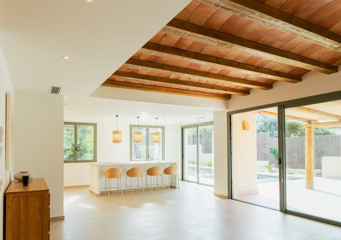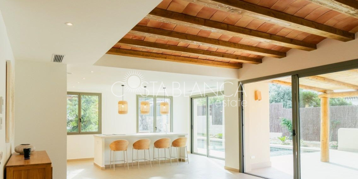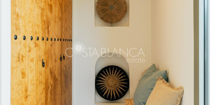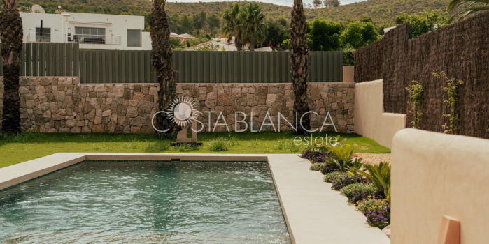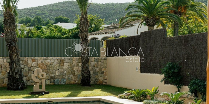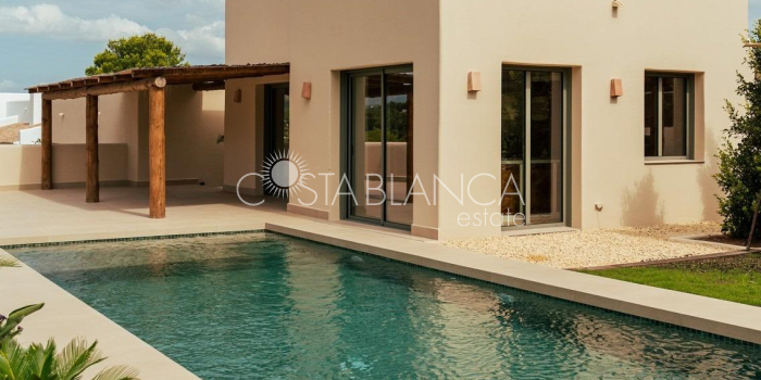 Schlüsselfertige Villa im mediterranen Stil in Javea mit privatem Pool und großem Grundstück Exklusives Neubauhaus in Valle del Sol Entdecken Sie diese atemberaubende, bezugsfertige Villa in der ruhigen Urbanisation Valle del Sol, nur eine kurze Autofahrt vom Stadtzentrum von Javea und nur 2,5 km vom beliebten Strand El Arenal entfernt. Das Anwesen wurde mit einer Mischung aus mediterranen und Ibiza-Einflüssen gestaltet und zeichnet sich durch weiche, geschwungene Linien, freiliegende Holzbalken und Gewölbedecken aus, die eine warme und authentische Atmosphäre schaffen. Große Fenster mit Fensterläden füllen das Haus mit natürlichem Licht und verstärken das Gefühl von Ruhe und Komfort. Elegante einstöckige Aufteilung Die Villa wurde auf einem großzügigen 1000 m² großen Grundstück erbaut und erstreckt sich über eine Etage, um maximalen Komfort zu bieten. Sie umfasst einen hellen Wohn- und Essbereich, eine voll ausgestattete Küche, einen Hauswirtschaftsraum, drei geräumige Schlafzimmer mit Einbauschränken, drei Badezimmer en suite und ein Gäste-WC. Jedes Detail wurde sorgfältig ausgewählt, mit handgefertigten Natursteinelementen und Holzbalken, die den traditionellen Charme der Costa Blanca Nord widerspiegeln. Außenbereiche zum Entspannen Der Außenbereich der Villa bietet den idealen Rahmen, um den mediterranen Lebensstil zu genießen. Ein wunderschön angelegter Garten, ein türkisfarbener Swimmingpool und sonnendurchflutete Terrassen bieten den perfekten Raum, um das ganze Jahr über zu speisen, sich zu unterhalten und zu entspannen. Zur Immobilie gehören außerdem eine Pergola mit Platz für zwei Autos, Sonnenkollektoren, eine Zweizonen-Klimaanlage, eine Video-Gegensprechanlage, eine Alarmanlage und eine Hausautomation für die Beleuchtung. Erstklassige Lage in Javea Javea ist eine der begehrtesten Städte an der Costa Blanca Nord und bekannt für ihre schönen Strände, Buchten, Yachthäfen, Golfplätze, Naturparks und ihre ausgezeichnete Gastronomie. Das milde Klima und die hohe Lebensqualität ziehen Einwohner und Investoren aus ganz Europa an. Wichtige Entfernungen von der Villa: Strand El Arenal 2,5 km Hafen und Yachthafen von Javea 6 km Golfclub Javea 4 km Flughafen Alicante 100 km Flughafen Valencia 125 km Ihr mediterranes Zuhause wartet auf Sie Diese Villa ist die ideale Wahl für diejenigen, die einen dauerhaften Wohnsitz, ein luxuriöses Ferienhaus oder eine hochwertige Investition suchen. Kontaktieren Sie uns noch heute, um einen Besichtigungstermin zu vereinbaren und diese außergewöhnliche Immobilie in Javea zu entdecken.
