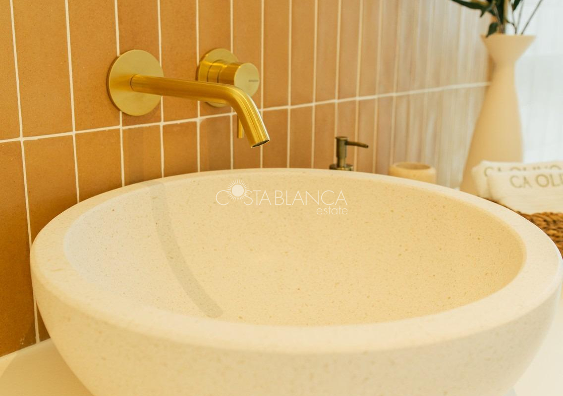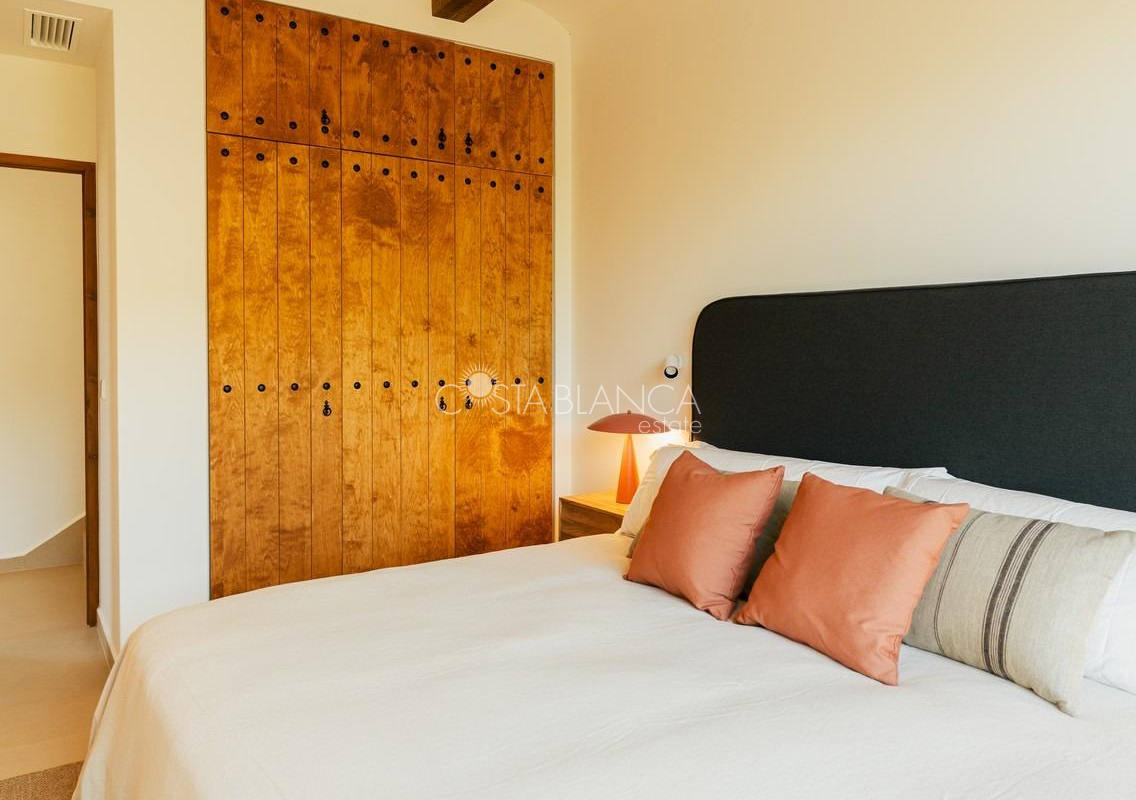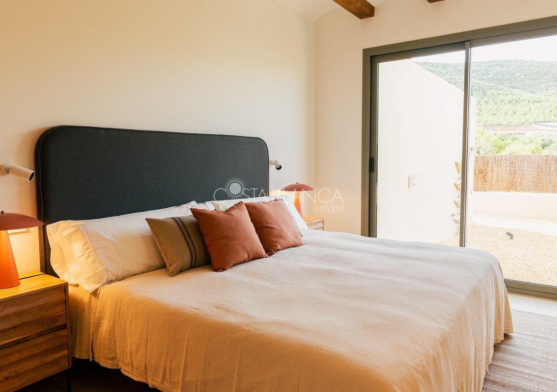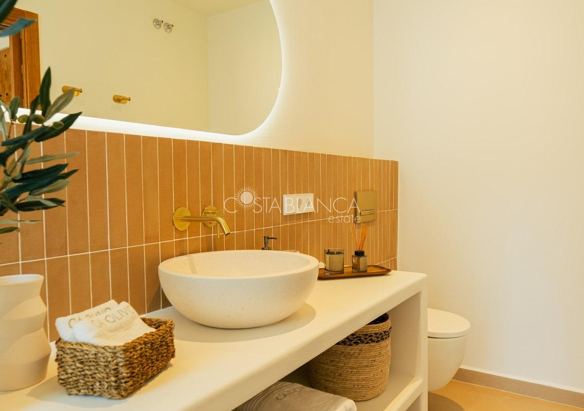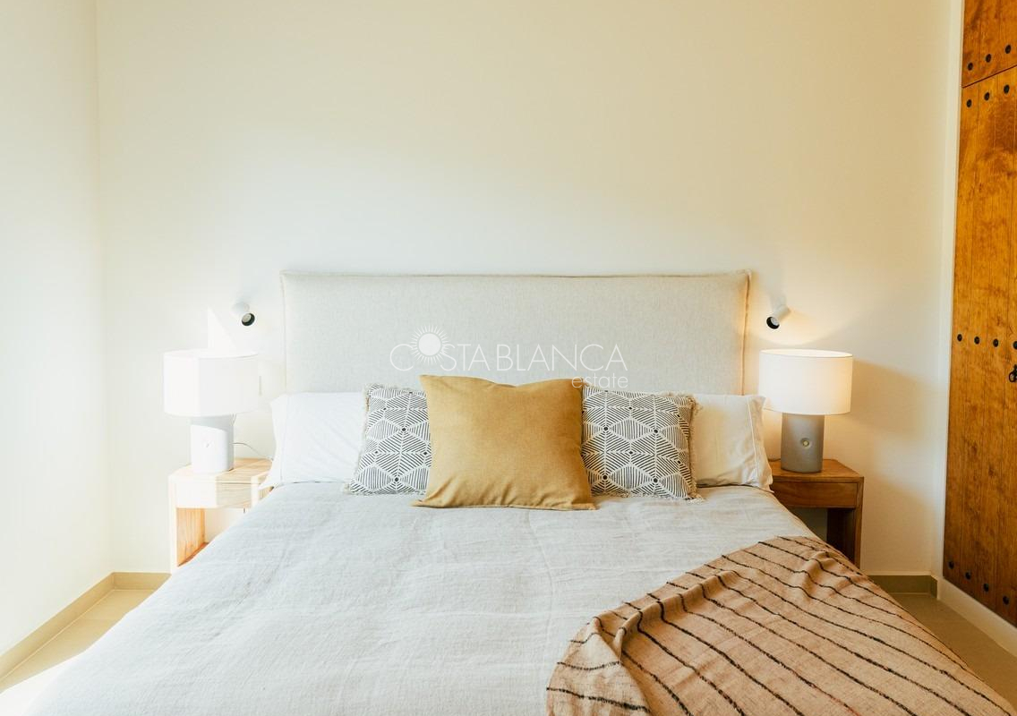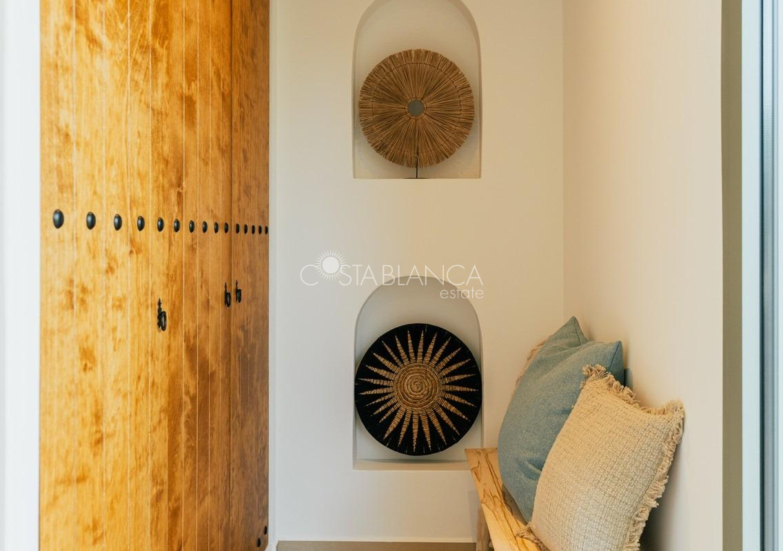 Schlüsselfertige Villa im mediterranen Stil in Javea mit privatem Pool und großem Grundstück Exklusives Neubauhaus in Valle del Sol Entdecken Sie diese atemberaubende, bezugsfertige Villa in der ruhigen Urbanisation Valle del Sol, nur eine kurze Autofahrt vom Stadtzentrum von Javea und nur 2,5 km vom beliebten Strand El Arenal entfernt. Das Anwesen wurde mit einer Mischung aus mediterranen und Ibiza-Einflüssen gestaltet und zeichnet sich durch weiche, geschwungene Linien, freiliegende Holzbalken und Gewölbedecken aus, die eine warme und authentische Atmosphäre schaffen. Große Fenster mit Fensterläden füllen das Haus mit natürlichem Licht und verstärken das Gefühl von Ruhe und Komfort. Elegante einstöckige Aufteilung Die Villa wurde auf einem großzügigen 1000 m² großen Grundstück erbaut und erstreckt sich über eine Etage, um maximalen Komfort zu bieten. Sie umfasst einen hellen Wohn- und Essbereich, eine voll ausgestattete Küche, einen Hauswirtschaftsraum, drei geräumige Schlafzimmer mit Einbauschränken, drei Badezimmer en suite und ein Gäste-WC. Jedes Detail wurde sorgfältig ausgewählt, mit handgefertigten Natursteinelementen und Holzbalken, die den traditionellen Charme der Costa Blanca Nord widerspiegeln. Außenbereiche zum Entspannen Der Außenbereich der Villa bietet den idealen Rahmen, um den mediterranen Lebensstil zu genießen. Ein wunderschön angelegter Garten, ein türkisfarbener Swimmingpool und sonnendurchflutete Terrassen bieten den perfekten Raum, um das ganze Jahr über zu speisen, sich zu unterhalten und zu entspannen. Zur Immobilie gehören außerdem eine Pergola mit Platz für zwei Autos, Sonnenkollektoren, eine Zweizonen-Klimaanlage, eine Video-Gegensprechanlage, eine Alarmanlage und eine Hausautomation für die Beleuchtung. Erstklassige Lage in Javea Javea ist eine der begehrtesten Städte an der Costa Blanca Nord und bekannt für ihre schönen Strände, Buchten, Yachthäfen, Golfplätze, Naturparks und ihre ausgezeichnete Gastronomie. Das milde Klima und die hohe Lebensqualität ziehen Einwohner und Investoren aus ganz Europa an. Wichtige Entfernungen von der Villa: Strand El Arenal 2,5 km Hafen und Yachthafen von Javea 6 km Golfclub Javea 4 km Flughafen Alicante 100 km Flughafen Valencia 125 km Ihr mediterranes Zuhause wartet auf Sie Diese Villa ist die ideale Wahl für diejenigen, die einen dauerhaften Wohnsitz, ein luxuriöses Ferienhaus oder eine hochwertige Investition suchen. Kontaktieren Sie uns noch heute, um einen Besichtigungstermin zu vereinbaren und diese außergewöhnliche Immobilie in Javea zu entdecken.