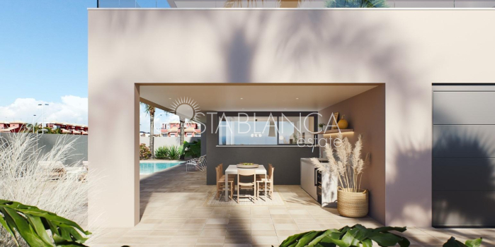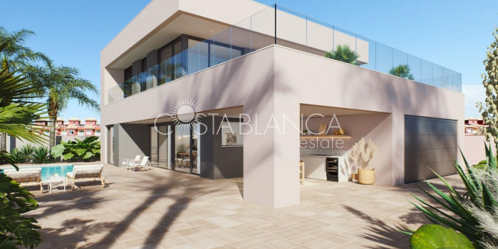 NEUBAU-VILLA IN TORRE DE LA HORADADA Moderne Neubau-Villa in der Nähe von Higuericas Strand in Torre de la Horadada. Die Villa besteht aus einem Grundstück von 618 m², mit 344 m² gebaut. Villa verfügt über 5 Schlafzimmer: zwei von ihnen mit komplettem Bad und Ankleideraum. Die Küche ist mit hochwertigen Materialien ausgestattet, die vom Eigentümer ausgewählt werden, einschließlich elektrischer Geräte, nach einem offenen Konzept mit dem Esszimmer, das von großen Fenstern umgeben ist, die den ganzen Tag über ein angenehmes Licht und einen direkten Zugang zum Pool und den privaten Gartenbereichen bieten, die komplett fertiggestellt sind. Klimaanlage (warm/kalt) durch Kanäle enthalten. Mit Sorgfalt bis ins kleinste Detail in den Oberflächen, mit den hochwertigsten Materialien, personalisierte Design und Luxus, ohne zu vergessen, den maximalen Komfort, erreichen wir den Genuss des Wohnens sowohl im Sommer und im milden Winter, so dass es bewohnbar das ganze Jahr über. Zusätzlich zu einem überdachten Garagenbereich für 2 Fahrzeuge und Parkplatz für ein weiteres Auto. Villa 100 m vom Strand Higuericas entfernt, in Torre de la Horadada, ein Paradies in jeder Hinsicht, wo Sie die Unermesslichkeit des Mittelmeers genießen können, die Promenade, erfrischende Bäder im Meer, Wassersport, Segeln, Surfen, Schnorcheln und nur 8 km von Lo Romero Golf, einer der 21 Golfplätze an der Costa Blanca. 5 Minuten vom Jachthafen von La Torre de la Horadada und 10 Minuten von den Jachthäfen von San Pedro del Pinatar und den besten Restaurants, in denen Sie die beste mediterrane Küche genießen können. Nicht zu vergessen die Nähe der Autobahn AP7, die unser Wohngebiet mit zwei Flughäfen mit internationalen Zielen verbindet, 44 km von Corvera und 75 km von El Altet, Alicante. Die nächstgelegene Stadt, in der sich die Wohnanlage befindet, ist Pilar de la Horadada, 1 km entfernt, eine ruhige Stadt mit allen Arten von Dienstleistungen, Schulen, Gesundheitszentren, Polizei, Apotheken, usw. Es gibt auch zwei Einkaufszentren in der Nähe, das Einkaufszentrum Dos Mares in San Javier, 5 Autominuten entfernt, und La Zenia Boulevard in Orihuela Costa, 15 Autominuten entfernt. 291