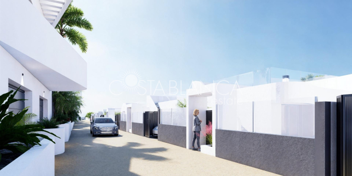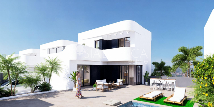 Neubau-Villen im La Finca Golf Resort Algorfa Exklusive Neubauanlage in prestigeträchtiger Golfumgebung Diese neue Wohnanlage mit 53 modernen Villen befindet sich im renommierten La Finca Golf Resort in Algorfa, einer der begehrtesten Gegenden der Costa Blanca Süd. Umgeben von üppiger grüner Landschaft, Zitrusplantagen und den sanften Fairways des Golfplatzes bietet dieser Standort Ruhe, Privatsphäre und einen hochwertigen mediterranen Lebensstil, während wichtige Dienstleistungen und die Küste dennoch in unmittelbarer Nähe liegen. Auswahl an Villamodellen und Grundrissen Das Projekt bietet eine große Auswahl an freistehenden und Doppelhaushälften in drei verschiedenen Größen von ca. 98 m², 111 m² oder 135 m². Die Häuser sind auf einer oder zwei Ebenen verfügbar und verfügen alle über drei Schlafzimmer und zwei Badezimmer. Die größeren Modelle verfügen zusätzlich über eine Gästetoilette. Die Villen auf einer Ebene verfügen über eine großzügige private Dachterrasse, während die zweistöckigen Häuser eine große offene Terrasse im Obergeschoss bieten. Einige Einheiten verfügen über einen Keller, andere bieten diese Option gegen Aufpreis an. Alle Villen verfügen über einen privaten Swimmingpool und einen Parkplatz auf dem Grundstück. Design im Ibiza-Stil und Leben im Freien Die Villen zeichnen sich durch ihr elegantes Design im Ibiza-Stil mit sanften, geschwungenen Linien und strahlend weißen Oberflächen aus, die sich perfekt in die natürliche Umgebung einfügen. Die großzügigen Außenbereiche sind so gestaltet, dass man das ganze Jahr über das milde Klima genießen kann. Sie bieten ideale Räume zum Entspannen, Unterhalten und Genießen des Lebens im Freien in einer ruhigen Golfumgebung. Hochwertige Ausstattung und Komfort Alle Häuser sind nach hohen Standards gebaut und verfügen über eine verstärkte Sicherheitseingangstür, voll ausgestattete Küchen, Vorinstallationen für eine Klimaanlage und ein aerothermisches System für die Warmwasserbereitung. Diese Ausstattungsmerkmale sorgen für Komfort, Energieeffizienz und modernes Wohnen, egal ob als Dauerwohnsitz oder als Ferienhaus. La Finca Golf Resort und Lebensstil in Algorfa Das La Finca Golf Resort ist bekannt für seinen Meisterschaftsgolfplatz, sein Luxushotel, seine Spa-Einrichtungen, Restaurants und Sportanlagen, die sich alle in einer sicheren und gepflegten Umgebung befinden. Algorfa ist eine charmante spanische Stadt mit lokalen Geschäften, traditionellen Restaurants und einer entspannten Atmosphäre, während die nahe gelegenen Städte ein breiteres Angebot an Dienstleistungen und Annehmlichkeiten bieten. Wichtige Entfernungen und Verbindungen Der Golfplatz La Finca befindet sich innerhalb des Resorts. Die Strände von Guardamar del Segura sind etwa 14 km entfernt. Die Einkaufszentren in Torrevieja und Orihuela Costa sind etwa 15 km entfernt. Almoradi, Benijofar und Ciudad Quesada liegen zwischen 5 und 10 km entfernt. Der internationale Flughafen Alicante ist etwa 35 km entfernt. Eine kluge Investition an der Costa Blanca Mit über 300 Sonnentagen im Jahr, einer hervorragenden Verkehrsanbindung und der Nähe zu Golfplätzen, Stränden und Einkaufsmöglichkeiten sind diese Villen ideal zum Wohnen, für den Urlaub oder als Investition. Kontaktieren Sie uns noch heute Sichern Sie sich noch heute Ihre neue Villa im La Finca Golf Resort. Kontaktieren Sie uns jetzt für weitere Informationen oder um eine private Besichtigung zu vereinbaren.