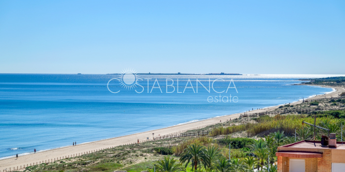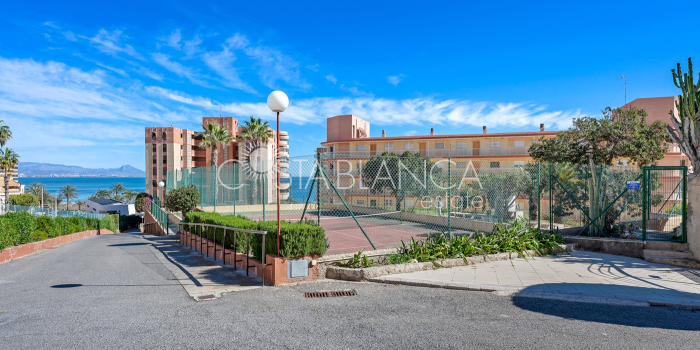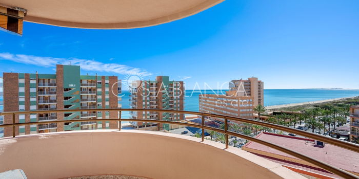 Wir präsentieren diese 80 m² große Wohnung in einer der begehrtesten Lagen der Costa Blanca, in Arenales del Sol, bekannt für seinen breiten Sandstrand und den beeindruckenden offenen Blick auf das Mittelmeer. Die Immobilie zeichnet sich durch einen spektakulären halbkreisförmigen Balkon mit Panoramameerblick aus – ein echter Vorteil, der auf dem aktuellen Markt selten zu finden ist. Komfortable und funktionale Aufteilung Die Wohnung verfügt über: 3 helle SchlafzimmerUnabhängige Küche mit WaschbereichVoll ausgestattetes BadezimmerWohn‑Essbereich mit direktem Zugang zum Balkon Das Wohnzimmer öffnet sich nach außen, wo der halbkreisförmige Balkon zum zentralen Highlight der Wohnung wird. Dank seiner Form und Ausrichtung bietet er einen weiten, offenen und völlig unverbauten Blick auf das Meer. Exklusive und komplette Wohnanlage Die Immobilie befindet sich in einer privaten und exklusiven Wohnanlage, die für das ganzjährige Wohnen ausgelegt ist und folgende Einrichtungen bietet: Gemeinschaftspool mit AufsichtParkplatz innerhalb der AnlageGemeinschaftlicher AbstellraumGrill‑ und PicknickbereichTennisplatzFußballplatzPetanque‑Platz Eine sichere, gepflegte Umgebung mit zahlreichen Freizeitmöglichkeiten für die ganze Familie. Strategische Lage Arenales del Sol ist sowohl national als auch international eine der gefragtesten Lagen, dank der Nähe zum Flughafen Alicante, der guten Anbindung an die Stadt und der privilegierten natürlichen Umgebung. Diese Wohnung vereint die heute meistgesuchten Merkmale:✔ Direkter, panoramischer Meerblick✔ Komplette private Wohnanlage✔ Drei Schlafzimmer✔ Großzügige Außenbereiche Eine ideale Gelegenheit als Hauptwohnung oder Zweitwohnsitz am Meer in einer der etabliertesten Gegenden der Costa Blanca.