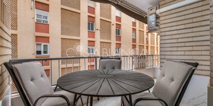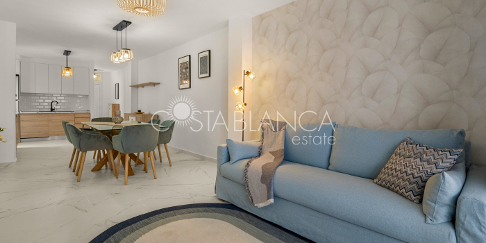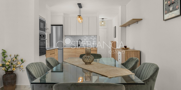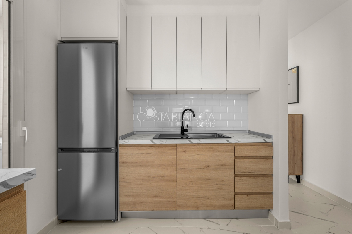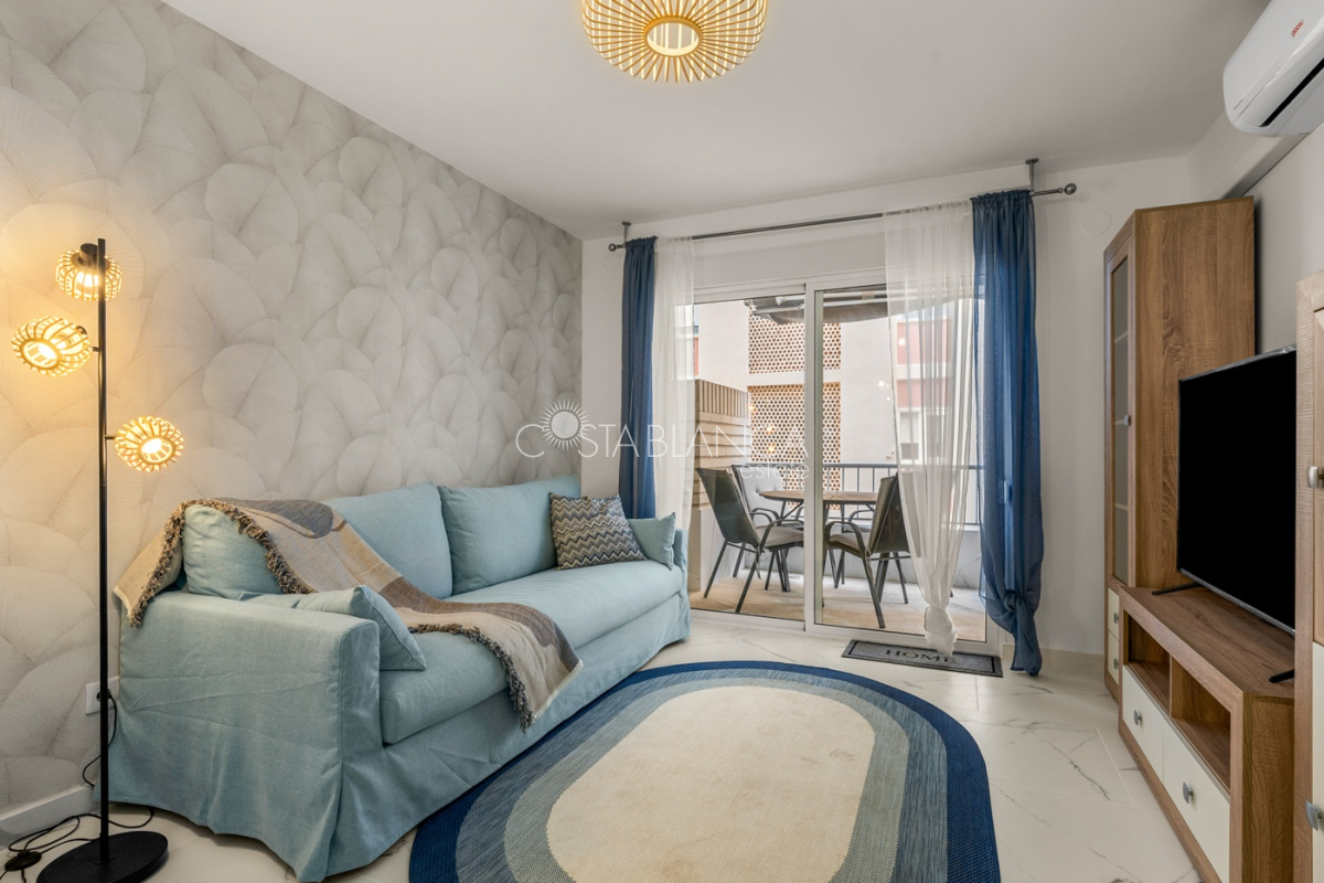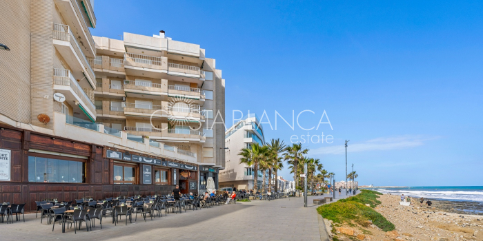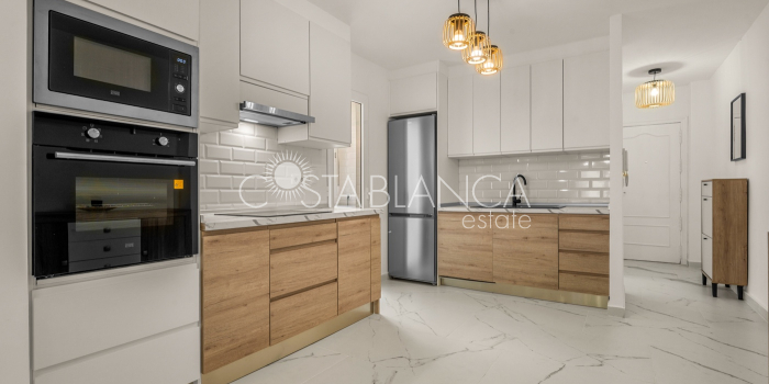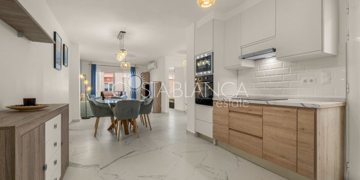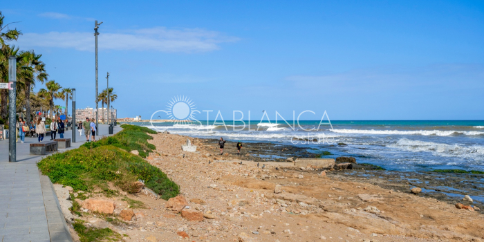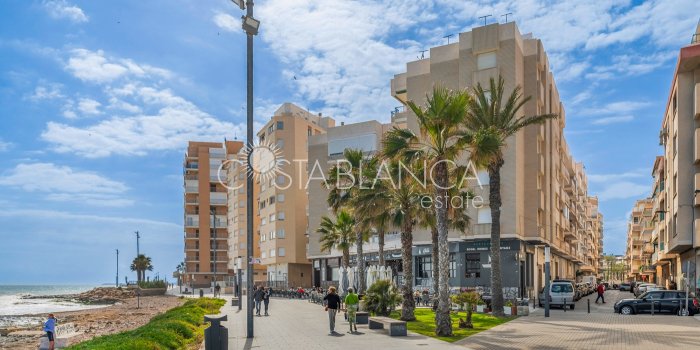 Wunderschöne, 75 m² große Wohnung, komplett renoviert und bezugsfertig. Die Wohnung verfügt über drei geräumige Schlafzimmer, eines davon mit eigenem Bad, sowie ein weiteres Badezimmer, beide mit Dusche. Die moderne, voll ausgestattete Küche bietet Zugang zu einem praktischen Innenhof mit Waschküche. Der offene Wohn- und Essbereich geht fließend in die Küche über und schafft so einen hellen und luftigen Wohnbereich – ideal für gesellige Stunden mit Familie und Freunden. Alle Räume sind mit Deckenventilatoren und Klimaanlage ausgestattet und garantieren so ganzjährigen Komfort. Die Wohnung bietet einen teilweisen Meerblick und befindet sich in bester Lage in Playa del Cura (Torrevieja), nur wenige Schritte vom Strand und der Promenade entfernt. In unmittelbarer Nähe finden Sie zahlreiche Freizeitmöglichkeiten, Restaurants und alle Annehmlichkeiten des täglichen Bedarfs. Die Wohnung wird komplett möbliert verkauft und ein Parkplatz ist inklusive.