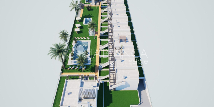 Neubau-Bungalows mit Garten oder Solarium in Strandnähe in Pilar de la Horadada Moderne mediterrane Häuser, die auf Komfort ausgelegt sind Entdecken Sie diese exklusive Neubauwohnanlage in Pilar de la Horadada mit modernen Bungalows, die weniger als 2 km vom Strand entfernt liegen. Diese Häuser wurden so konzipiert, dass sie Komfort, Stil und Funktionalität vereinen, und eignen sich ideal für das ganze Jahr über, für den Urlaub oder als kluge Investition an der Costa Blanca. Die Anlage bietet die Wahl zwischen Bungalows im Erdgeschoss mit privaten Gärten und Bungalows im Obergeschoss mit privaten Dachterrassen. Jede Immobilie ist sorgfältig gestaltet, um das Leben im Freien zu maximieren und das mediterrane Klima optimal zu nutzen. Geräumige 2-Zimmer-Immobilien mit hochwertiger Ausstattung Jeder Bungalow verfügt über 2 Schlafzimmer und 2 Badezimmer, eines davon en suite, sowie einen privaten Parkplatz in der Tiefgarage. Die Häuser sind mit hochwertigen Materialien und modernen Oberflächen gebaut, die Energieeffizienz und Langlebigkeit gewährleisten. Zu den wichtigsten Merkmalen gehören: Vorinstallation für eine Klimaanlage Aluminium-Außenfenster mit Doppelverglasung und motorisierten Rollläden Sicherheitstür für mehr Sicherheit Aerothermisches System für eine effiziente Warmwasserbereitung Einbauschränke in allen Schlafzimmern Voll ausgestattete Badezimmer mit Möbeln und Duschwänden Diese Ausstattung sorgt für ein komfortables und praktisches Zuhause, das für alle Jahreszeiten geeignet ist. Private Wohnanlage mit Pool und Landschaftsgärten Die Wohnanlage ist privat und sicher und verfügt über wunderschön angelegte Gemeinschaftsgärten und einen großen Gemeinschaftspool. Dies schafft eine angenehme und entspannte Umgebung, in der die Bewohner sich erholen und das hervorragende Klima genießen können. Die Anlage liegt etwas außerhalb des Stadtzentrums und ermöglicht es den Bewohnern, Supermärkte, Restaurants, Bars, Schulen und wichtige Dienstleistungen zu Fuß zu erreichen, ohne ein Auto zu benötigen. Ausgezeichnete Lage in der Nähe von Stränden und Dienstleistungen Pilar de la Horadada ist eine charmante spanische Stadt im südlichsten Teil der Costa Blanca, bekannt für ihre lebhafte Atmosphäre, ihre lokalen Geschäfte, ihre traditionellen Plätze und ihre freundliche Gemeinschaft. Die Sandstrände von Torre de la Horadada und Mil Palmeras sind nur 2 km entfernt und bieten feinen goldenen Sand, eine malerische Promenade und einen Yachthafen. Die Gegend ist auch ideal zum Radfahren, Wandern und für Outdoor-Sportarten. Entfernungen zu wichtigen Sehenswürdigkeiten Lo Romero Golf 5 km La Zenia Boulevard 15 km Flughafen Murcia Corvera 40 km Flughafen Alicante 55 km Yachthafen Torre de la Horadada 3 km Reservieren Sie noch heute Ihr neues Zuhause Verpassen Sie nicht diese Gelegenheit, einen brandneuen Bungalow in Strandnähe in einer der begehrtesten Gegenden der Costa Blanca zu erwerben. Kontaktieren Sie uns noch heute für weitere Informationen und um einen Besichtigungstermin zu vereinbaren.
