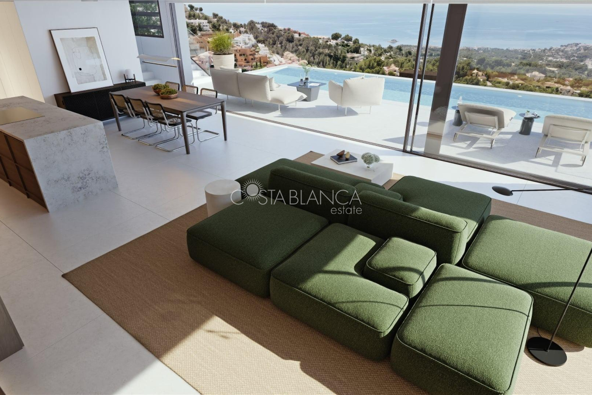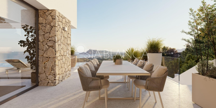 Exklusive Villa im zeitgenössischen Stil in der Sierra de Altea (nördliche Costa Blanca). Eine Immobilie für Kunden, die moderne Architektur, großzügige Räumlichkeiten und einen Blick auf das Mittelmeer suchen. Das Anwesen liegt etwa 3 km vom Strand entfernt in der Wohnsiedlung Sierra de Altea. Die Villa erstreckt sich über zwei Etagen und umfasst vier Schlafzimmer mit eigenem Bad, ein geräumiges Wohn-Esszimmer mit offener Küche sowie eine Hauptterrasse mit einem Infinity-Pool, der sich nahtlos in den Horizont einfügt. Alle Haupträume sind zum Meer hin ausgerichtet und verfügen über einen direkten Zugang nach draußen. Sie verfügt über eine überdachte Garage für zwei Autos mit Vorinstallation für eine Ladestation für Elektroautos sowie über aerothermische Systeme, Hausautomation, einen Aufzug und Sonnenkollektoren, die Komfort und Energieeffizienz gewährleisten. Eine exklusive Immobilie mit hochwertiger Ausstattung und erstklassiger Lage in Altea, ideal für Kunden, die ein Zuhause suchen, in dem sie den mediterranen Lebensstil in höchster Qualität genießen können. Altea ist eine der reizvollsten Städte an der Costa Blanca. Sie trägt zudem den offiziellen Titel „Kulturhauptstadt der Autonomen Gemeinschaft Valencia“. Altea genießt eine privilegierte Lage mit Meer und Strand sowie Bergen und einem Fluss. Altea verfügt über mehr als 8 km Küste, die sich abwechselnd aus Klippen und kleinen Buchten sowie Strandabschnitten auf flachem Land zusammensetzt. Der Flughafen Alicante ist 50 Autominuten entfernt, der Flughafen Valencia 1,5 Stunden. 291