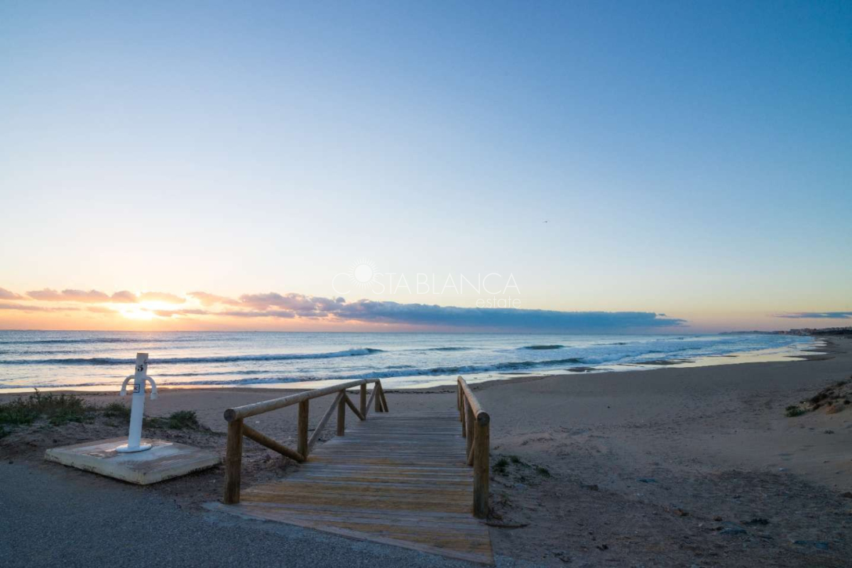 Guardamar is a picturesque municipality of 16,000 inhabitants in the south of the Costa Blanca. Its excellent communications keep you well connected, whether by car, train or plane. The International Airport, just 30 km away, connects you to the main capitals of Europe. The city of Alicante, with its High Speed Train station, is only 45 minutes away. Guardamar has an extensive coastline of 11 km of warm, golden sandy beaches, awarded three blue flags for their high ecological value. Behind its beaches stretches La Pinada de Guardamar, a dune forest of 800 hectares with pine, eucalyptus and palm trees. Another of the great natural attractions is the mouth of the Segura river in the Mediterranean Sea, where there is a small lighthouse and the Marina de las Dunas, ideal for fishing and water sports enthusiasts. The surroundings of Navale Residencial have a special charm, not only for its idyllic beaches, but also for its traditional shops, its varied gastronomic offer, hiking trails both inland and from the Pinada itself in front of the residential, and a wide range of sporting activities. In Navale Residencial you will have all services at your fingertips, with a supermarket just a few metres away, public transport nearby and the centre of Guardamar just 5 minutes away, offering shops, chemists and much more. The ground-floor apartments have a private garden with terrace and direct access to the communal pool with sunbathing area. The apartments include 2 bedrooms, 2 bathrooms and spacious living room with open-plan fitted kitchen. Each apartment includes a car parking space and storage room. There is also space for parking bicycles. Prices subject to availability. Contact us for more information.