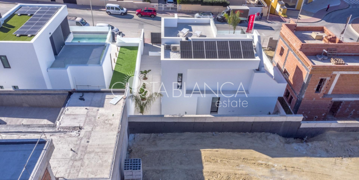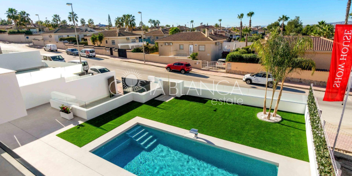 NEW BUILD VILLAS IN ROJALES New Build exclusive development of villas in Rojales. Beautiful villas build over 2 floors with 3 bedrooms, 3 bathrooms, open plan kitchen with lounge area and terrace. Villas build on independent plots where you have garden with private pool and parking space. An options for a solarium at an extra cost. There a 3 golf courses nearby and the blue flag beaches are just a short 10 minute drive away. Rojales it is a lovely village with all services such as supermarkets, pharmacies, banks, restaurants and natural park located very close to the villas. There are several golf courses close by as well as water parks in nearby Rojales and Torrevieja. Alicante & Murcia airports are 45 minutes drive away.