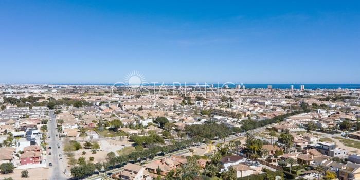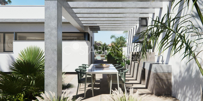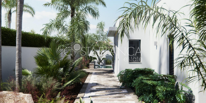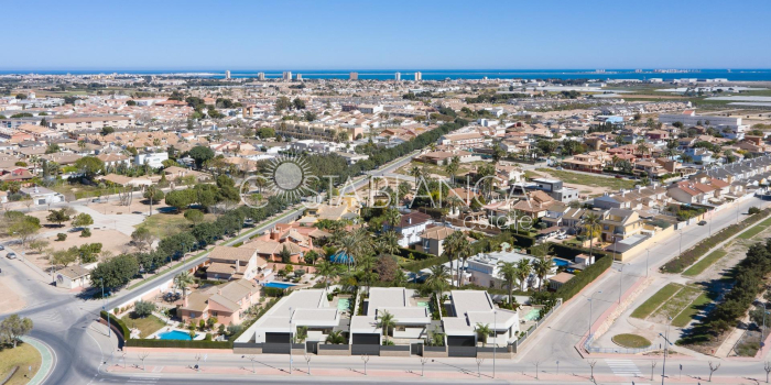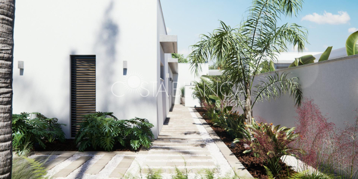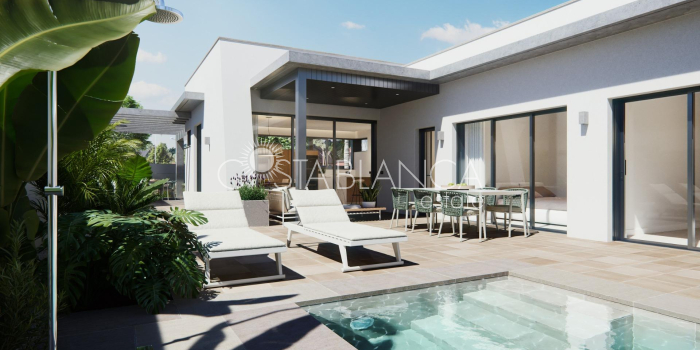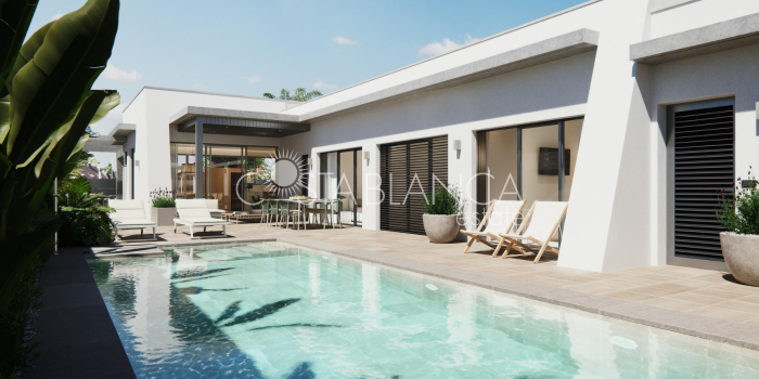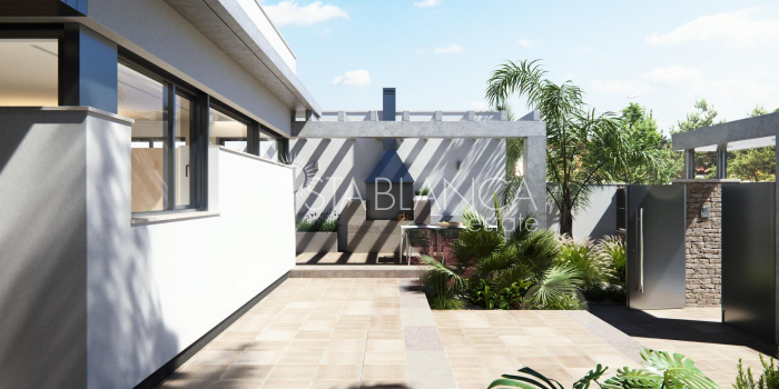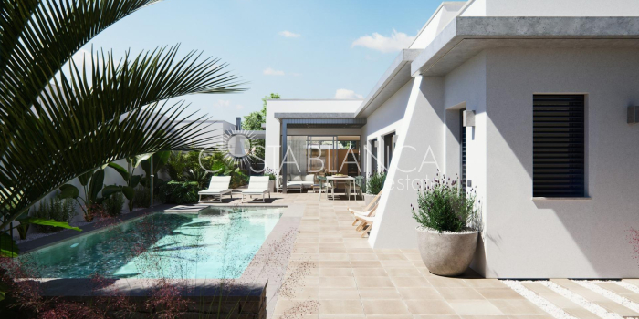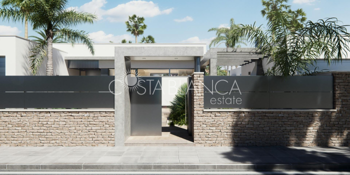 NEW BUILT VILLA ON A FLOOR Three exclusive villas in a residential area in San Javier with 600 m2 of plot and 217 m2 of built area on one floor, private pool and large garden areas. Residential with an architectural design based on clear, cubic and functional lines in an exclusive residential enclave in San Javier (Murcia). Automated garden and garage access doors with infrared remote control. Large covered garage for two vehicles with separate entrance. Gardens with a water drainage system on the floor, completely finished and customizable including vegetation, irrigation and lighting. 291