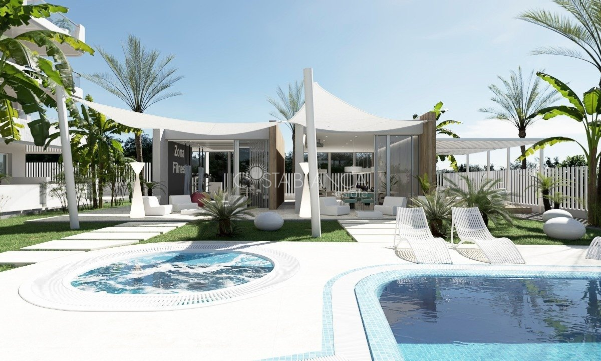 NEW BUILD RESIDENTIAL COMPLEX IN LOMAS DE CABO ROIG New Build Luxury Residential complex located in Lomas de Cabo Roig. Complex of 24 apartments and penthouses with 2 and 3 bedrooms, 2 bathrooms, with great common areas, garden & play area around, big swimming pool (including children area and jacuzzi) relax/BBQ, fitness Club and Coworking area, public toilet and underground parking. Complex has installed a fully equipped gym and fully equipped coworking area with beautiful garden views. The luxurious experience architectural excellence ensures an intimate complex, providing security, and privacy . Lomas de Cabo Roig located one kilometer inland from the coastline of Cabo Roig with beautiful beaches, part of the Orihuela Costa. It is situated in an area which is well connected by roads, has plenty of facilities, and shopping centres nearby. Lomas de Cabo Roig located 30 minutes from Alicante airport and 1 hour Murcia - Corvera airport.