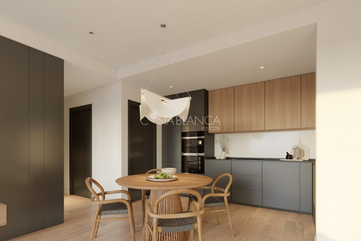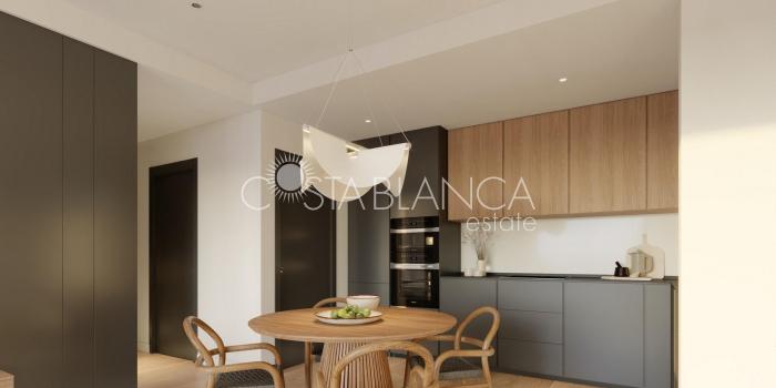 NEW BUILD RESIDENTIAL IN CUMBRE DEL SOL New Built modern apartments with 2 bedrooms and 2 bathrooms, kitchen open to the living room, with various models to choose from: terrace and garden on the ground floor apartments, solarium on the top floor. All properties distributed to make the most of the space, taking advantage of the Mediterranean light and offering a plus of comfort in your day to day. The equipment in the apartments are also oriented to comfort with under-floor heating, hot and cold air conditioning by conduits with thermostat in the living room, hot water by Altherma system, electrical appliances are included and a project of decoration to give them style and warmness. The communal areas are designed for relax and enjoy as a family, with pool surrounded by large terraces to enjoy the sun, playground for kids, social club, gardens and parking areas. Within a short distance to Cala del Llebeig, the urban core of Moraira and all the services that Residential Resort Cumbre del Sol is equipped with. At the most easterly point of the province of Alicante, Spain, lies the Residential Resort Cumbre del Sol. Residents and guests are the first to greet the majestic sun each morning as it rises over the calm waters of the Mediterranean Sea. From our exclusive viewpoint, on the highest point of the municipality of Benitachell, Cumbre del Sol offers panoramic views over the sea and the natural parks that surround us from Jávea to Moraira. Discover exclusive resort on the Costa Blanca and discover our wonderful first-class flats and villas, incredible sports and leisure facilities and complete range of services for those fortunate enough to make Cumbre del Sol their home. Benitachell located 65 minutes from Alicante airport and 1,5 hour Valencia airport. 291