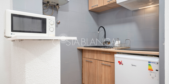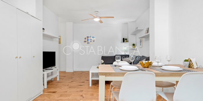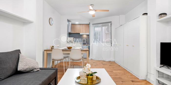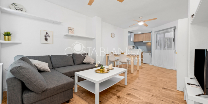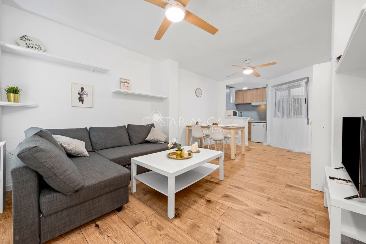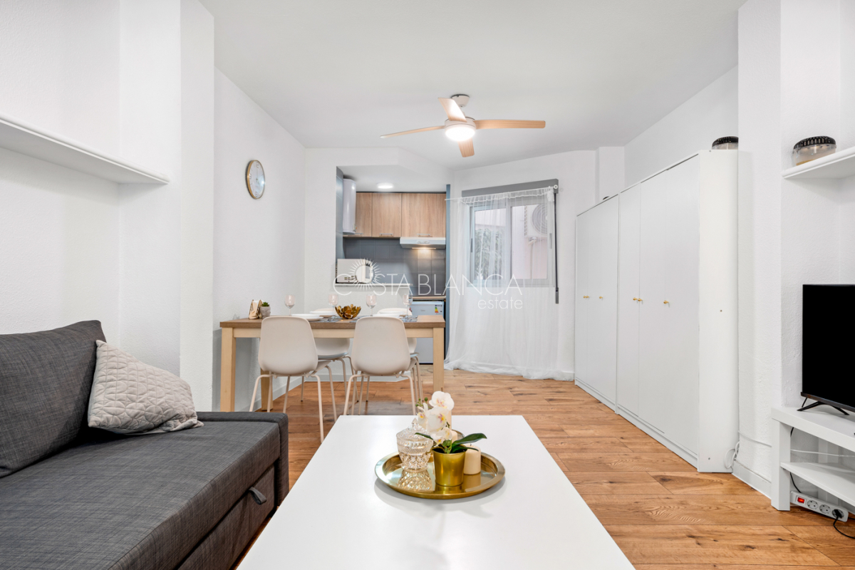 Beautiful apartment in the center of Torrevieja, only 300 meters from the sea.This renovated apartment has one bedroom, one bathroom and a spacious living room with an open kitchen. The sea is only 350 meters walking distance and the nearest sandy beach 800 meters.AreaTorrevieja is a popular city on the Costa Blanca coast. Here you will find parks, a marina, beaches, a charming boardwalk, shopping street, shopping centers, evening market, a fun fair, shops, supermarkets, restaurants, bars, cafés and much more. Torrevieja also offers a variety of activities, and on the outskirts of the city you will find bowling and a large water park, in addition to a large sports complex.BeachesThe magnificent beaches of the Costa Blanca coast lie like pearls on a string, and within a short distance you can access a number of beaches. In the center of Torrevieja there are smaller beaches, while the Naufrago beach, Playa Del Cura and the Los Locos beach are located on the outskirts of the city. Within a short distance you will also find the La Mata beach, the famous 9 kilometer long beach in Guardamar and the popular beached in Orihuela.