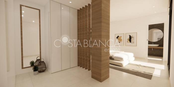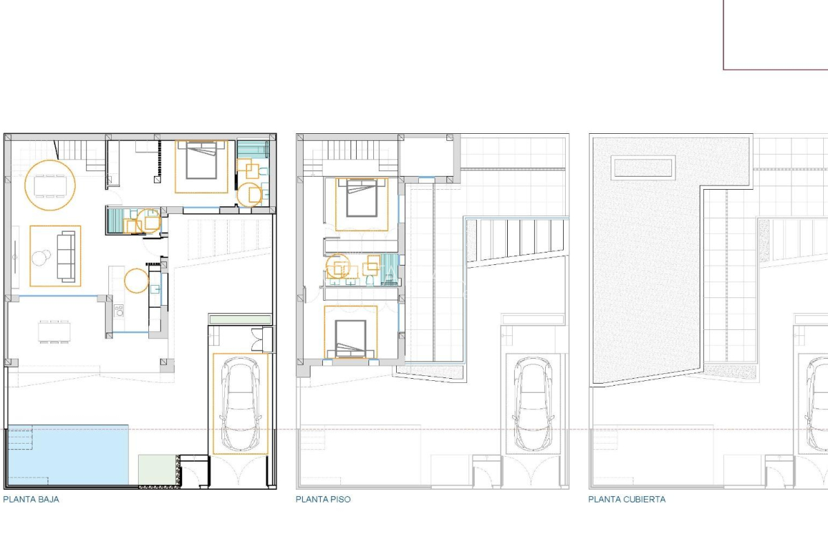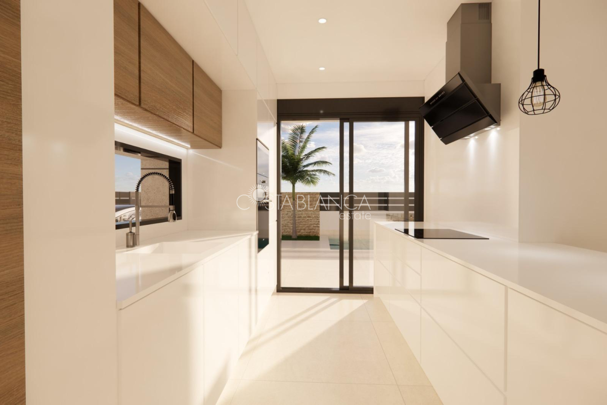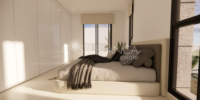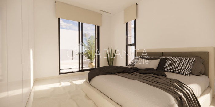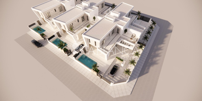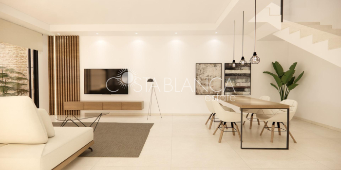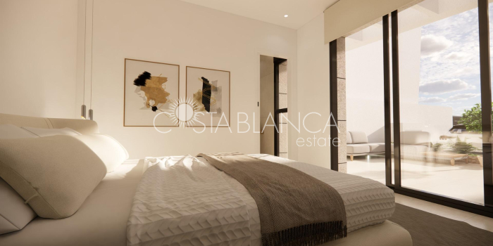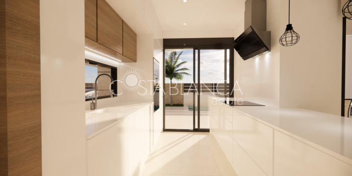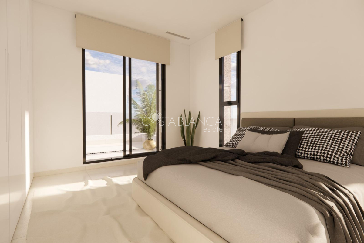 NEW BUILD SEMI-DETACHED VILLAS IN DOLORES New Build Residential of 6 semi-detached villas in Dolores. Beautiful semi-detached villas build over 2 floors with 3 bedrooms, 3 bathrooms, open plan kitchen with the lounge area, fitted wardrobes with dividers and drawer units, private garden with the pool and off road parking space, private solarium. The kitchen will be fitted with base, island over-bench cupboards, drawer units with telescopic runners with ball bearings, semi-automatic hinges and wall units with shelves. The worktop will be of compact quartz, colour to choose between black, white and grey. The sink will be stainless steel and mixer taps. The laundry room includes a bench with sink and base units. The toilet will be porcelain, wall-hung model. The washbasin will be made of porcelain (for countertop) in white, which will be installed on bathroom furniture and mirror. The taps will be Tres, Ramon Soler, or similar. The shower tray will be made of fibre. The toilet will be of porcelain suspended. The washbasin will be made of porcelain (for countertop) in white, which will be installed on bathroom furniture and mirror. The taps will be Tres, Ramon Soler or similar brand mixer taps. Urbanisation finished in porcelain stoneware and decorative areas with artificial grass and outdoor lighting. Plot fencing according to design, in vibro-compressed concrete block wall with continuous single-layer W1 mortar coating and metal fence according to design. Pedestrian entrance door and car access door (non-motorised) according to design similar to show house. Swimming pool with reinforced concrete pool tank gunned and finished in glazed stoneware. With compact model purifying station. Including staircase inside the pool for access and side bench with air jet impulsion by means of electric pump operated by touch button, shower and waterfall. Dolores is a town located in the comarca of Vega Baja del Segura in southern Alicante province, Spain. The town is in the heart of the Segura huerta about 10 km from the nearest beaches in La Marina and Guardamar. Complex located 30 minutes from Alicante airport and 1 hour Murcia - Corvera airport.