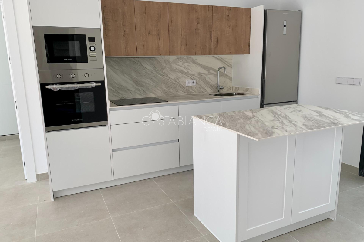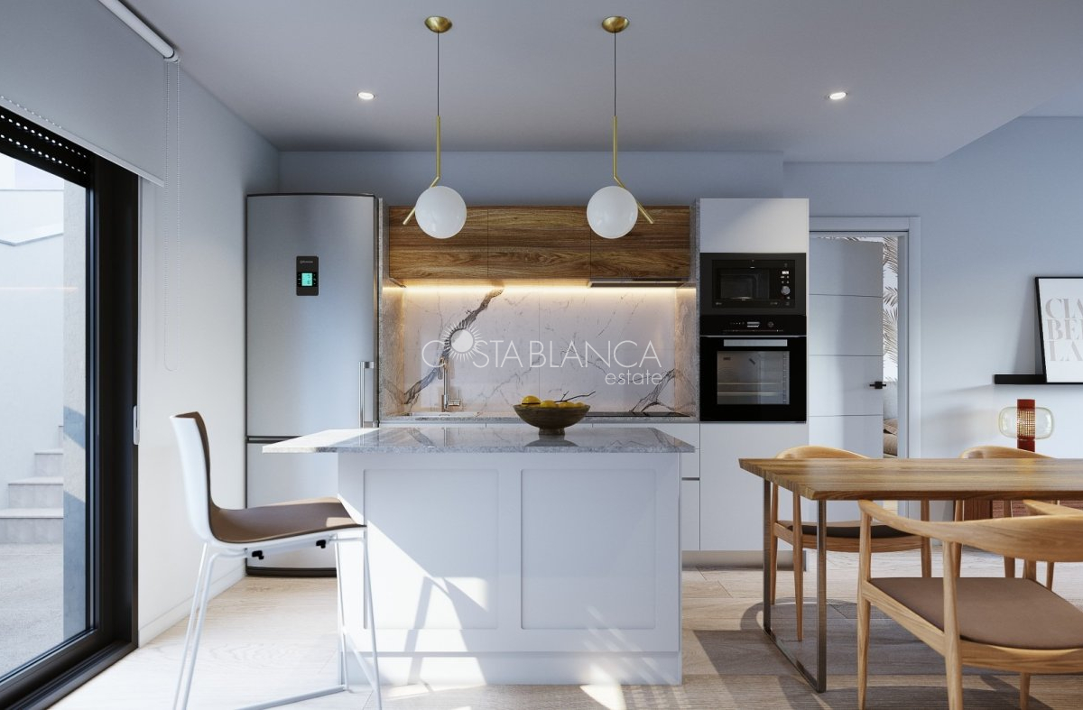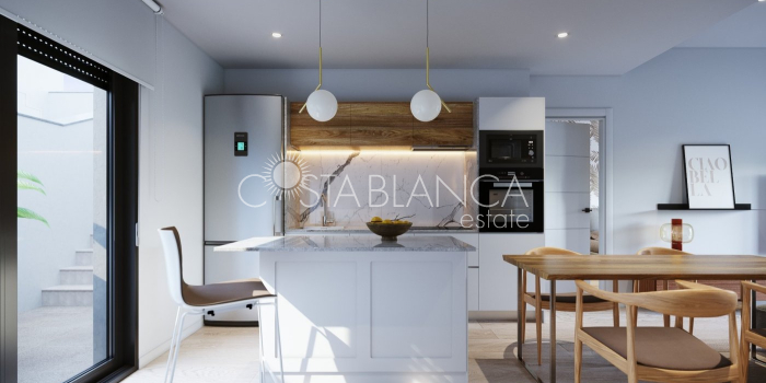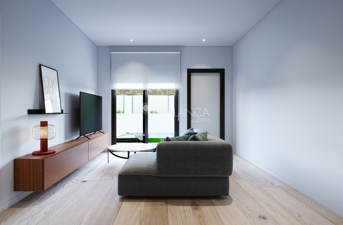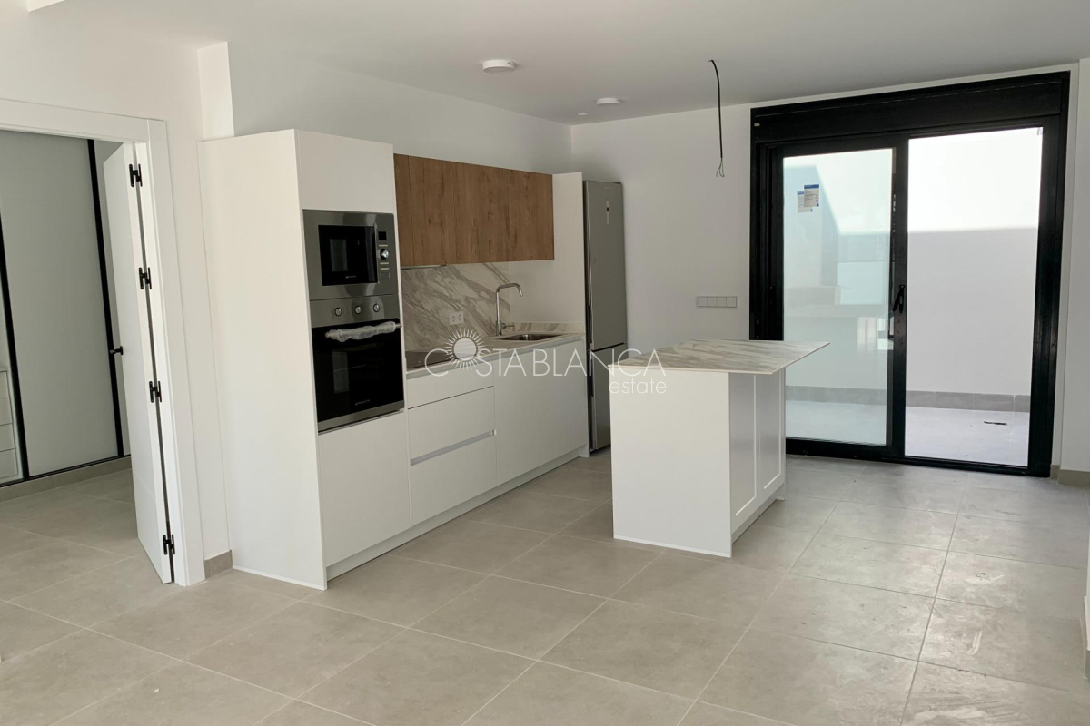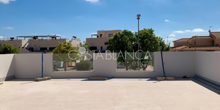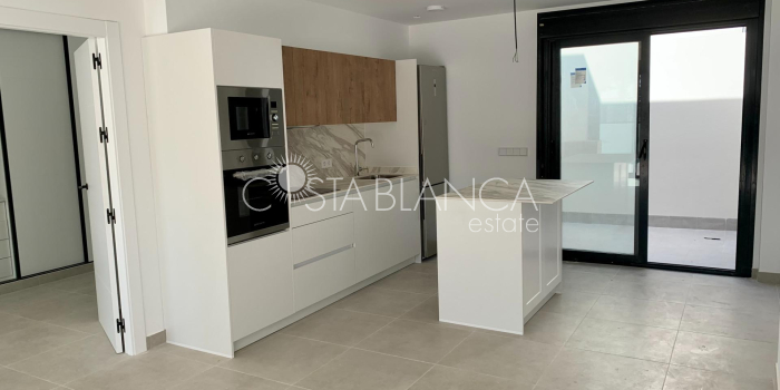 TERRACED VILLAS WITH PRIVATE POOL AND CLOSE TO RODA GOLF COURSE Luxury complex of 28 one level terraced villas with a private pool for each house. Homes are designed on one level with terrace areas on the ground floor and a large solarium on the first floor that allows you to enjoy all hours of sunshine, every day of the year. Each property has 2 or 3 bedrooms and 2 fitted bathrooms. Designed with a contemporary style and open plan concept, comprising a fitted kitchen and lounge-dining room. The development is located in Dolores de Pacheco (Murcia), near Los Alcázares, surrounded by services, parks, sports facilities, near several Golf Courses such as Roda Golf and La Serena Golf, plus being 5 minutes far from beach. The property will meet the highest standards and will be equipped with: Private pool with shower Solarium with summer kitchen Terrace areas Fitted kitchen with fridge freezer, hobs, oven, fan-extractor. Island work zone. Fully fitted bathrooms with vanity unit, mirror and shower screens Lined wardrobes with drawers Lighting design inside and outside the house Pre-installation for air conditioning