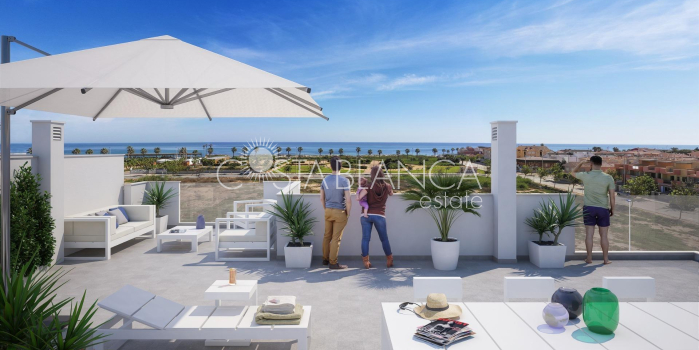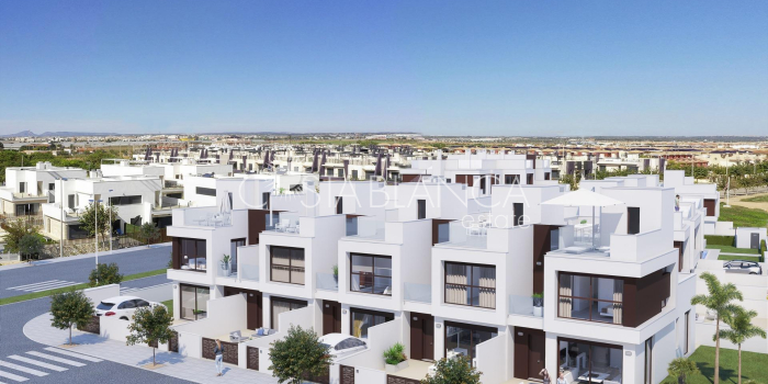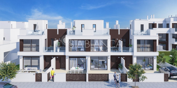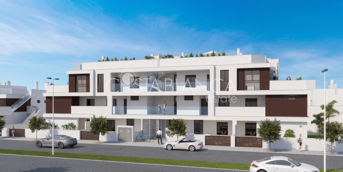 New Construction Residences Just 200 Meters from Las Higuericas Beach Modern Homes in Torre de la Horadada Located in the picturesque coastal town of Torre de la Horadada, this new development is perfectly positioned just 200 meters from the stunning Las Higuericas Beach. Offering modern duplexes, ground-floor bungalows with private gardens, top-floor bungalows with solariums, and elegant apartments, this community blends contemporary design with a touch of exclusivity. Homes are available in 2- and 3-bedroom layouts, catering to various lifestyle needs. Exceptional Community Amenities Every residence comes equipped with a private parking space, spacious terraces, landscaped green areas, and access to a communal swimming pool. Thoughtfully designed to enhance comfort and convenience, these homes offer a perfect setting for relaxation and enjoyment. Premium Features for Maximum Comfort Each property includes: Motorized blinds in all rooms. Reinforced front doors for added security. Underfloor heating in bathrooms. Bathroom furniture and shower screens. Exterior lighting for terraces and gardens. Appliances included: extractor hood, ceramic hob, oven, refrigerator, dishwasher, microwave, and washing machine. Additionally, the ground-floor bungalows and solariums feature hot and cold water showers, while all homes benefit from an energy-efficient aerothermal system for hot water. Prime Location in Torre de la Horadada This development is situated in a vibrant yet peaceful area, with easy access to essential amenities and attractions: Las Higuericas Beach: Just 200 meters away. Murcia Airport: Approximately 30 km. Lo Romero Golf Course: Only 10 km. Dos Mares Shopping Center: 11 km. Port of San Pedro del Pinatar: 8 km. Enjoy a unique coastal lifestyle, combining beautiful beaches, dining options, and leisure activities within close proximity. Your Dream Home Awaits Don’t miss the opportunity to own a modern, well-equipped home in one of the Costa Blanca’s most desirable locations. Contact us today to learn more or to schedule a visit!