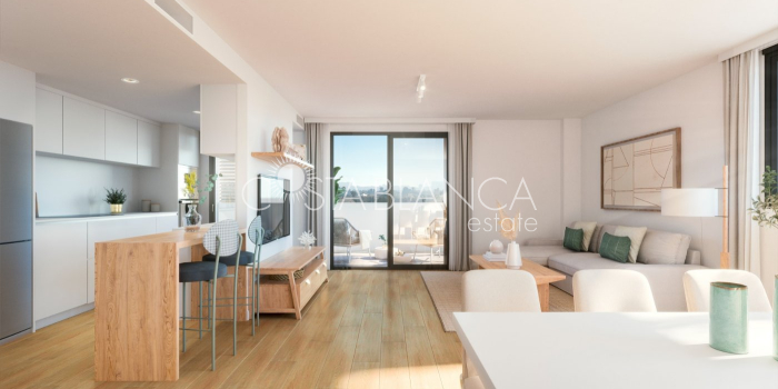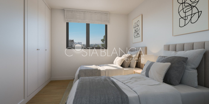 NEW BUILD APARTMENTS IN SAN JUAN DE ALICANTE New Build residential complex of 82 exclusive apartments with 1, 2, 3 and 4 bedrooms in San Juan. In your new home you will enjoy common garden areas and a swimming pool where you can cool off on hot days. The houses have a garage, storeroom and large terraces. Your new kitchen will also include the following equipment: Induction plaque. › Filter group. › Oven and microwave built into the column, except in homes where, due to the measurements, this is not possible. In these cases, the oven will be located under the induction hob and the built-in microwave in the upper cabinet. › Undercounter stainless steel sink with single-lever faucet. The kitchen will have led lights. In order for you to enjoy maximum comfort in your new home, the house will be equipped with a complete installation of hot-cold air conditioning through ducts with supply grilles in the living room and bedroom. The garage entrance and exit doors will be automatic, with an anti-crushing safety device and remote control. If you have an electric car, you won't have to carry out inconvenient works in your garage after handing over the keys, since it will have provision for recharging this type of vehicle. The storage rooms will have a metal door, in compliance with the regulations required by their location. Residential has children's and adult pools, surrounded by the solarium area. A social club will allow you to fully enjoy all the common facilities, where you can celebrate parties, meetings or family birthdays. Residential complex located in the heart of the new expansion area of Alicante, which means that just a few minutes from your new home you will enjoy an incredible shopping, leisure and infrastructure offer. Between them: › The public transport network of buses and TRAM, which connects you with the city and nearby towns. › The nearby Denia avenue and the A70 motorway that allows you to access major communication routes. › The motorway network, the nearby airport, the AVE station or the port of Alicante.