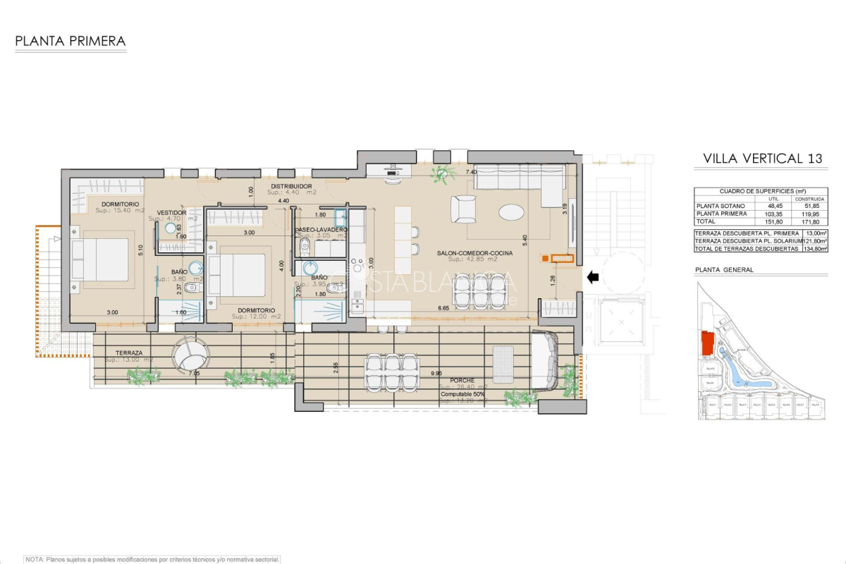 Nowe wille i bungalowy zaledwie 250 metrów od plaży w Mar de Pulpí Ekskluzywny projekt mieszkaniowy z willami i bungalowami blisko morza Odkryj wyjątkową nową inwestycję położoną zaledwie 250 metrów od plaży La Entrevista w Mar de Pulpí w prowincji Almería. Ten ekskluzywny kompleks mieszkaniowy oferuje dwie różne opcje mieszkaniowe: 10 niezależnych willi i 8 bungalowów, z których każdy został zaprojektowany tak, aby zapewnić przestronne wnętrza i wysokiej jakości powierzchnie zewnętrzne. Położony w jednej z najspokojniejszych i najbardziej malowniczych okolicy Costa de Almería, projekt ten jest idealny dla osób poszukujących nowoczesnego i komfortowego domu blisko morza, w otoczeniu piękna natury i niezbędnych udogodnień. Luksusowe wille z garażami w piwnicy i prywatnymi tarasami Wille posiadają trzy przestronne sypialnie, każda z własną łazienką. Na parterze znajduje się przestronna sypialnia, a na piętrze dwie kolejne sypialnie z dostępem do prywatnych tarasów. Podziemny garaż, bezpośrednio połączony z willą, oferuje miejsce na co najmniej dwa samochody i rowery, z naturalnym oświetleniem i wentylacją, a także dużą przestrzeń do przechowywania. Stylowe bungalowy z prywatnymi ogrodami lub solarium Do wyboru są bungalowy na parterze z prywatnymi ogrodami lub na najwyższym piętrze z prywatnymi solarium. Każdy bungalow posiada dwie sypialnie, dwie łazienki oraz prywatny basen lub jacuzzi. Wyposażone są również w windy, które zwiększają dostępność i komfort. Główne sypialnie posiadają garderoby i duże szafy wnękowe, a rozległe tarasy z barem sprawiają, że wypoczynek i relaks są prawdziwą przyjemnością. Komfort, styl i wyposażenie premium Wszystkie domy w inwestycji są wyposażone w: Okna z podwójnymi szybami z ochroną przeciwsłoneczną i przegrodą termiczną Elektryczne ogrzewanie podłogowe we wszystkich łazienkach Klimatyzację (ciepła i zimna) Zasłony z napędem elektrycznym Nowoczesne łazienki z meblami wiszącymi, lustrami i parawanami prysznicowymi Energooszczędne ogrzewanie wody za pomocą systemów aerotermicznych Na terenie osiedla znajduje się również wielopoziomowy basen wspólny, oferujący przestrzeń do relaksu i zabawy. Doskonała lokalizacja na wybrzeżu Costa de Almería Dzięki położeniu zaledwie 250 m od piaszczystej plaży i tylko 3 km od San Juan de los Terreros, mieszkańcy mają do dyspozycji szeroki wachlarz udogodnień, w tym supermarkety, restauracje, sklepy i niezbędne usługi. Odległości do najważniejszych atrakcji: Plaże La Entrevista – 0,25 km San Juan de los Terreros – 3 km Pole golfowe Aguilón – 7 km Centrum miasta Águilas i marina – 12 km Lotnisko Murcia-Corvera – 95 km Lotnisko Almería – 115 km Zabezpiecz swój wymarzony dom nad morzem Niezależnie od tego, czy wybierzesz willę, czy bungalow, ta inwestycja mieszkaniowa oferuje idealne połączenie jakości, lokalizacji i stylu życia. Skontaktuj się z nami już dziś, aby uzyskać więcej informacji lub umówić się na oglądanie – Twój idealny dom nad morzem czeka na Ciebie w Mar de Pulpí.