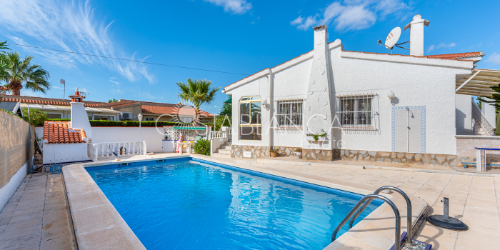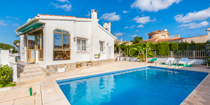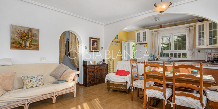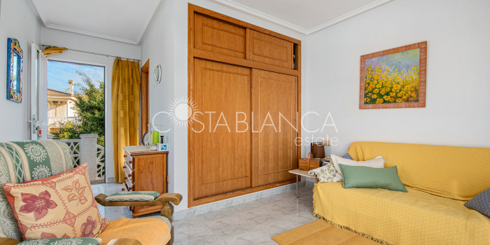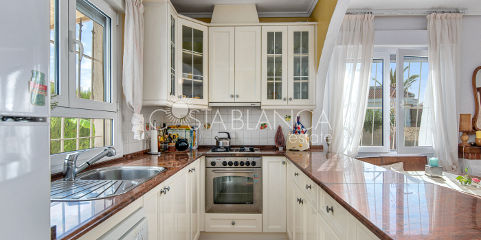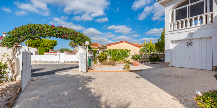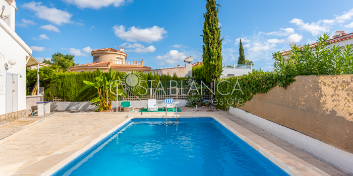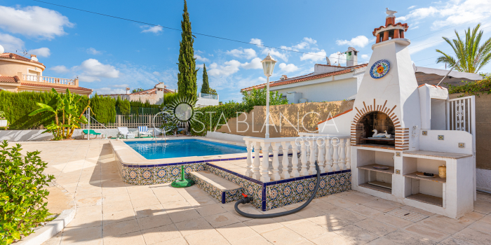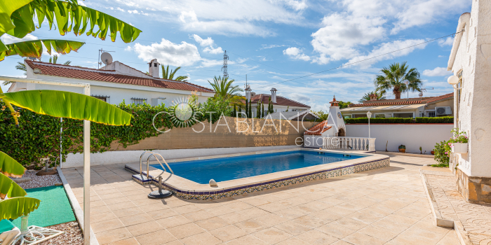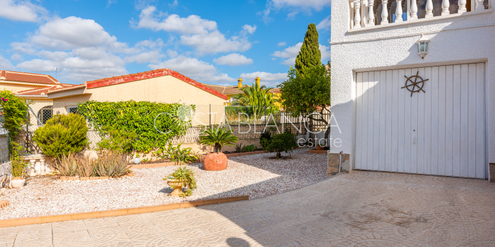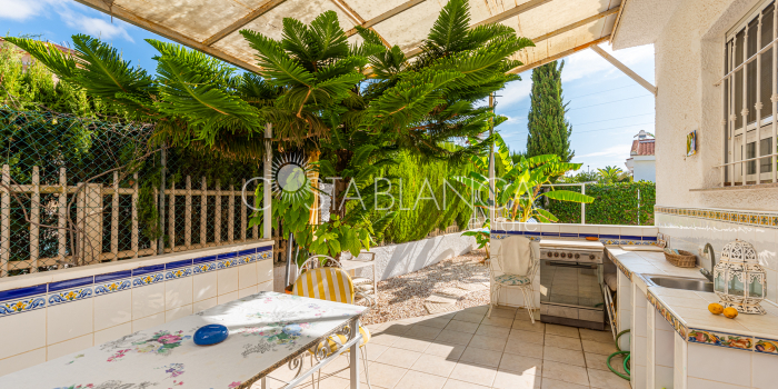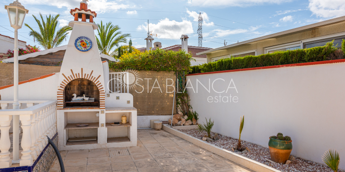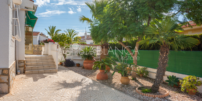 Willa z oddzielnym apartamentem z 3 sypialniami i 2 łazienkami w centrum Ciudad Quesada Ta willa ma powierzchnię mieszkalną 121 m2 i posiada oddzielne mieszkanie oraz łącznie 3 sypialnie. Na parterze znajdują się dwie sypialnie i jedna łazienka, salon z kominkiem oraz kuchnia. Na pierwszym piętrze znajduje się apartament z jedną sypialnią i jedną łazienką. Z kuchni jest przyjemna część wypoczynkowa na zewnątrz z grillem. Z salonu wyjście na przeszklony taras, który jest przyjemnym miejscem do siedzenia w okresie zimowym. W całym domu jest system centralnego ogrzewania, okna podwójne. Zewnętrzny obszar Działka o powierzchni 560 m2 z basenem. Ogród jest wyłożony kafelkami i obejmuje kilka miejsc do siedzenia oraz miejsce na grilla. Na terenie posiadłości znajduje się kilka domków na drzewie. Willa znajduje się w popularnej dzielnicy Quesada, w pobliżu barów i restauracji. To około 5 minut spacerem do centrum Quesada. Willa wymaga remontu, jest to świetna okazja dla kupujących, aby kupić willę z dużą działką w centrum Quesada i za dobrą cenę. Zalecane jest oglądanie. OkolicaCiudad Quesada to przytulne i popularne miejsce na wybrzeżu Costa Blanca. Znajdziesz tu sklepy, restauracje, kawiarnie, bary, apteki, banki, usługi fryzjerskie, medyczne, dentystyczne oraz wiele innych. Na głównej ulicy niedawno wybudowano pasaż handlowy z kilkoma sklepami. Ciudad Quesada oferuje również różne atrakcje dla całej rodziny, takie jak słynne pole golfowe La Marquesa, kręgle, minigolf, korty tenisowe, boiska do piłki nożnej, siłownie, spa, sezonowy park wodny i wiele innych. PlażeWspaniałe plaże Costa Blanca ciągną się wzdłuż całego wybrzeża i są położone od siebie w bardzo niewielkich odległościach. Słynna 11-kilometrowa piaszczysta plaża w Guardamar del Segura i plaża „Torrelamata" w La Mata to dwie najbliższe lokalizacje, położone około 10-15 minut jazdy samochodem od Ciudad Quesada. KlimatCiudad Quesada to idealne miejsce zarówno do spędzenia lata, jak i do życia przez cały rok. Lata są zawsze słoneczne i ciepłe, a zimy łagodne. Średnia temperatura tego obszaru wynosi 20 stopni. Ciudad Quesada jest otoczony przez dwa duże słone jeziora, które działają oczyszczająco na powietrze i zapewniają na tym terenie szczególnie korzystne warunki zdrowotne. Klimat ma wyjątkowo pozytywny wpływ na osoby z m.in. astmą, alergiami, reumatyzmem i chorobami skóry. Powołując się na badania naukowe, obszar ten należy do jednego z najzdrowszych miejsc na świecie, dzięki swoim słonym jeziorom. ZakupyW Ciudad Quesada znajdziesz szeroki wybór sklepów i supermarketów. Natomiast, w oddalonej o około 10 minut jazdy samochodem miejscowości Torrevieja znajduje się centrum handlowe Habaneras i Carrefour. W Torrevieja znajduje się także bardzo znana ulica handlowa. Zaledwie 10 km stąd można również zrobić zakupy w dużym centrum handlowym Zenia Boulevard, w którym są takie sklepy jak: Zara, Massimo Dutti, H&M, Stradivarius, Oysho, Mango, Primark, Pull & Bear, Decathlon, Guess, Kiko, Druni, Rituals , Leroy Merlin i wiele innych. GolfW Ciudad Quesada znajduje się znane pole golfowe „La Marquesa Golf & Country Club". A w promieniu 15 kilometrów znajdziesz również: Las Colinas Golf & Country Club, La Finca Golf, Golf Las Ramblas Golf Villamartín, Lo Romero Golf, Vistabella Golf, Real Clud de Golf Campoamor i Greenlands Golf . Jachty i sporty wodneW promieniu 20 kilometrów znajduje się kilka klubów jachtowych i portów. W Torrevieja są trzy, jeden w Guardamar del Segura i dwa w Santa Pola. Swoją siedzibę mają tu szkoły żeglarstwa, windsurfingu czy nurkowania. W paru miejscach w pobliżu można wypożyczyć deski do SUP (wiosłowanie na desce na stojąco), a wiele plaż oferuje zajęcia wodne, takie jak fly-boarding, banany, narty wodne i inne. Szpitale i służba zdrowiaW Torrevieja znajduje się dwa nowoczesne szpitale: jeden z nich jest publiczny, a drugi – szpital Quiron - prywatny. Laguna Mar Menor, która znajduje się około 30 minut jazdy od Ciudad Quesada, jest jedną z największych lagun słonowodnych w Europie o maksymalnej głębokości około 7 metrów. Wysokie zasolenie wody tworzy w tym miejscu wyjątkowy mikroklimat, który ma wiele właściwości zdrowotnych, szczególnie dla osób z problemami z sercem, zapaleniem stawów lub chorobami płuc. Kąpiel borowinowa jest również znana z łagodzenia chorób skóry, takich jak łuszczyca, i jest zalecana przez szerokie grono specjalistów w tej dziedzinie. Jak dotrzećCiudad Quesada znajduje się około 40 minut jazdy samochodem od lotniska w Alicante i 55 minut od lotniska w Murcji. Z Ciudad Quesada można łatwo dotrzeć do największych miast tego regionu takimi jak Elche, Alicante, Walencja, Murcia i Cartagena. Najszybsza droga prowadzi autostradą A-7 lub nadmorską autostradą N-332.