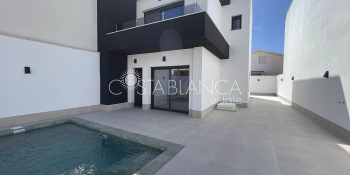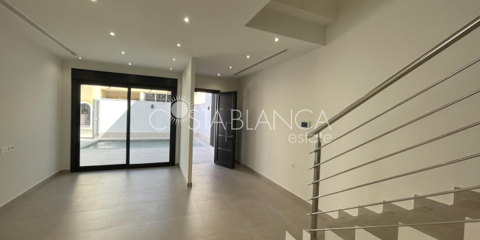 Nowe wille na sprzedaż w Las Heredades, Costa Blanca Nowoczesne wille w spokojnej okolicy z dobrym połączeniem komunikacyjnym Odkryj tę ekskluzywną inwestycję składającą się z 5 nowoczesnych willi położonych w Las Heredades, uroczej i spokojnej miejscowości w pobliżu Rojales i Almoradí, w samym sercu południowej Costa Blanca. Ta spokojna dzielnica mieszkaniowa oferuje autentyczny hiszpański styl życia w otoczeniu natury, a jednocześnie blisko wszystkich udogodnień, pól golfowych i śródziemnomorskich plaż Guardamar del Segura i Torrevieja, oddalonych o zaledwie 12 km. Elegancki i funkcjonalny design Te nowo wybudowane wille charakteryzują się nowoczesnym śródziemnomorskim designem, który łączy w sobie komfort, styl i praktyczność. Każda nieruchomość ma dwa piętra i oferuje jasne i przestronne wnętrza, które płynnie łączą się z zewnętrznymi przestrzeniami mieszkalnymi. Wille obejmują 3 sypialnie i 3 łazienki, otwartą kuchnię z w pełni zintegrowanym sprzętem AGD oraz przestronną część dzienną z jadalnią i bezpośrednim dostępem do tarasu i ogrodu. Zbudowane z wysokiej jakości materiałów i z dbałością o szczegóły, domy te zapewniają komfortowy i energooszczędny styl życia przez cały rok. Prywatne przestrzenie zewnętrzne i funkcje premium Każda willa jest zbudowana na własnej prywatnej działce i posiada: Prywatny basen (6x3 m) Ogród krajobrazowy z automatycznym systemem nawadniania Prywatny parking na dwa samochody Tarasy i miejsca do siedzenia na świeżym powietrzu, idealne do cieszenia się śródziemnomorskim klimatem Dodatkowe funkcje obejmują: Klimatyzację kanałową Oświetlenie LED we wnętrzach i na zewnątrz Wbudowane szafy we wszystkich sypialniach W pełni wyposażoną kuchnię z nowoczesnymi urządzeniami Idealna lokalizacja dla relaksującego życia w stylu śródziemnomorskim Las Heredades jest idealnym miejscem dla osób poszukujących spokoju, ale nie chcących rezygnować z bliskości plaż, pól golfowych i terenów rekreacyjnych. Dzięki tradycyjnej hiszpańskiej atmosferze i doskonałym połączeniom drogowym obszar ten jest idealny zarówno do stałego zamieszkania, jak i spędzania wakacji na Costa Blanca. Odległości do najważniejszych punktów: Plaże Guardamar del Segura: 12 km Centrum miasta Rojales: 3 km Almoradí: 2 km La Marquesa Golf: 5 km Torrevieja: 15 km Międzynarodowe lotnisko w Alicante: 40 km (około 45 minut jazdy samochodem) Lotnisko w Murcji (Corvera): 50 km Skontaktuj się z nami już dziś, aby umówić się na wizytę i odkryć swój wymarzony dom w Las Heredades na Costa Blanca.