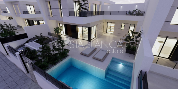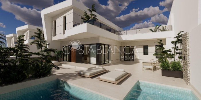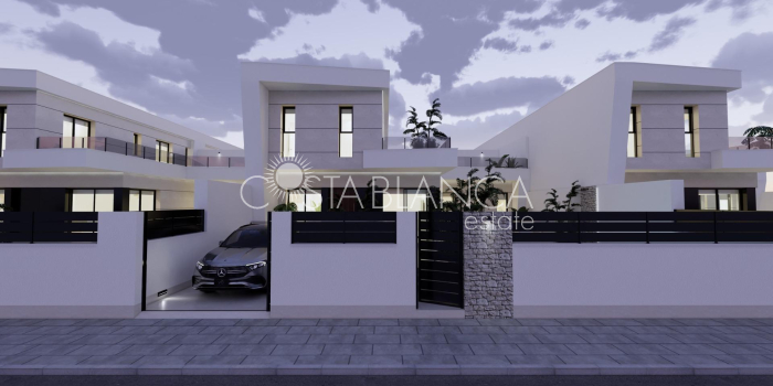 Nowoczesne, nowo wybudowane wille w Dolores, Alicante Współczesne życie w sercu regionu Vega Baja Odkryj tę ekskluzywną inwestycję nowych willi w Dolores, uroczej miejscowości w regionie Vega Baja del Segura, na południe od Alicante. Znane ze swojego tradycyjnego hiszpańskiego charakteru i otoczone bujną okolicą, Dolores oferuje spokojny styl życia, zapewniając jednocześnie wszystkie codzienne udogodnienia w zasięgu spaceru — sklepy, restauracje, szkoły i lokalne usługi. Położona zaledwie 12 km od plaż La Marina i Guardamar del Segura, z łatwym dostępem do autostrady AP-7, ta dzielnica mieszkaniowa jest doskonale skomunikowana z głównymi nadmorskimi miastami Costa Blanca. Eleganckie, nowoczesne wille z prywatnym basenem Te nowoczesne, dwupiętrowe wille zostały zaprojektowane z myślą o komforcie, funkcjonalności i stylu. Na parterze znajduje się jasna, otwarta kuchnia połączona z salonem i jadalnią, z dużymi przesuwanymi drzwiami prowadzącymi bezpośrednio na taras i prywatny ogród z basenem. Na parterze znajduje się również jedna sypialnia z łazienką, toaleta dla gości oraz wygodna pralnia na świeżym powietrzu. Na pierwszym piętrze znajdują się dwie dodatkowe sypialnie, łazienka oraz dostęp do dużego, otwartego tarasu o powierzchni 60 m2, idealnego do opalania się lub relaksu w śródziemnomorskim klimacie. Każdy dom posiada prywatny parking na terenie działki. Wysokiej jakości wykończenie i nowoczesny komfort Wille te, zbudowane z wysokiej jakości materiałów i o współczesnym designie, są w pełni wyposażone do całorocznego zamieszkania. Główne cechy to: Zewnętrzna stolarka z przerwą termiczną Rolety z napędem elektrycznym System ciepłej wody zasilany energią aerotermiczną W pełni zainstalowana klimatyzacja kanałowa Prywatny basen Prywatny parking i ogród krajobrazowy Wnętrza łączą w sobie elegancję i funkcjonalność, maksymalizując naturalne światło i oferując wyjątkowe warunki życia dzięki silnemu połączeniu przestrzeni wewnętrznych i zewnętrznych. Doskonała lokalizacja blisko wszystkiego Dolores cieszy się strategiczną lokalizacją, zapewniającą równowagę między spokojem a dostępnością. Najważniejsze odległości: Plaże La Marina i Guardamar del Segura: 12 km Lotnisko w Alicante (Elche-El Altet): 30 km (25 minut samochodem) Lotnisko Murcia-Corvera: 70 km (1 godzina samochodem) Pola golfowe: 15 km Miasto Alicante: 40 km Żyj śródziemnomorskim stylem życia w Dolores Te nowo wybudowane wille w Dolores oferują idealne połączenie nowoczesnego designu, komfortu i bliskości wybrzeża. Idealne zarówno do stałego zamieszkania, jak i na wakacje, zapewniają spokojny śródziemnomorski styl życia w otoczeniu natury i wygód. Skontaktuj się z nami już dziś, aby umówić się na oglądanie nieruchomości i spełnić swoje marzenie o domu w Dolores.