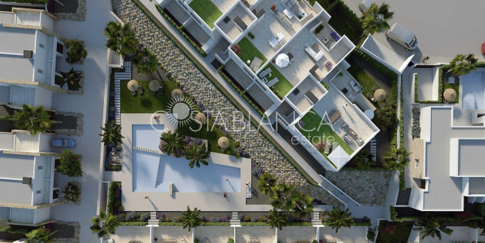 Nowe bungalowy w La Finca Golf, Algorfa - Luksus i natura na Costa Blanca Ekskluzywny kompleks mieszkalny w otoczeniu golfa Położony w prestiżowym kurorcie La Finca Golf w Algorfa, ten nowy kompleks mieszkaniowy oferuje wyjątkową okazję do cieszenia się domem w samym sercu południowego wybrzeża Costa Blanca. Zaprojektowany z myślą o komforcie, ekskluzywności i niezrównanym połączeniu z naturą, kompleks ten obejmuje nowoczesne bungalowy otoczone rozległymi terenami zielonymi i spektakularnym wspólnym basenem. La Finca Golf to uprzywilejowana enklawa, która łączy w sobie spokój i najwyższej klasy usługi, idealna dla osób poszukujących spokojnego stylu życia z łatwym dostępem do głównych atrakcji regionu. Nowoczesny design i opcje mieszkalne Osiedle oferuje bungalowy z 2 i 3 sypialniami, zaprojektowane w nowoczesnym stylu i z wysokiej jakości materiałów. Wszystkie domy mają: 2 pełne łazienki. Kuchnia na otwartym planie zintegrowana z salonem. Szafy wnękowe we wszystkich sypialniach. Elektryczne rolety w sypialniach i salonie. W pełni zainstalowana klimatyzacja kanałowa. Opcje dystrybucji: Parter z prywatnym ogrodem, idealny dla osób poszukujących większej przestrzeni na zewnątrz. Najwyższe piętro z prywatnym tarasem i solarium, idealne do podziwiania śródziemnomorskiego klimatu i panoramicznych widoków. Istnieje również możliwość zakupu podziemnego miejsca parkingowego i komórki lokatorskiej za dodatkową opłatą. Uprzywilejowana lokalizacja i bliskie połączenia To ekskluzywne osiedle mieszkaniowe znajduje się w La Finca Golf, Algorfa, w pięknej Vega Baja. Jego strategiczna lokalizacja pozwala cieszyć się spokojem golfa, pozostając jednocześnie blisko wszystkich niezbędnych udogodnień. Odległości do głównych atrakcji: Plaże Guardamar del Segura - 15 km (15 minut jazdy). Lotnisko Alicante - 35 km (35 minut jazdy). Pobliskie miasta - Almoradí, Benijófar i Ciudad Quesada w odległości kilku minut jazdy samochodem. Centra handlowe w Torrevieja i Orihuela Costa - 15 minut jazdy samochodem. Wyjątkowa okazja do inwestycji lub zamieszkania Niezależnie od tego, czy chodzi o stałą rezydencję, dom wakacyjny czy nieruchomość inwestycyjną, te nowe bungalowy w La Finca Golf oferują idealne połączenie designu, lokalizacji i jakości życia na Costa Blanca. Skontaktuj się z nami już dziś, aby uzyskać więcej informacji lub umówić się na oglądanie.