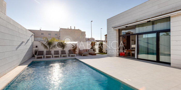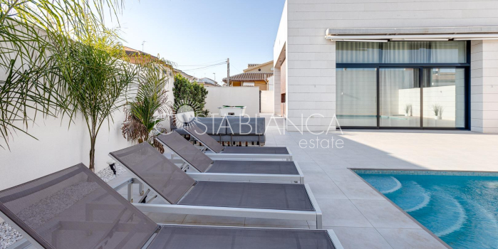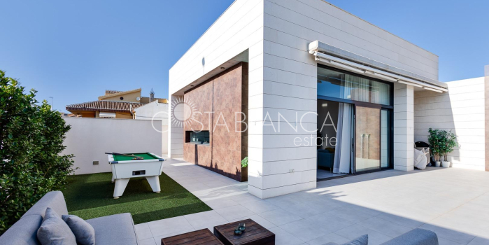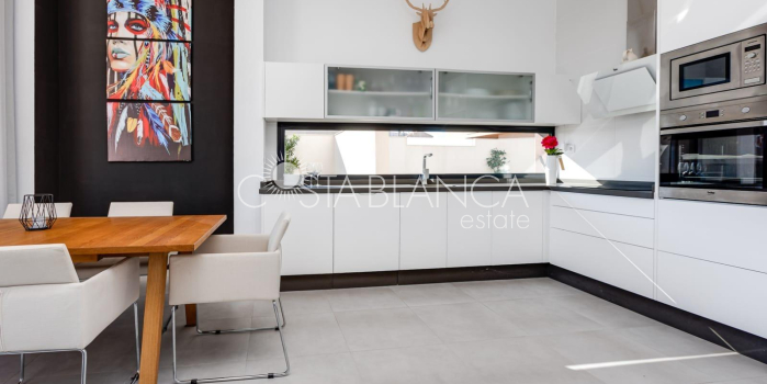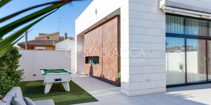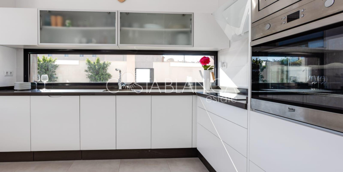 ŚRÓDZIEMNOMORSKA WILLA W STREFIE MIEJSKIEJ BLISKO MORZA Starannie zaprojektowany dla dobrego samopoczucia, ten dom jest pokryty naturalnym kamieniem. Podwójna wysokość salonu i naturalne światło w łazienkach to tylko niektóre z niespodzianek, które można znaleźć w tej willi. Willa posiada przestronny salon-jadalnia-kuchnia, 3 sypialnie, 2 łazienki (jedna en suite), garaż na działce, prywatny ogród o powierzchni około 100m2, tarasy. Urządzenia elektryczne Teren zagospodarowany z sztuczną trawą i wybrukowanym tarasem. Preinstalacja klimatyzacji za pomocą kanałów w salonie-jadalni i sypialniach. Wbudowana szafa. Położony w gminie Pilar de la horadada, ma optymalną lokalizację, z łatwym dostępem do szkół (200 metrów), centrów medycznych (250 metrów), aptek (100 metrów), plaż (1,6 km) i otoczony parkami, terenami zielonymi i usługami transportowymi.