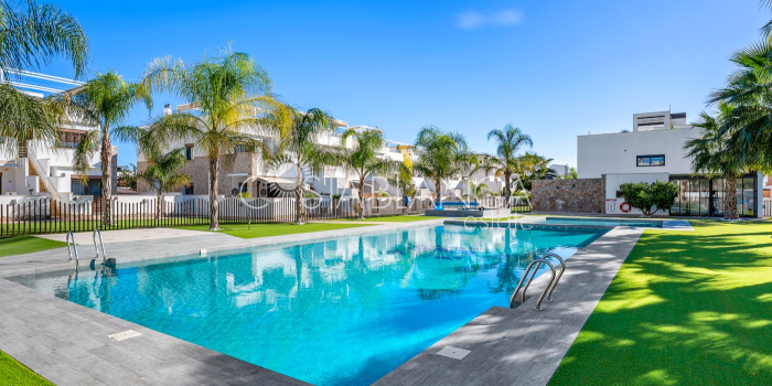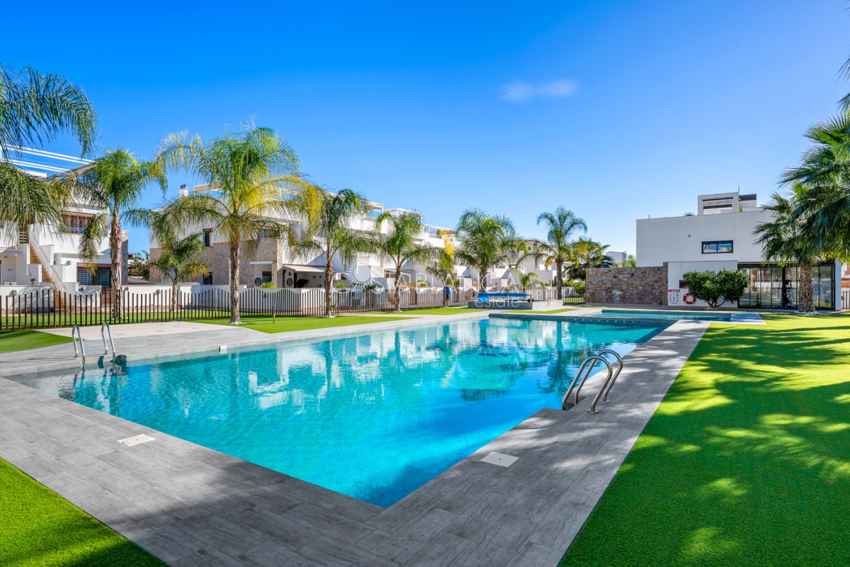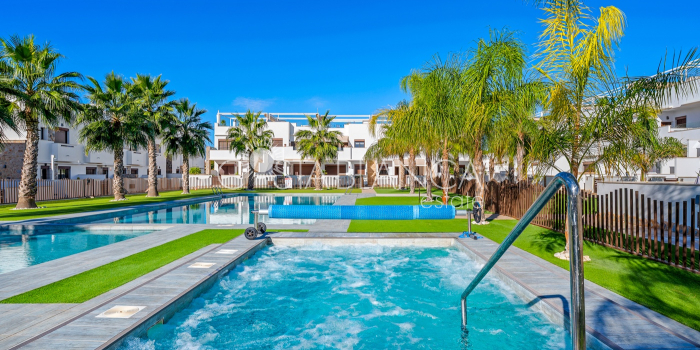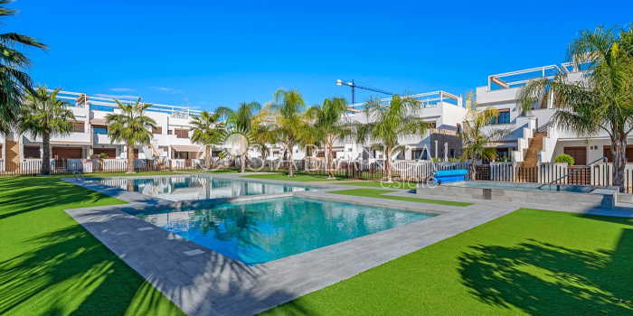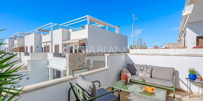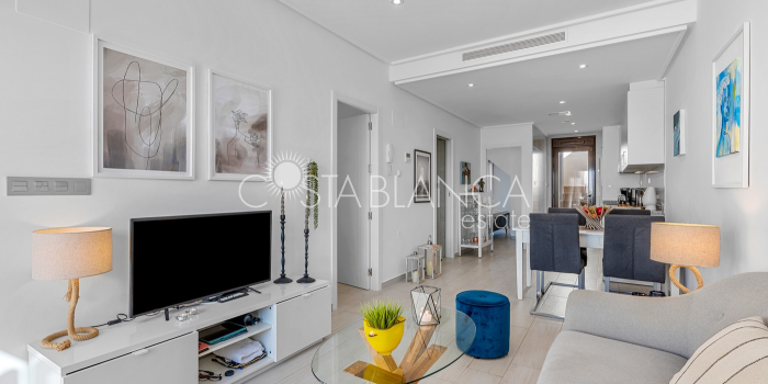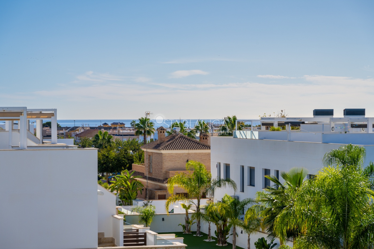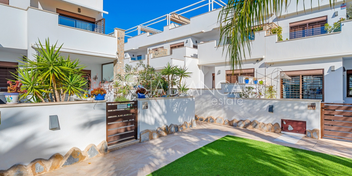To piękne mieszkanie typu penthouse w Torre de la Horadada znajduje się w odległości spaceru od plaży, centrum handlowego i wielu innych atrakcji! Mieszkanie ma powierzchnię 67 m², w której znajdują się dwie podwójne sypialnie i dwie nowoczesne łazienki; jedna z nich przynależy do sypialni głównej. Jest także jasna kuchnia w układzie otwartym połączona z jadalnią i salonem. Z kuchni jest bezpośrednie wyjście na taras na dachu, a z salonu – na piękny taras od strony południowej. Mieszkanie wyposażone jest w centralną klimatyzację (ciepło/zimno) oraz ogrzewanie podłogowe w obu łazienkach. Strefa zewnętrznaPrzy wejściu do mieszkania znajduje się piękny taras od strony południowej z wysuwanym daszkiem i miejscem do siedzenia. Stąd roztacza się widok na część wspólną.Mieszkanie posiada również duży taras na dachu z miejscem na kilka stref wypoczynkowych. Część tarasu jest zadaszona wysuwanym daszkiem. Znajduje się tam również pomieszczenie gospodarcze. Mieszkanie jest częścią kompleksu mieszkalnego z basenem, jacuzzi, siłownią, sauną i terenami zielonymi. Do mieszkania przynależy prywatne miejsce parkingowe w garażu podziemnym.
