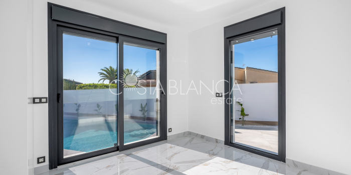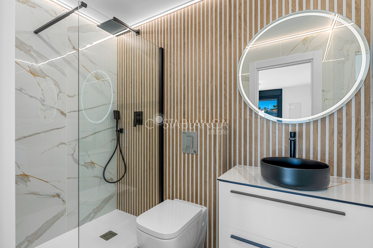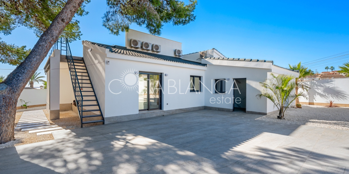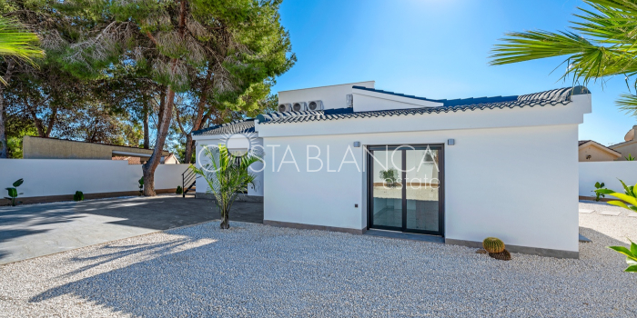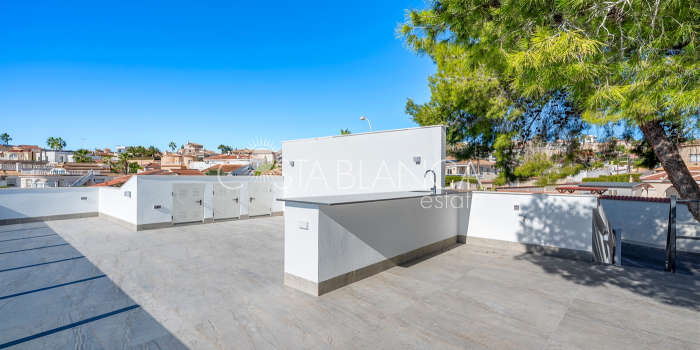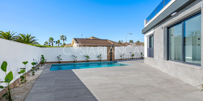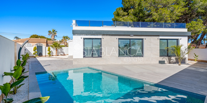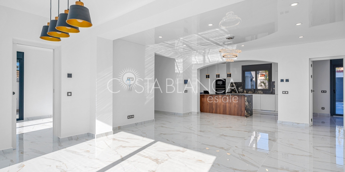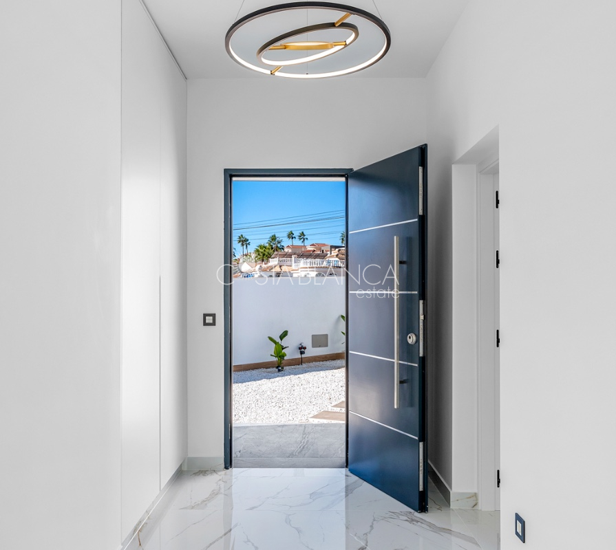 Odkryj esencję śródziemnomorskiego luksusu w tej spektakularnej, w pełni odnowionej, wolnostojącej willi, położonej przy jednej z najpopularniejszych ulic w Ciudad Quesada, zaledwie kilka kroków od centrum miasta, na ekskluzywnej działce narożnej, która gwarantuje prywatność, przestronność i wyjątkowy styl życia. Ta nieruchomość łączy w sobie nowoczesny design, funkcjonalność i absolutny komfort: Dom 4 przestronne sypialnie, wszystkie z szafami na wymiar i wykończeniem premium. 4 designerskie łazienki, w tym 3 z łazienkami en-suite, wyposażone w wysokiej jakości materiały i utrzymane w nienagannej, nowoczesnej estetyce. Przestronny salon z jadalnią połączony z luksusową, otwartą kuchnią, wyposażoną w najnowocześniejszy sprzęt AGD marki BOSCH. Indywidualnie sterowana klimatyzacja strefowa, sterowana za pomocą aplikacji mobilnej. Ogrzewanie podłogowe w całym domu, idealne dla całorocznego komfortu. Zintegrowana automatyka domowa i elektryczne rolety zapewniają inteligentne doznania mieszkaniowe. Ekskluzywne wykończenia: designerskie płytki, materiały i stolarka, łączące elegancję z funkcjonalnością. Elewacja Imponujący prywatny basen o wymiarach 5x10 metrów z wbudowanym jacuzzi, idealny do relaksu i delektowania się wyjątkowym klimatem Costa Blanca. Duża, oddzielna pralnia, w pełni wyposażona w pralkę i suszarkę. Środowisko zewnętrzne zaprojektowane z myślą o wypoczynku, prywatności i życiu na świeżym powietrzu. Ta willa stanowi wyjątkową okazję dla osób poszukujących luksusowego domu w jednej z najbardziej pożądanych lokalizacji w Quesadzie, łączącego technologię, styl i komfort w uprzywilejowanym otoczeniu.