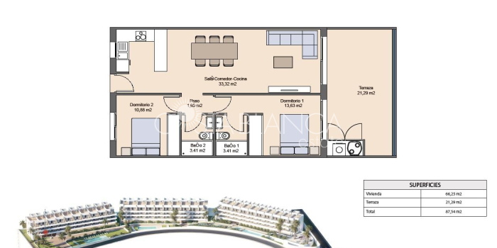 Ekskluzywne nowe rezydencje z widokiem na morze w Finestrat, Alicante Doskonała lokalizacja z panoramicznym widokiem na Benidorm i Morze Śródziemne Odkryj wyjątkową i luksusową nową inwestycję w Finestrat w Alicante, oferującą ekskluzywny styl życia na wybrzeżu Costa Blanca. Ten ogrodzony kompleks mieszkaniowy obejmuje 99 nowoczesnych apartamentów z 2 sypialniami i 2 łazienkami, położonych zaledwie 2,3 km od plaż Benidormu, z zapierającym dech w piersiach widokiem na Morze Śródziemne i panoramę miasta. Dzięki położeniu na wzniesieniu osiedle cieszy się spokojną, naturalną okolicą, pozostając jednocześnie blisko tętniącego życiem centrum Benidormu. Finestrat to bardzo popularna okolica, która łączy w sobie spokój, naturę i bliskość wszystkich niezbędnych usług. Najwyższej klasy udogodnienia dla śródziemnomorskiego stylu życia Z myślą o komforcie i wypoczynku, kompleks mieszkaniowy obejmuje: Trzy wspólne baseny do relaksu i zabawy Klub fitness z salą treningową i basenem dla miłośników sportu Plac zabaw dla dzieci i kort do padla dla rodzinnej zabawy Zagospodarowane tereny zielone i ścieżki spacerowe do spokojnych spacerów Wszystkie apartamenty zostały zbudowane z najwyższej jakości materiałów i wykończeń, takich jak: Okna aluminiowe z przegrodą termiczną i podwójnymi szybami zapewniające energooszczędność i izolację akustyczną Oświetlenie LED w całym domu Umeblowane łazienki z podświetlanymi lustrami Zbrojone drzwi wejściowe dla maksymalnego bezpieczeństwa Doskonała komunikacja i usługi Inwestycja oferuje doskonałe połączenia z kluczowymi punktami zainteresowania: Międzynarodowe lotnisko w Alicante – tylko 55 km (około 40 minut jazdy samochodem) Centrum handlowe La Marina – zaledwie 3 km od inwestycji, oferujące sklepy, restauracje i rozrywkę Plaże Levante i Poniente – mniej niż 10 minut jazdy samochodem Park przyrodniczy Puig Campana – idealny do uprawiania turystyki pieszej, jazdy na rowerze i aktywności na świeżym powietrzu Znane parki rozrywki, takie jak Terra Mítica i Aqualandia – w odległości 5 km W pobliżu wiodących centrów medycznych oraz szkół publicznych i prywatnych Nowoczesny design i naturalne światło Każdy dom został zaprojektowany tak, aby maksymalnie wykorzystać naturalne światło dzięki dużym oknom, które zapewniają wspaniałe widoki na Benidorm i morze. Wnętrza oferują otwarty układ, funkcjonalne przestrzenie i doskonałą izolację zapewniającą komfort przez cały rok. Niezależnie od tego, czy szukasz stałego miejsca zamieszkania, nieruchomości wakacyjnej, czy solidnej inwestycji, ta nowa inwestycja w Finestrat oferuje połączenie spokoju, luksusu i bliskości tętniącego życiem miasta Benidorm. Zabezpiecz swoją wymarzoną nieruchomość na Costa Blanca Nie przegap okazji, aby stać się właścicielem pięknego nowego apartamentu w jednej z najbardziej pożądanych lokalizacji w Alicante. Skontaktuj się z nami już dziś, aby uzyskać więcej informacji, umówić się na wizytę lub zarezerwować swój nowy dom w Finestrat.