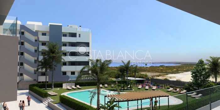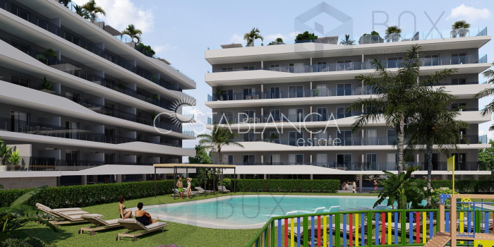 NOWO WYBUDOWANY KOMPLEKS MIESZKALNY W SANTA POLA Nowoczesny zamknięty kompleks mieszkalny składający się z 3 bloków apartamentów z dużymi terenami wspólnymi, w tym basenem z łóżkami wodnymi, placem zabaw dla dzieci, pergolą i parkingiem dla rowerów. Apartamenty mają 3 i 2 sypialnie, oba typy obejmują 2 pełne łazienki, kuchnię na otwartym planie z salonem, wyposażone szafy, taras, miejsce parkingowe. Mają wspólny ogród, basen z wejściem typu plażowego, wyposażony w prysznice i dużą drewnianą pergolę. Ma zagospodarowane tereny z palmami i roślinnością, z których wszystkie są oświetlone. W centralnej części basenu znajduje się płytszy obszar, w którym znajdują się łóżka wodne. Gmina Santa Pola znajduje się na popularnym wybrzeżu Costa Blanca nad Morzem Śródziemnym, na południe od Alicante i w regionie Bajo Vinalopó. Miasto znajduje się w godnym pozazdroszczenia położeniu geograficznym, w otoczeniu naturalnych krajobrazów i ze specjalnym mikroklimatem, który oferuje łagodny klimat przez cały rok. Jego centrum miejskie jest ograniczone od wschodu i zachodu fortecą zamkową i portem, a graniczy z Parkiem Naturalnym Santa Pola Salinas oraz Sierra i Cabo de Santa Pola, starożytną rafą, która dziś charakteryzuje się rafą porośniętą sosnami. Santa Pola znajduje się 21 km od Alicante, stolicy prowincji z doskonałą infrastrukturą i 15 km od międzynarodowego lotniska "Elche-Alicante".
