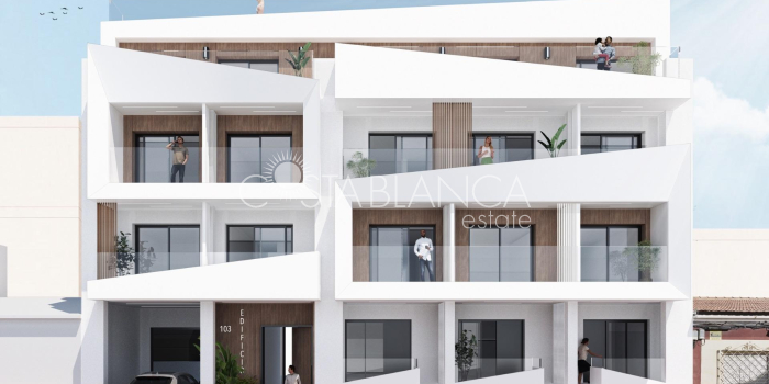 Nowoczesne apartamenty zaledwie 250 m od plaży El Cura w Torrevieja Nowa inwestycja w doskonałej lokalizacji Ten nowo wybudowany apartamentowiec znajduje się zaledwie 250 metrów od słynnej plaży El Cura w Torrevieja, oferując mieszkańcom łatwy dostęp do jednej z najpopularniejszych plaż w okolicy. Budynek składa się z 17 jednostek, w tym apartamentów z 1 i 2 sypialniami, każdy z 1 lub 2 łazienkami. Dodatkowo dostępne są penthousy z prywatnym solarium i wspaniałym widokiem na morze, idealne do cieszenia się śródziemnomorskim stylem życia. Udogodnienia premium dla relaksu Mieszkańcy mogą korzystać z basenu i solarium na dachu, idealnych do relaksu po dniu spędzonym na plaży. Budynek oferuje również opcjonalne podziemne miejsca parkingowe i komórki lokatorskie, dostępne za dodatkową opłatą, zapewniając mieszkańcom dodatkową wygodę i bezpieczeństwo. Tętniące życiem miasto w Torrevieja Torrevieja to tętniące życiem miasto znane z całorocznych atrakcji kulturalnych i rekreacyjnych, dzięki czemu jest doskonałym miejscem zarówno dla stałych mieszkańców, jak i wczasowiczów. Dzięki łagodnemu klimatowi i ponad 300 słonecznym dniom rocznie, obszar ten jest idealny dla tych, którzy lubią zajęcia na świeżym powietrzu i życie na plaży. Idealna lokalizacja z łatwym dostępem do interesujących miejsc Ta nieruchomość jest idealnie zlokalizowana w pobliżu wszystkich niezbędnych usług, w tym supermarketów, restauracji i miejsc rozrywki. Główne atrakcje są łatwo dostępne: Lotnisko w Alicante oddalone jest o zaledwie 45 km. Kilka pól golfowych w odległości 7-10 km. Centrum handlowe Zenia Boulevard oddalone jest o zaledwie 8 km. Port Torrevieja znajduje się zaledwie 2 km od budynku. Ciesz się nowoczesnym życiem nad morzem w tętniącej życiem i dobrze skomunikowanej okolicy, gdzie wszystko, czego potrzebujesz, znajduje się w niewielkiej odległości.