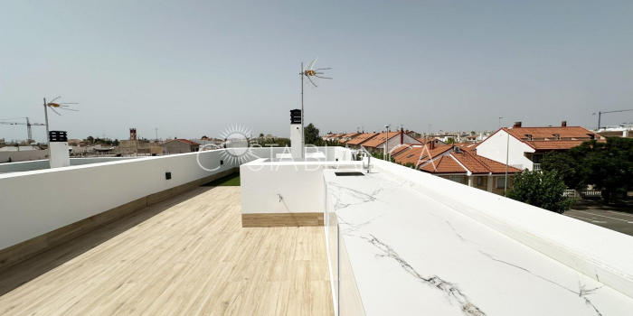 Ekskluzywne nowe wille 300 m od plaży w Torre de la Horadada Luksusowe życie na wybrzeżu w doskonałej lokalizacji Odkryj ten ekskluzywny projekt nowych willi w Torre de la Horadada, jednym z najbardziej poszukiwanych nadmorskich miast na południu Alicante. Położone zaledwie 300 m od Morza Śródziemnego, w odległości spacerowej od sklepów, restauracji i codziennych usług, wille te oferują wyjątkową okazję do cieszenia się stylem życia Costa Blanca. Torre de la Horadada słynie z relaksującej atmosfery, pięknej promenady i piaszczystych plaż, dzięki czemu jest idealnym miejscem zarówno do stałego zamieszkania, jak i spędzania wakacji. Ostatnia gotowa do zamieszkania willa w pełni wyposażona Ta butikowa inwestycja składa się tylko z czterech niezależnych willi, a ostatnia z nich jest gotowa do zamieszkania i w pełni umeblowana. Willa jest wyposażona w meble, sprzęt AGD i klimatyzację kanałową, dzięki czemu można się do niej wprowadzić od razu i zacząć cieszyć się nowym domem nad morzem. Położona na prywatnej działce o powierzchni około 207 m2, willa oferuje około 130 m2 powierzchni użytkowej rozmieszczonej na parterze, pierwszym piętrze i prywatnym solarium na dachu. Nowoczesny design z prywatnym basenem i solarium Willa charakteryzuje się nowoczesnym designem z otwartymi i jasnymi przestrzeniami. Wewnątrz znajdują się trzy przestronne sypialnie i trzy łazienki, salon z jadalnią i otwartą kuchnią oraz bezpośredni dostęp do ogrodu i prywatnego basenu. Solarium na dachu stanowi idealne miejsce do relaksu, opalania się lub podziwiania otwartych widoków, tworząc doskonałą przestrzeń do spędzania czasu na świeżym powietrzu przez cały rok. Wysoka jakość wykonania i komfort Nieruchomość została zbudowana zgodnie z wysokimi standardami i obejmuje wzmocnione drzwi wejściowe, rolety z napędem elektrycznym w sypialniach, prywatny basen oraz podstawowy system automatyki domowej do sterowania elektroniczego. Klimatyzacja kanałowa jest w pełni zainstalowana, zapewniając komfort o każdej porze roku. Prywatne miejsce parkingowe na terenie działki zapewnia wygodę i bezpieczeństwo. Torre de la Horadada i okolice Torre de la Horadada oferuje urocze nadmorskie otoczenie z długą promenadą nadmorską, marinami i szeroką gamą restauracji, barów i lokalnych sklepów. Pobliskie plaże Torre de la Horadada i Mil Palmeras należą do najlepszych w okolicy i są idealne do pływania, uprawiania sportów wodnych, nurkowania z rurką i akwalungiem. Okolica jest dobrze skomunikowana i otoczona polami golfowymi, centrami handlowymi i obiektami rekreacyjnymi. Odległości do głównych atrakcji Plaża: 0,3 km Centrum handlowe Plaza Nueva: 0,2 km Lo Romero Golf: 7 km Przystań jachtowa Torre de la Horadada: 1,5 km Lotnisko Murcia Corvera: 45 km Lotnisko Alicante: 50 km Twoje nowe mieszkanie nad Morzem Śródziemnym czeka Ta gotowa do zamieszkania willa w Torre de la Horadada to wyjątkowa okazja do posiadania nowoczesnego domu zaledwie kilka kroków od plaży. Skontaktuj się z nami już dziś, aby umówić się na oglądanie i zapewnić sobie tę wyjątkową nową willę na Costa Blanca.