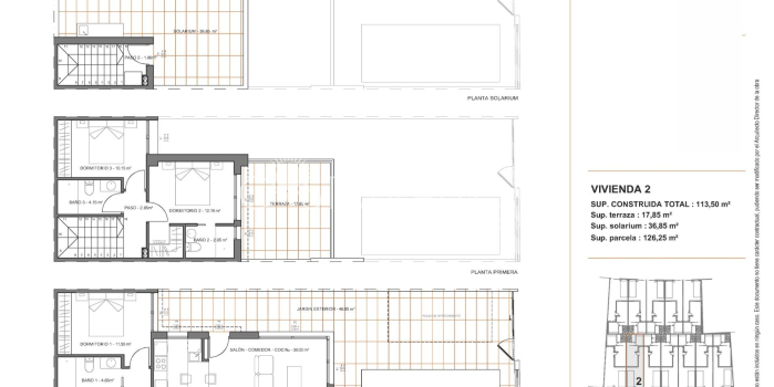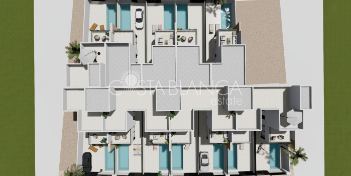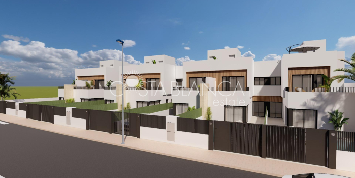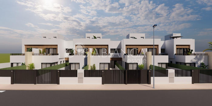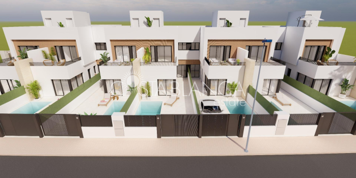 Nowoczesne domy szeregowe z prywatnym basenem blisko morza w Santiago de la Ribera Położone w dzielnicy San Blas w Santiago de la Ribera, Murcja, jednym z najbardziej atrakcyjnych obszarów Mar Menor. Ta inwestycja obejmuje 12 domów z 3 sypialniami i 2/3 łazienkami, w tym prywatny basen, taras i solarium z letnią kuchnią w wybranych domach. Wille mają eleganckie i funkcjonalne wnętrza, w pełni wyposażone kuchnie ze wszystkimi urządzeniami AGD, a także instalację klimatyzacji kanałowej. Ta inwestycja to wyjątkowa okazja, aby cieszyć się designem, komfortem i stylem zaledwie kilka minut od morza. Ekskluzywna oferta nowych nieruchomości zaledwie 1 km od plaży Odkryj tę limitowaną ofertę domów szeregowych położonych w Santiago de la Ribera, uroczej nadmorskiej miejscowości na wybrzeżu Murcji, znanej z relaksującego stylu życia, czystych plaż i doskonałego klimatu przez cały rok. Te nowe domy położone są zaledwie 1 km od wybrzeża Mar Menor, oferując idealne połączenie prywatności, komfortu i bliskości niezbędnych usług oraz możliwości spędzania wolnego czasu. Nowoczesny design i funkcjonalny rozkład pomieszczeń Każda willa jest starannie rozplanowana na dwóch kondygnacjach, a niektóre z nich posiadają taras na dachu, który zapewnia dużo przestrzeni do nowoczesnego życia. Nieruchomości posiadają: 3 przestronne sypialnie, w tym jedną na parterze 2 lub 3 w pełni wyposażone łazienki. Prywatny ogród i basen. Taras na pierwszym piętrze, a niektóre jednostki posiadają solarium na dachu, idealne do opalania się lub przyjmowania gości. Prywatny parking na terenie działki. Ponadto dwa z domów są wyposażone w panele fotowoltaiczne, które pozwalają oszczędzać energię. Wysokiej jakości wykończenie i wyposażenie Domy zostały zbudowane z dbałością o szczegóły i zgodnie z nowoczesnymi standardami i obejmują: Zbrojone drzwi wejściowe Zmotoryzowane rolety aluminiowe Umeblowana kuchnia z wyposażeniem AGD Meble łazienkowe z lustrem i oświetleniem Brodzik porcelanowy dopasowany do łazienki z zamontowanymi parawanami Instalacja klimatyzacji kanałowej Domy te zostały zaprojektowane z myślą o całorocznym użytkowaniu, zarówno jako główne miejsce zamieszkania, drugi dom lub inwestycja pod wynajem wakacyjny. Doskonała lokalizacja na wybrzeżu Costa Cálida Santiago de la Ribera oferuje śródziemnomorski i dynamiczny styl życia, gdzie wszystko jest pod ręką: Plaża (Mar Menor) – 1 km Centrum handlowe La Ribera – 2 km Roda Golf – 5 km Lotnisko San Javier – 6 km Marina Lo Pagán – 4 km Centrum handlowe Dos Mares – 3 km Doskonały dojazd drogowy do Murcji (40 km) i Kartageny (30 km) Dzięki bogatej kulturze lokalnej, cotygodniowym targom, promenadom nadmorskim i możliwości uprawiania sportów wodnych, Santiago de la Ribera jest idealnym miejscem, aby cieszyć się tym, co najlepsze na Costa Cálida. Spełnij swoje marzenie o życiu na wybrzeżu Nie przegap tej wyjątkowej okazji, aby nabyć elegancką, nowo wybudowaną willę w jednej z najbardziej pożądanych lokalizacji na wybrzeżu Murcji. Skontaktuj się z nami już teraz, aby uzyskać więcej informacji lub umówić się na wizytę.