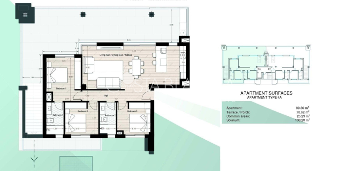 Apartamenty turystyczne z licencją na wynajem w Los Narejos, Los Alcázares Doskonała lokalizacja w Los Alcázares, Murcja Położone w popularnej dzielnicy mieszkalnej Los Narejos w Los Alcázares w Murcji, te nowo wybudowane apartamenty turystyczne oferują idealne miejsce na wakacje. Położona zaledwie 1,4 km od plaży inwestycja łączy w sobie spokój z dogodnym dostępem do niezbędnych udogodnień i zajęć rekreacyjnych. Otoczony polami golfowymi i szeroką gamą usług, jest to wyjątkowa okazja do inwestycji lub osobistej przyjemności. Nowoczesne, w pełni wyposażone apartamenty Ta ekskluzywna inwestycja obejmuje osiem stylowych apartamentów, każdy z 3 sypialniami i 2 łazienkami. Zaprojektowane z myślą o nowoczesnym życiu, nieruchomości oferują przestronne tarasy, prywatne ogrody lub solaria, aby zaspokoić różne potrzeby związane ze stylem życia. W budynku znajduje się również przestrzeń handlowa na parterze oraz wspaniały basen na dachu (na pierwszym piętrze), zapewniający relaks i rozrywkę. Wysokiej jakości funkcje i wykończenia Każdy apartament jest w pełni umeblowany i wyposażony w następujące funkcje premium: Zmotoryzowane rolety we wszystkich pokojach. Wzmocnione drzwi wejściowe zapewniające dodatkowe bezpieczeństwo. Ogrzewanie podłogowe w łazienkach. W pełni wyposażone łazienki z meblami, wieszakami na ręczniki i kabinami prysznicowymi. Zintegrowany system klimatyzacji zapewniający komfort przez cały rok. Oświetlenie zewnętrzne i wewnętrzne. Wyposażenie kuchni: okap, płyta ceramiczna, piekarnik, lodówka, zmywarka, kuchenka mikrofalowa, pralka i suszarka. Dodatkowe udogodnienia: toster, pościel i przybory kuchenne. System aerotermalny do energooszczędnego dostarczania ciepłej wody. Prysznice na zewnątrz w solariach. Odległości do najważniejszych atrakcji Plaża Los Narejos: 1,4 km. Klub golfowy Roda: 1 km. Międzynarodowe lotnisko Murcja: 34 km. Centrum handlowe Dos Mares: 18 km. Port Cartagena: 30 km. Opłacalna okazja inwestycyjna Te apartamenty turystyczne posiadają aktywną licencję na wynajem, co czyni je fantastyczną opcją na wynajem wakacyjny. Ciesz się wysokim popytem w popularnym miejscu wakacyjnym, jednocześnie korzystając z dobrze zaprojektowanej nowej nieruchomości. Twój idealny dom czeka Nie przegap szansy na posiadanie w pełni wyposażonego, nowoczesnego apartamentu w pięknej okolicy Los Narejos. Skontaktuj się z nami już dziś, aby uzyskać więcej informacji lub umówić się na wizytę!