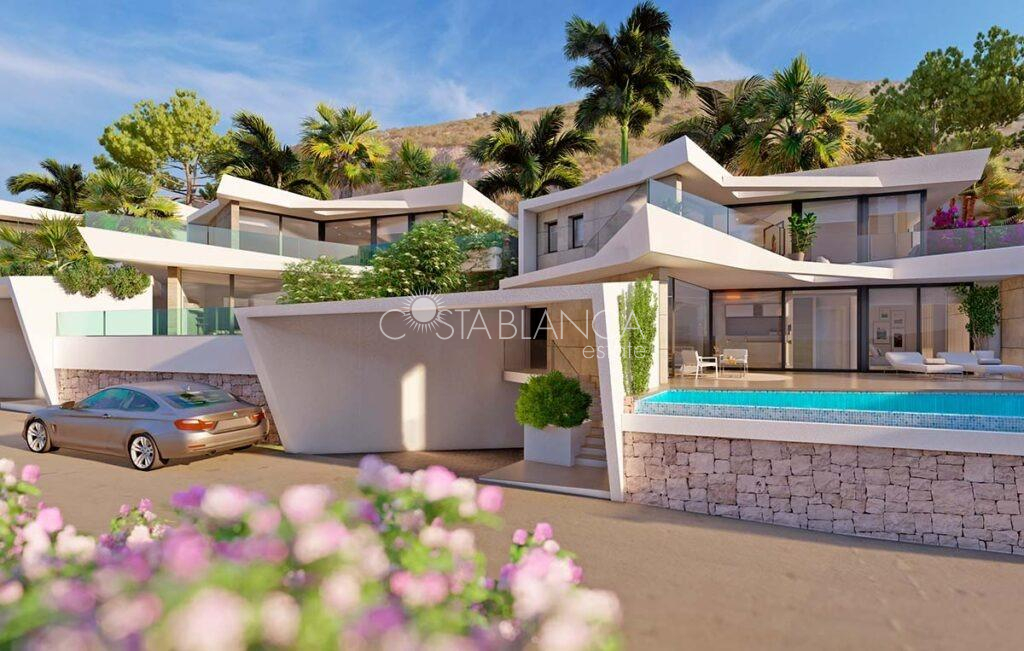 Luksusowe nowe wille z widokiem na morze w Benitachell Ekskluzywne wille w Golden Valley, Poble Nou de Benitachell Odkryj tę wyjątkową nową inwestycję obejmującą 16 niezależnych willi z przepięknym widokiem na morze, położoną w prestiżowej urbanizacji Golden Valley w Poble Nou de Benitachell w Alicante. Ta uprzywilejowana okolica położona jest pomiędzy popularnymi nadmorskimi miastami Moraira i Javea, oferując spokojne środowisko mieszkalne w otoczeniu natury, a jednocześnie blisko plaż, restauracji i niezbędnych usług. Podwyższone położenie gwarantuje panoramiczne widoki na Morze Śródziemne i spokojny styl życia na Costa Blanca. Nowoczesna architektura i elegancki design Te współczesne wille charakteryzują się awangardową architekturą w połączeniu z przestronnymi wnętrzami wypełnionymi naturalnym światłem. Każdy dom został starannie zaprojektowany, aby zapewnić komfort, prywatność i funkcjonalność, płynnie łącząc życie wewnątrz i na zewnątrz. Czyste linie, duże okna i otwarte przestrzenie tworzą atmosferę światła, wyrafinowania i śródziemnomorskiego uroku. Przestronne układy z prywatnymi ogrodami i basenami Każda willa ma powierzchnię około 290 m2 i jest zbudowana na prywatnej działce o powierzchni ponad 300 m2. Domy mają 3 lub 4 sypialnie z łazienkami oraz toaletę dla gości. Układ rozłożony na trzech poziomach obejmuje piwnicę z prywatnym garażem na dwa samochody, a w niektórych przypadkach dodatkową przestrzeń na siłownię, dodatkową sypialnię, pralnię lub schowek. Na parterze znajduje się otwarta część dzienna z jadalnią i w pełni wyposażoną kuchnią, bezpośrednim dostępem do tarasu i prywatnego basenu, jedną sypialnią z łazienką i toaletą dla gości. Na piętrze znajdują się dwie dodatkowe sypialnie z łazienkami oraz duży otwarty taras, idealny do podziwiania widoków na morze. Wysoka jakość i energooszczędność Wszystkie wille posiadają prywatny basen, miejsce do grillowania i strefę relaksu. Wyposażenie obejmuje elektryczne rolety, drzwi wejściowe z pancerzem, w pełni wyposażoną kuchnię ze sprzętem Bosch, system aerotermiczny do podgrzewania wody użytkowej oraz w pełni zainstalowaną klimatyzację kanałową. Inwestycja posiada klasę energetyczną A, co zapewnia wydajność, komfort i zmniejszone zużycie energii. Doskonała lokalizacja na Costa Blanca Poble Nou de Benitachell to urocze miasteczko znane z autentycznej hiszpańskiej atmosfery, pięknych krajobrazów i bliskości jednych z najlepszych plaż na Costa Blanca. W okolicy znajdują się supermarkety, restauracje, placówki medyczne i międzynarodowe szkoły. Najważniejsze odległości: Plaża Moraira 6 km Plaża Javea 8 km Centrum miasta Benitachell 2 km Pole golfowe La Sella 12 km Marina de Moraira 7 km Lotnisko w Alicante 95 km Lotnisko w Walencji 120 km Twój wymarzony dom z widokiem na morze Te ekskluzywne, nowo wybudowane wille w Golden Valley łączą w sobie luksus, design i doskonałą lokalizację z zapierającymi dech w piersiach widokami na morze. Skontaktuj się z nami już dziś, aby umówić się na prywatną wizytę i zapewnić sobie nowy śródziemnomorski dom w Benitachell.