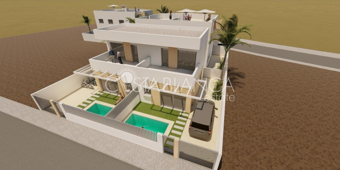 Nowe mieszkania zaledwie 200 metrów od plaży w Puerto de Mazarrón Ekskluzywne życie nad morzem na Costa Cálida Przedstawiamy nową inwestycję mieszkaniową z nowoczesnymi domami w Puerto de Mazarrón, położoną zaledwie 200 metrów od pięknej plaży Playa Negra. Położona w jednej z najbardziej pożądanych nadmorskich lokalizacji regionu Murcji, inwestycja ta stanowi wyjątkową okazję do cieszenia się śródziemnomorskim stylem życia w pobliżu morza, niezbędnych usług i naturalnego środowiska. Puerto de Mazarrón słynie z imponujących plaż, krystalicznie czystej wody, uroczej przystani jachtowej i relaksującej atmosfery. Dzięki doskonałym usługom, możliwościom spędzania wolnego czasu na świeżym powietrzu i ciepłemu klimatowi przez cały rok, jest to idealne miejsce zarówno do życia, jak i spędzania wakacji. Nowoczesny design i funkcjonalny rozkład pomieszczeń Ta ekskluzywna inwestycja składa się z zaledwie 10 domów, z których dostępne są 2 bliźniacze, każdy z 2 sypialniami i 2 łazienkami. Dom, rozmieszczony na 2 piętrach, posiada salon z kuchnią na parterze, sypialnię i łazienkę, z dostępem do prywatnego tarasu z miejscem parkingowym i możliwością zainstalowania prywatnego basenu za dodatkową opłatą. Schody prowadzą na piętro, gdzie znajduje się główna sypialnia z łazienką i dostępem do odkrytego tarasu o powierzchni 16 m2, na którym można opalać się i podziwiać wspaniałe widoki na morze. Mieszkania są tak zaprojektowane, aby maksymalnie wykorzystać naturalne światło, z otwartymi przestrzeniami, dużymi oknami i najwyższej jakości wykończeniami. Wysokiej jakości specyfikacje Każda nieruchomość obejmuje: Wzmocnione drzwi wejściowe. Instalacja pod klimatyzację kanałową. Łazienki z kabinami prysznicowymi. Ciepła woda z aerotermii. Elektryczne rolety w sypialniach. Zewnętrzna stolarka aluminiowa z przegrodą termiczną i podwójnymi szybami. Ta społeczność mieszkaniowa oferuje bezpieczne, rodzinne i stabilne otoczenie, w niewielkiej odległości od supermarketów, szkół, placówek medycznych, parków i plaży. Doskonała lokalizacja w Puerto de Mazarrón Odległości do najważniejszych punktów Playa Negra 0,2 km Port jachtowy Mazarrón 2 km Centrum handlowe Mazarrón Park 5 km Kartagena 35 km Murcja 70 km Lotnisko Murcia Corvera 45 km Pola golfowe Camposol i Hacienda del Álamo 25-35 km Ciesz się sportami wodnymi, wędrówkami i jazdą na rowerze w pobliskiej Sierra de las Moreras i odkryj najlepsze cechy stylu życia na Costa Cálida. Nie przegap okazji, aby stać się właścicielem nowo wybudowanej nieruchomości położonej zaledwie kilka kroków od plaży w Puerto de Mazarrón. Skontaktuj się z nami już dziś, aby poznać dostępność, szczegóły i umówić się na wizytę.