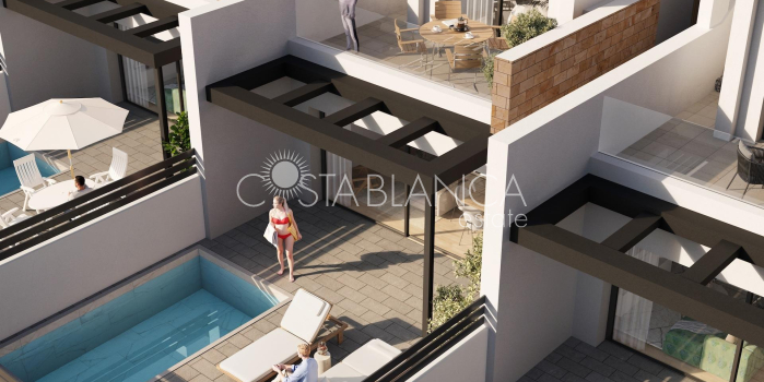 Nowe domy w stylu skandynawskim w Aguas Nuevas Torrevieja Ekskluzywna nowa inwestycja mieszkaniowa Witamy w tym ekscytującym nowym projekcie mieszkaniowym zlokalizowanym w Aguas Nuevas, jednej z najbardziej pożądanych dzielnic Torrevieja. Ta nowoczesna inwestycja oferuje łącznie 31 domów, w tym 16 stylowych apartamentów i 15 przestronnych willi, wszystkie zaprojektowane z wysokiej jakości materiałów i rozkładów dostosowanych do współczesnego stylu życia w regionie śródziemnomorskim. Projekt łączy w sobie komfort, design i doskonałą lokalizację w pobliżu morza i wszystkich codziennych usług. Inspirowany stylem skandynawskim design i naturalne światło Domy inspirowane są architekturą skandynawską, charakteryzują się otwartymi wnętrzami, czystymi liniami i dużymi oknami, które zalewają każdą przestrzeń naturalnym światłem. Taki projekt tworzy jasne, przestronne i przytulne domy z silnym poczuciem przestrzeni i komfortu, idealne zarówno do stałego zamieszkania, jak i spędzania wakacji na Costa Blanca. Nowoczesne apartamenty z prywatnymi obszarami zewnętrznymi Apartamenty oferują 2 sypialnie i 2 łazienki, w tym główną sypialnię z łazienką. Apartamenty na parterze mają prywatne ogrody, a apartamenty na środkowych piętrach i penthouse'y mają duże tarasy, idealne do spożywania posiłków na świeżym powietrzu i relaksu. Wszystkie bloki mieszkalne są wyposażone w windy, zapewniające komfort i dostępność dla wszystkich mieszkańców. Przestronne wille z prywatnym basenem Wille oferują 3 sypialnie i 3 łazienki rozmieszczone na dwóch piętrach oraz prywatne solarium. Każda willa posiada prywatny basen i ogrzewanie podłogowe zasilane energią aerotermiczną, zapewniające komfort i energooszczędność przez cały rok. Domy te są idealne dla osób poszukujących prywatności, przestrzeni i wysokiego standardu życia w pobliżu plaży. Wysokiej jakości wyposażenie i pomieszczenia wspólne Wszystkie domy wyposażone są w elektryczne rolety, pancerne drzwi wejściowe, w pełni wyposażone łazienki z meblami, lustrem i elektrycznym wieszakiem na ręczniki, system aerotermiczny do podgrzewania wody, w pełni zainstalowaną klimatyzację kanałową, prywatny parking i pakiet oświetlenia wewnętrznego. Pomieszczenia wspólne obejmują piękny basen, w pełni wyposażoną siłownię oraz wygodne miejsca parkingowe dla samochodów i rowerów, zachęcające do aktywnego i relaksującego stylu życia. Doskonała lokalizacja w Torrevieja Aguas Nuevas to dobrze rozwinięta dzielnica mieszkaniowa znana z doskonałej infrastruktury, supermarketów, restauracji i bliskości wybrzeża. Plaża znajduje się zaledwie 0,8 km od hotelu, a tętniące życiem centrum Torrevieja z promenadą, mariną i możliwościami spędzania wolnego czasu jest oddalone o zaledwie kilka minut jazdy samochodem lub autobusem. Okolica cieszy się zdrowym klimatem śródziemnomorskim i jest otoczona naturalnymi przestrzeniami i słonymi jeziorami. Odległości do interesujących miejsc Plaża 0,8 km Przystań jachtowa Torrevieja 3 km Plaża La Mata 2,5 km Park przyrodniczy Las Salinas 2 km Villamartin Golf 10 km Lotnisko w Alicante 42 km Twój nowy dom na Costa Blanca Ta nowa inwestycja w Aguas Nuevas stanowi doskonałą okazję do zakupu wysokiej jakości domu w konkurencyjnej cenie w jednej z najbardziej poszukiwanych lokalizacji w Torrevieja. Skontaktuj się z nami już dziś, aby uzyskać więcej informacji lub umówić się na wizytę i zapewnić sobie nowy dom nad Morzem Śródziemnym.