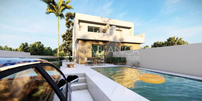RYNEK PIERWOTNY WILLA W ZABUDOWIE BLIŹNIACZEJ W DAYA NUEVA Rynek Pierwotny 2-piętrowa willa w zabudowie bliźniaczej w Daya Nueva. Nowo wybudowana willa z 2 sypialniami, 2 łazienkami, kuchnią na otwartym planie z częścią wypoczynkową, wbudowanymi szafami, prywatnym ogrodem z basenem i miejscem parkingowym. Nieruchomość znajduje się zaledwie kilka minut spacerem od centrum miejscowości z restauracjami, barami i sklepami. Daya Nueva to mała idylliczna wioska otoczona malowniczymi krajobrazami, otoczona gajami pomarańczowymi i cytrynowymi. Znajduje się tu ratusz, letni basen zewnętrzny, kilka barów i restauracji oraz wiele parków rozsianych po obszarach urbanizacji na obrzeżach miejscowości. Plaża Guardarmar oddalona jest o 10 minut jazdy samochodem, a lotnisko w Alicante o 25 minut. Pola golfowe La Marquesa Golf w Ciudad Quesada i La Finca Golf w Algorfa znajdują się w odległości 10 minut jazdy samochodem.