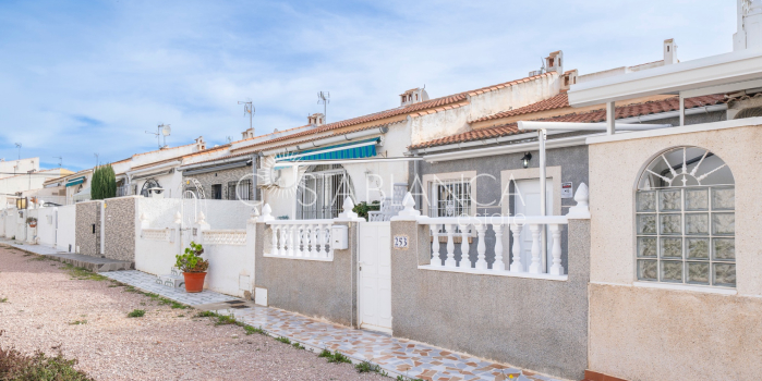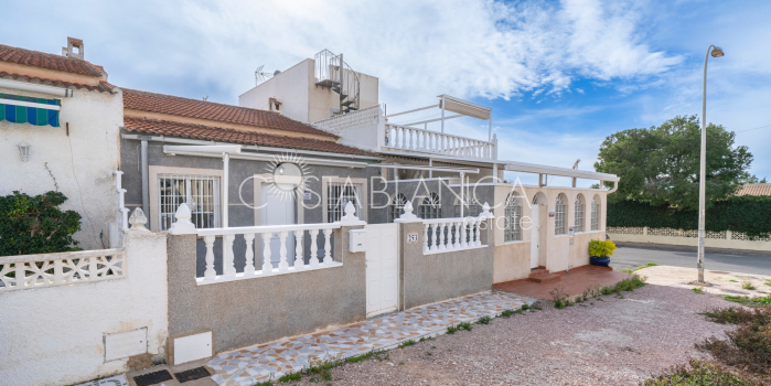 Wyremontowany bungalow na parterze, położony w spokojnej i ugruntowanej dzielnicy El Chaparral – San Luis w Torrevieja, z łatwym dostępem do sklepów, restauracji i wszystkich usług. Blisko rezerwatu przyrody La Mata i około 2 km od plaży. Nieruchomość oferuje 56 m² powierzchni zabudowanej na działce 81 m², wszystko na jednym poziomie. Jest po remoncie i świeżo pomalowana, gotowa do zamieszkania. Układ obejmuje salon z jadalnią i aneksem kuchennym, dwie sypialnie i jedną łazienkę. Na zewnątrz znajduje się prywatny taras o powierzchni 25 m², w pełni wyłożony płytkami i wyposażony w markizę, z dostępem z cichej uliczki pieszej.