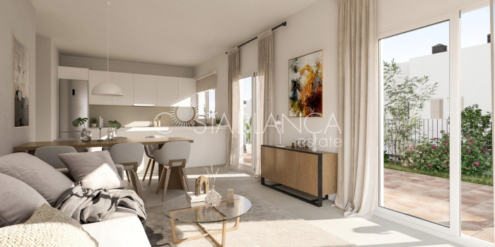 NOWE WILLE W MONFORTE DEL CID Nowe osiedle 54 kamienic i willi w zabudowie bliźniaczej w Monforte del Cid. Przestronne nieruchomości z 3 sypialniami, 2 łazienkami i 1 toaletą. Wszystkie nieruchomości mają prywatny ogród na działce, solarium i prywatny garaż. Domy posiadają pełną aerotermię, system energii odnawialnej, który wykorzystuje zewnętrzną energię środowiskową. Każda nieruchomość została starannie zaprojektowana, aby zapewnić maksymalny komfort i funkcjonalność. Ponadto przestronne wnętrza doskonale komponują się z terenami zewnętrznymi. Wyobraź sobie relaks na własnym tarasie, podziwiając pole golfowe i ciesząc się spokojem, na który zasługujesz. Mieszkańcy tej inwestycji będą mieli wyłączny dostęp do szerokiej gamy najwyższej klasy udogodnień. Ciesz się orzeźwiającymi kąpielami we wspólnym basenie, utrzymuj ciało w formie we w pełni wyposażonej siłowni i ciesz się orzeźwiającą kąpielą. Zanurz się w luksusowym stylu życia i ciesz się spokojem, który może zaoferować tylko Alenda Golf. Te nowoczesne i stylowe bungalowy są strategicznie zlokalizowane w oszałamiającym otoczeniu przyrody, w otoczeniu bujnej roślinności i z panoramicznym widokiem na pole golfowe. Prywatna urbanizacja w pobliżu głównych miast prowincji Alicante, 15 minut jazdy od Elche i Alicante, a także lotniska i najlepszych plaż. Osiedle znajduje się w spokojnej okolicy w pobliżu pola golfowego Alenda w Monforte del Cid.