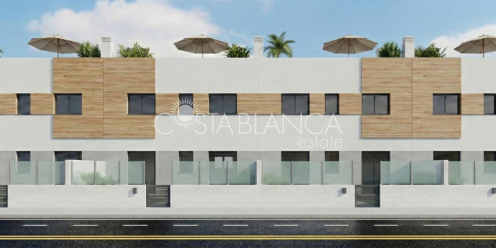 Nowoczesne apartamenty i penthouse'y z solarium w San Javier w pobliżu Mar Menor Doskonała lokalizacja w San Javier, blisko plaży Ta nowa inwestycja mieszkaniowa składająca się z 16 nowoczesnych domów znajduje się w tętniącym życiem mieście San Javier w Murcji, zaledwie 3,5 km od spokojnych wód Mar Menor. Okolica ta znana jest z całorocznego nasłonecznienia, spokojnego stylu życia nad morzem i doskonałych usług. W odległości spaceru znajdują się supermarkety, restauracje, obiekty sportowe i udogodnienia codziennego użytku, co sprawia, że jest to idealne miejsce zarówno do stałego zamieszkania, jak i na wakacyjne wypady. Wybrzeże Morza Śródziemnego znajduje się zaledwie 10 minut jazdy samochodem od kompleksu i oferuje szeroki wybór plaż i nadmorskich promenad. Do wyboru parter z ogrodem lub najwyższe piętro z prywatnym solarium Kupujący mogą wybierać między mieszkaniami na parterze z 3 sypialniami i 2 łazienkami, z których jedna jest łazienką przy sypialni, z tarasem od frontu i prywatnym ogrodem od tyłu z letnią kuchnią. Alternatywnie, mieszkania na najwyższym piętrze oferują 2 sypialnie i 2 łazienki, również z jedną łazienką przy sypialni, tarasem od frontu i dużym prywatnym solarium z letnią kuchnią, idealnym do cieszenia się słońcem przez cały rok. Każdy układ został starannie zaprojektowany, aby zmaksymalizować przestrzeń zewnętrzną i naturalne światło. Atrakcyjne wspólne przestrzenie do relaksu Kompleks mieszkaniowy obejmuje pięknie zagospodarowaną wspólną przestrzeń z basenem i strefą jacuzzi, parkingiem dla rowerów i zielonymi ogrodami, gdzie mieszkańcy mogą się zrelaksować i spotkać w spokojnym otoczeniu. Wysokiej jakości elementy zaprojektowane z myślą o nowoczesnym komforcie Każda nieruchomość została zbudowana zgodnie z wysokimi standardami komfortu i efektywności energetycznej. Zewnętrzna stolarka z antracytowego PVC z przegrodą termiczną i podwójnymi szybami zapewnia doskonałą izolację i ochronę przed słońcem. Kuchnie są w pełni wyposażone w sprzęt AGD. Domy posiadają instalację pod klimatyzację kanałową oraz system aerotermiczny do podgrzewania wody, co zapewnia niższe zużycie energii. Łazienki są wyposażone w szafkę pod umywalkę, lustro i kabinę prysznicową. Każda nieruchomość posiada również jedno przypisane miejsce parkingowe. Doskonała komunikacja i pobliskie atrakcje San Javier oferuje doskonałe połączenia drogowe i łatwy dostęp do kluczowych miejsc w regionie. Plaże Mar Menor 3,5 km Plaże Morza Śródziemnego 10 km Roda Golf i Mar Menor Golf 8 km Marina Los Alcazares 7 km Lotnisko Murcia Corvera 30 km Lotnisko Alicante 75 km Centrum handlowe Zenia Boulevard 30 km Ciesz się śródziemnomorskim stylem życia w San Javier Ta inwestycja oferuje idealne połączenie lokalizacji, komfortu i życia na świeżym powietrzu w pobliżu morza i pól golfowych. Skontaktuj się z nami już dziś, aby uzyskać więcej informacji lub umówić się na wizytę w swoim przyszłym domu w San Javier.