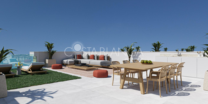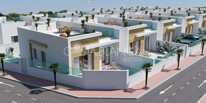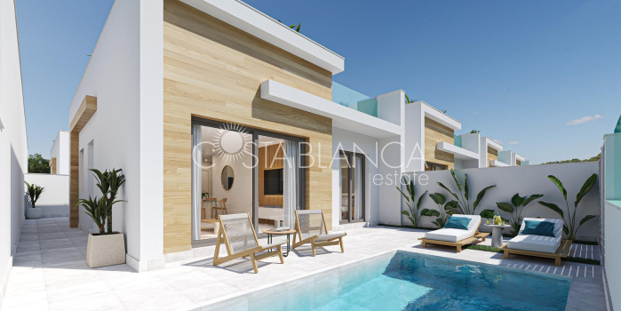 Nowoczesne parterowe wille z prywatnym basenem i solarium w El Jimenado w Murcji Nowoczesne śródziemnomorskie życie z prywatnością i komfortem Ta ekskluzywna inwestycja składająca się z 6 niezależnych willi została zaprojektowana tak, aby zapewnić maksymalną prywatność, komfort i możliwość spędzania czasu na świeżym powietrzu. Położone w El Jimenado, spokojnej dzielnicy mieszkalnej należącej do Torrepacheco w regionie Murcji, te eleganckie parterowe domy łączą w sobie nowoczesny design z relaksującym śródziemnomorskim stylem życia. Każda willa znajduje się na własnej działce z prywatnym ogrodem, basenem, dużymi tarasami i parkingiem, co pozwala cieszyć się słońcem i życiem na świeżym powietrzu przez cały rok. El Jimenado słynie z spokojnej okolicy, a jednocześnie jest strategicznie położone w pobliżu pól golfowych, plaż i niezbędnych usług, co czyni je idealnym miejscem zarówno do stałego zamieszkania, jak i spędzania wakacji. Otwarta przestrzeń i wysokiej jakości wyposażenie Wille zostały starannie zaprojektowane z otwartym planem, gdzie w pełni wyposażona kuchnia płynnie łączy się z jasnym salonem i jadalnią. Duże okna łączą wnętrza z tarasami i basenem, tworząc naturalny przepływ między życiem wewnątrz i na zewnątrz. Każda nieruchomość obejmuje: W pełni wyposażoną kuchnię ze sprzętem AGD Łazienki z lustrem, oświetleniem i kabinami prysznicowymi Prywatny basen Miejsce parkingowe na działce Oświetlenie wewnętrzne i zewnętrzne z wyjątkiem lamp dekoracyjnych Preinstalacja klimatyzacji kanałowej Letnia kuchnia na prywatnym solarium Parterowa konstrukcja zapewnia komfort i dostępność, a przestronne solarium na dachu stanowi dodatkową przestrzeń do relaksu, rozrywki i cieszenia się słońcem przez cały rok. Spokojna lokalizacja w pobliżu pola golfowego i wybrzeża El Jimenado oferuje spokojne otoczenie mieszkalne, otoczone otwartymi krajobrazami i kilkoma renomowanymi ośrodkami golfowymi. Jednocześnie jest dobrze skomunikowany z głównymi miastami regionu Mar Menor i wybrzeżem Morza Śródziemnego. Plaże Mar Menor 18 km Plaże Morza Śródziemnego 25 km Roda Golf 9 km Mar Menor Golf Resort 10 km La Serena Golf 15 km Marina Los Alcazares 18 km Lotnisko Murcia Corvera 22 km Lotnisko Alicante 95 km Miasto Cartagena 30 km Idealny wybór dla stylu życia i inwestycji Dzięki nowoczesnemu projektowi, prywatności i doskonałej lokalizacji, te wille są idealne dla osób poszukujących spokojnego domu w pobliżu pól golfowych i morza, a także dla nabywców poszukujących inwestycji o wysokim potencjale wynajmu w regionie Murcji. Skontaktuj się z nami już dziś, aby otrzymać więcej informacji lub umówić się na wizytę w tych pięknych, nowo wybudowanych willach w El Jimenado.
