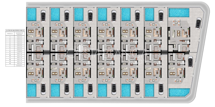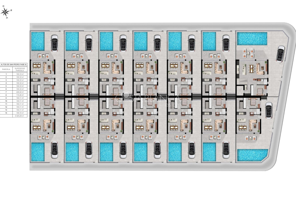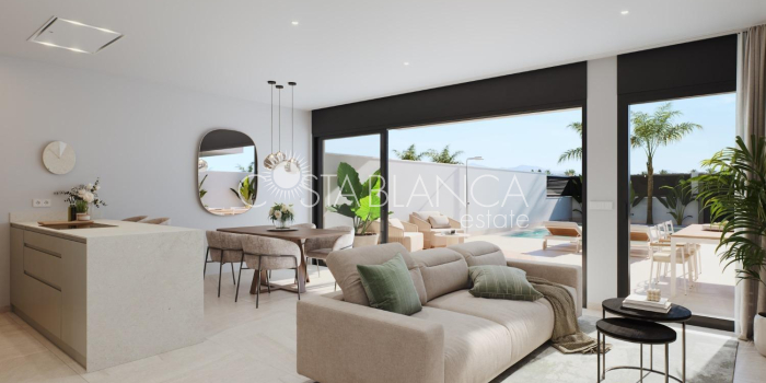 Nowoczesne, nowo wybudowane wille z prywatnym basenem w San Pedro del Pinatar Nowoczesny design i najwyższa jakość życia Odkryj trzecią fazę tego ekskluzywnego projektu mieszkaniowego w San Pedro del Pinatar, gdzie nowoczesna architektura łączy się z komfortem i funkcjonalnością. Te 14 bliźniaczych willi zostało zaprojektowanych w minimalistycznym stylu i wykończonych z wykorzystaniem materiałów najwyższej jakości, oferując eleganckie i wyrafinowane warunki życia na wybrzeżu Costa Calida. Każda willa posiada 3-4 przestronne sypialnie, 3 łazienki, prywatny basen, tarasy i prywatny ogród, tworząc idealne środowisko dla prywatności, relaksu i śródziemnomorskiego życia na świeżym powietrzu. San Pedro del Pinatar jest jednym z najbardziej poszukiwanych miast w regionie Mar Menor, znanym z naturalnych słonych jezior, spokojnych plaż i przyjemnego klimatu przez cały rok, co czyni je idealnym miejscem zarówno do stałego zamieszkania, jak i spędzania wakacji. Otwarty plan zaprojektowany z myślą o nowoczesnym stylu życia Wille są starannie rozplanowane, z otwartą kuchnią połączoną z jasnym salonem i jadalnią. Duże okna w salonie z roletami elektrycznymi zapewniają bezpośredni dostęp do basenu i pozwalają na wpuszczenie naturalnego światła do wnętrz. Najważniejsze cechy każdej nieruchomości to: 3 sypialnie z wbudowanymi szafami 3 w pełni wyposażone łazienki z toaletkami, lustrami i kabinami prysznicowymi Umeblowana kuchnia z urządzeniami Balay Prywatny basen i ogród Oświetlenie LED wewnątrz i na zewnątrz Tarasy na pierwszym piętrze i opcjonalne solarium na dachu Miejsce parkingowe na działce System aerotermiczny do podgrzewania wody Panele fotowoltaiczne poprawiające efektywność energetyczną Wstępna instalacja klimatyzacji kanałowej Domy te zostały zaprojektowane tak, aby łączyć w sobie zrównoważony rozwój, komfort i nowoczesny styl w każdym szczególe. Doskonała lokalizacja w pobliżu plaż i usług Położone między Mar Menor a Morzem Śródziemnym, San Pedro del Pinatar jest rajem dla miłośników plaży i sportów wodnych. Miasto oferuje tętniącą życiem marinę, naturalne kąpiele błotne, sklepy, restauracje, obiekty sportowe i doskonałe usługi przez cały rok. Plaże Mar Menor 3 km Plaże Morza Śródziemnego 5 km Centrum handlowe Dos Mares 5 km Lo Romero Golf 10 km Roda Golf 15 km Lotnisko Murcia Corvera 30 km Lotnisko Alicante 80 km Marina San Pedro 4 km Idealny dom do życia i inwestycji Dzięki swojej lokalizacji, projektowi i energooszczędnym rozwiązaniom, te wille stanowią doskonałą okazję jako stałe miejsce zamieszkania, dom wakacyjny lub inwestycja w wynajem w jednej z najbardziej atrakcyjnych okolicy Costa Calida. Skontaktuj się z nami już dziś, aby uzyskać więcej informacji lub umówić się na oglądanie i zabezpieczyć swoją nową willę w San Pedro del Pinatar.