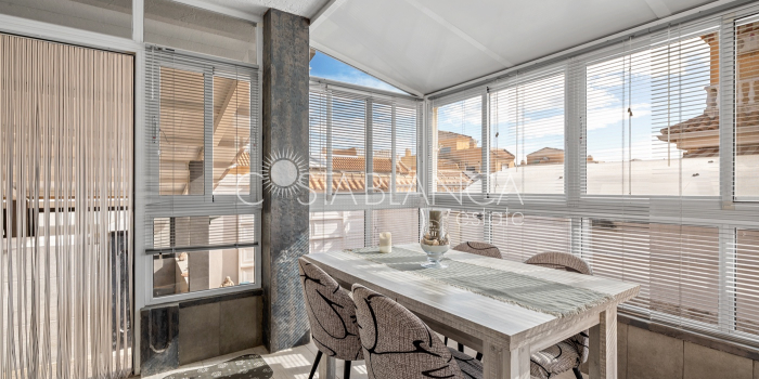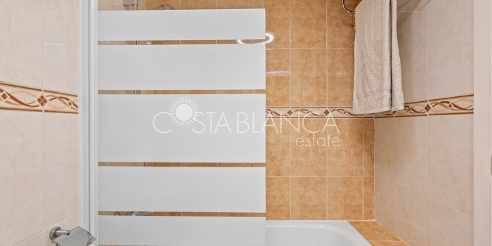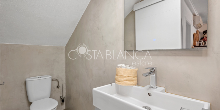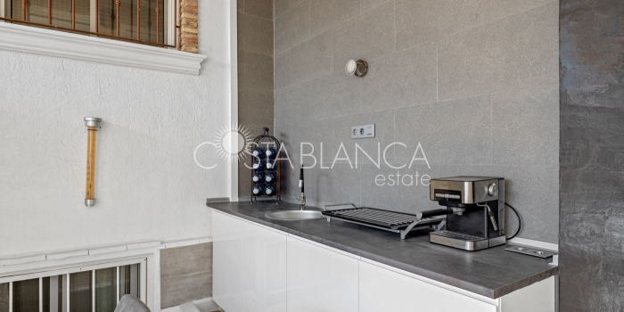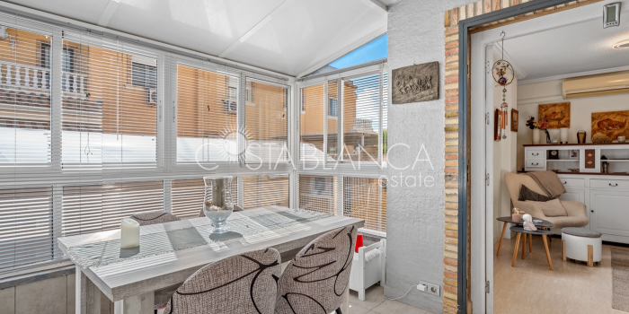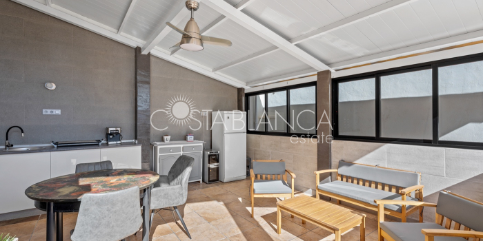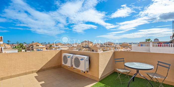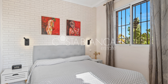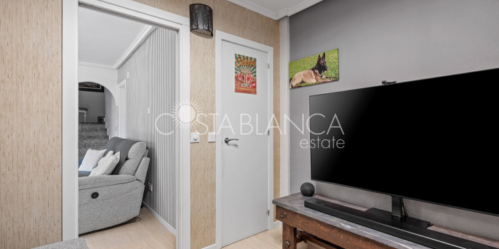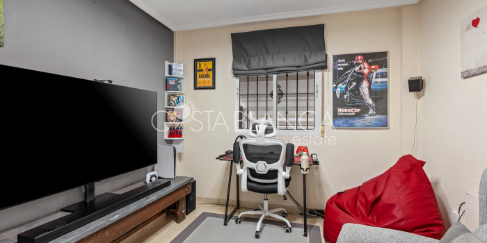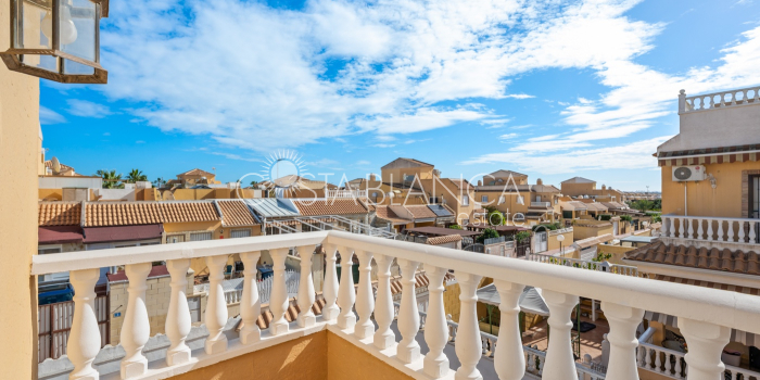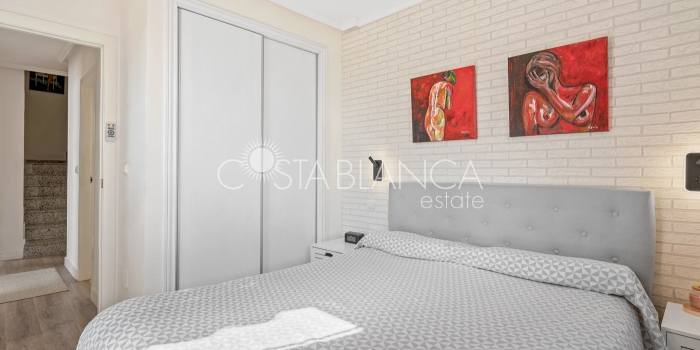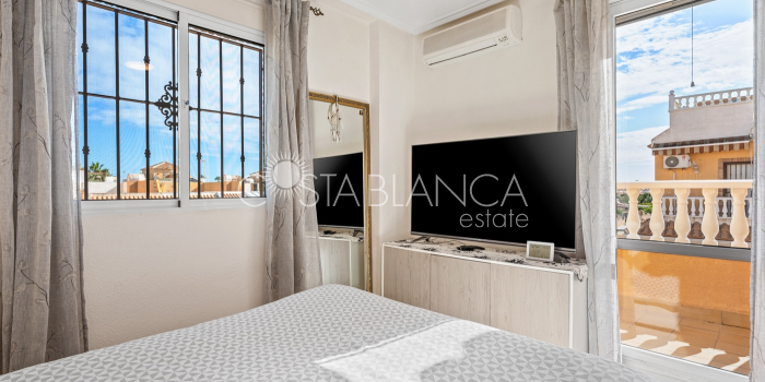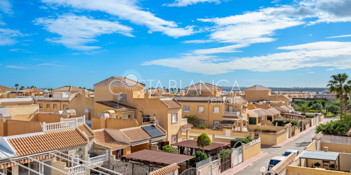 Fantastyczny, dwupiętrowy dom z solarium, zaprojektowany z myślą o komforcie, przestronności i całorocznym użytkowaniu. Po wejściu znajduje się przytulny, zadaszony ganek prowadzący do jasnego salonu. Na parterze, po prawej stronie, znajduje się sypialnia z garderobą, łazienką z prysznicem oraz w pełni wyposażoną, oddzielną kuchnią. Na piętrze znajdują się trzy sypialnie: duża sypialnia dwuosobowa z prywatnym tarasem, klimatyzacją i wentylatorem sufitowym oraz dwie sypialnie jednoosobowe, idealne dla rodziny, gości lub biura. Z tego piętra można wyjść na spektakularne solarium, idealne miejsce do relaksu, korzystania ze słońca przez cały rok i korzystania z jacuzzi. Nieruchomość posiada również całkowicie odnowioną piwnicę z salonem, sypialnią i łazienką z prysznicem, wyposażoną w klimatyzację i wentylację. Piwnica idealnie nadaje się na apartament gościnny, niezależne mieszkanie lub strefę wypoczynkową. Cały dom wyposażony jest w okna z podwójnymi szybami, wentylatory sufitowe i klimatyzację, co zapewnia komfort o każdej porze roku. Z boku domu znajduje się praktyczne pomieszczenie gospodarcze. Zewnętrzna część domu to kolejna wielka atrakcja: ogród z kuchnią letnią/zimową, idealny na spotkania i posiłki na świeżym powietrzu. Działka umożliwia parkowanie dwóch samochodów, a kompleks posiada wspólny basen. Uniwersalny, w pełni wyposażony dom, gotowy do zamieszkania, idealny zarówno na stałe miejsce zamieszkania, jak i jako inwestycja.