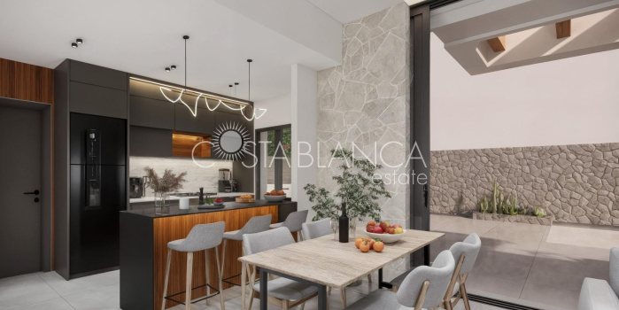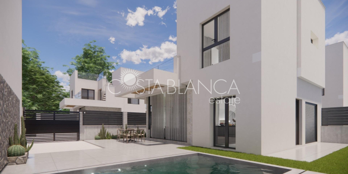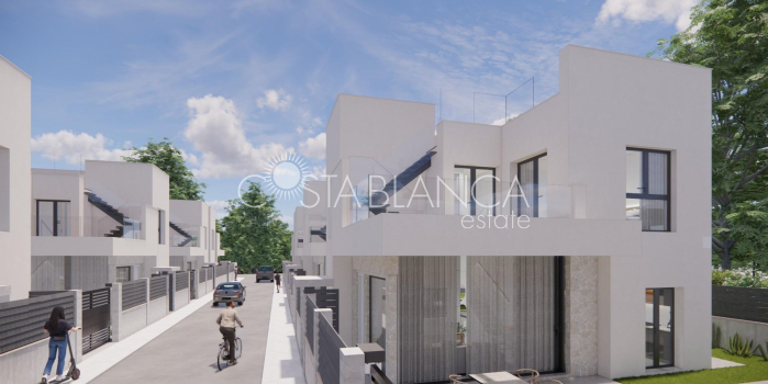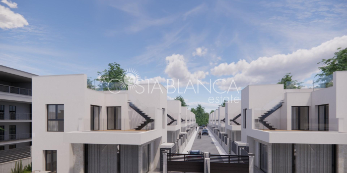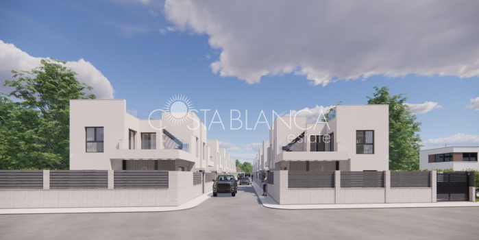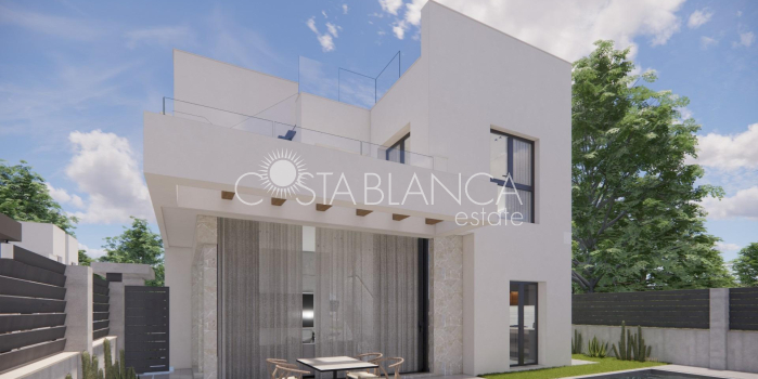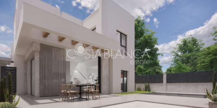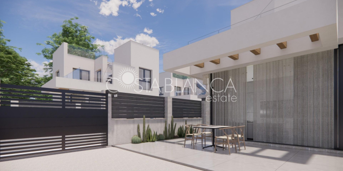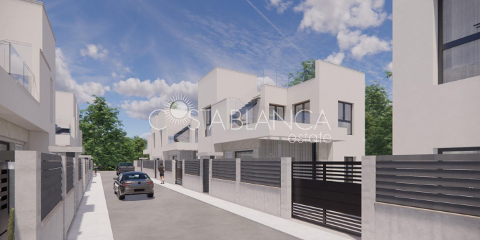 Nowoczesne, nowo wybudowane wille w La Herrada Los Montesinos z prywatnym basenem Ekskluzywny projekt mieszkaniowy w spokojnej okolicy Położona w prestiżowej dzielnicy mieszkaniowej La Herrada w Los Montesinos, ta ekskluzywna inwestycja obejmująca 16 nowoczesnych willi zapewnia prywatność, komfort i doskonałą jakość życia. La Herrada słynie z spokojnej atmosfery mieszkaniowej, bliskości codziennych udogodnień i doskonałej lokalizacji pomiędzy słynnymi solniskami Torrevieja i La Mata. Jest to idealne miejsce dla osób poszukujących relaksującego i zdrowego śródziemnomorskiego stylu życia na południu Costa Blanca. Nowoczesny design z optymalną przestrzenią wewnętrzną Każda willa ma 130 m² dobrze rozplanowanej powierzchni mieszkalnej na dwóch piętrach, zaprojektowanej tak, aby maksymalnie wykorzystać naturalne światło i funkcjonalność. Nieruchomości, zbudowane na działkach o powierzchni od 250 m², oferują przestronne obszary zewnętrzne, idealne do opalania się, rozrywki lub relaksu przy prywatnym basenie. Wygodny układ na dwóch piętrach Na parterze znajduje się otwarty salon z w pełni zintegrowaną kuchnią i bezpośrednim dostępem do ogrodu i basenu. Na tym piętrze znajdują się również dwie sypialnie, w pełni wyposażona łazienka i praktyczna pralnia. Na piętrze znajdują się dwie przestronne sypialnie, każda z własną łazienką, z których jedna jest łazienką przy sypialni. Obie sypialnie mają dostęp do otwartego prywatnego tarasu o powierzchni 28 m². Dla tych, którzy chcą mieć jeszcze więcej przestrzeni na świeżym powietrzu, dostępne jest opcjonalne solarium na dachu, dostępne za dodatkową opłatą. Wysokiej jakości wykończenia i nowoczesne wyposażenie Wille wyposażone są w wysokiej jakości elementy wykończeniowe, takie jak meble łazienkowe, lustra, kabiny prysznicowe i ogrzewanie podłogowe we wszystkich łazienkach. Istnieje możliwość instalacji klimatyzacji kanałowej, bramy wjazdowej z napędem elektrycznym, prywatnego parkingu na działce oraz ogrodzonego dostępu do osiedla przez prywatną drogę wewnętrzną. Doskonała lokalizacja w pobliżu kluczowych udogodnień i atrakcji Plaże Guardamar i Torrevieja w odległości 9 km Pola golfowe La Marquesa Golf, La Finca Golf i Vistabella Golf w odległości mniej niż 5 km Lotnisko w Alicante w odległości 29 km Parki przyrodnicze, solniska, trasy rowerowe i szlaki turystyczne w pobliżu Komfortowe życie w samym sercu Costa Blanca Te nowo wybudowane wille w Los Montesinos oferują idealne połączenie nowoczesnego komfortu, naturalnego otoczenia i doskonałej dostępności. Niezależnie od tego, czy szukasz stałego miejsca zamieszkania, czy domu wakacyjnego, ta inwestycja oferuje wszystko, czego potrzebujesz, aby cieszyć się spokojnym i komfortowym śródziemnomorskim stylem życia. Skontaktuj się z nami już dziś, aby umówić się na oglądanie nieruchomości i zapewnić sobie nowy dom w La Herrada.
