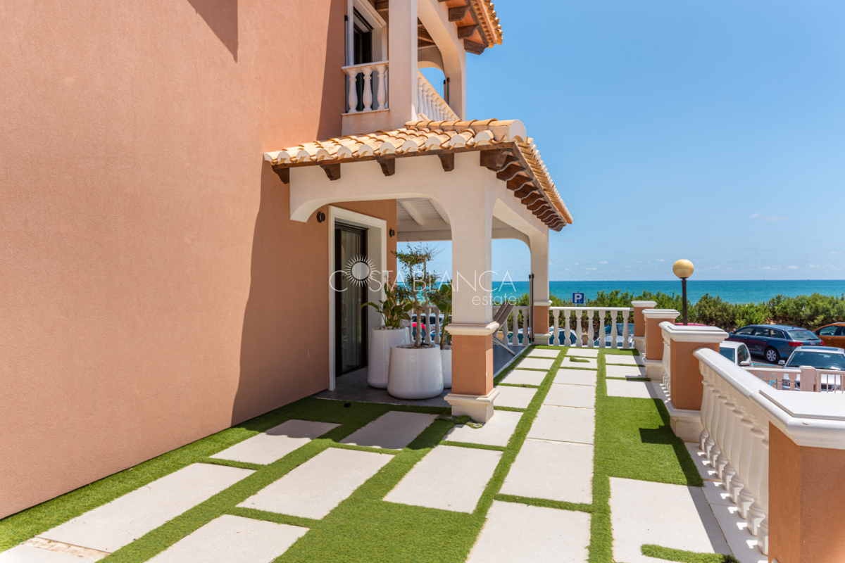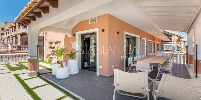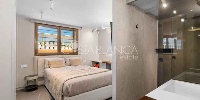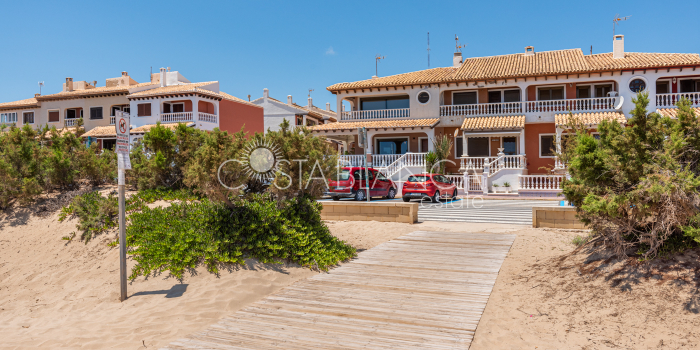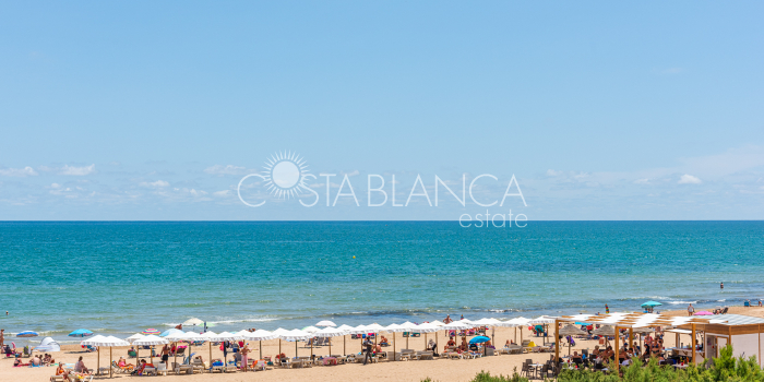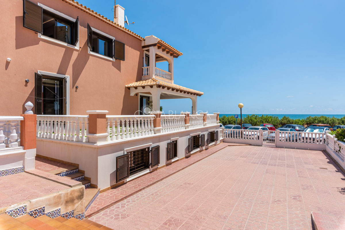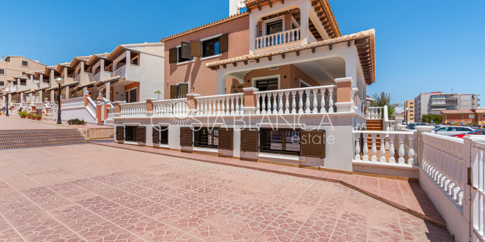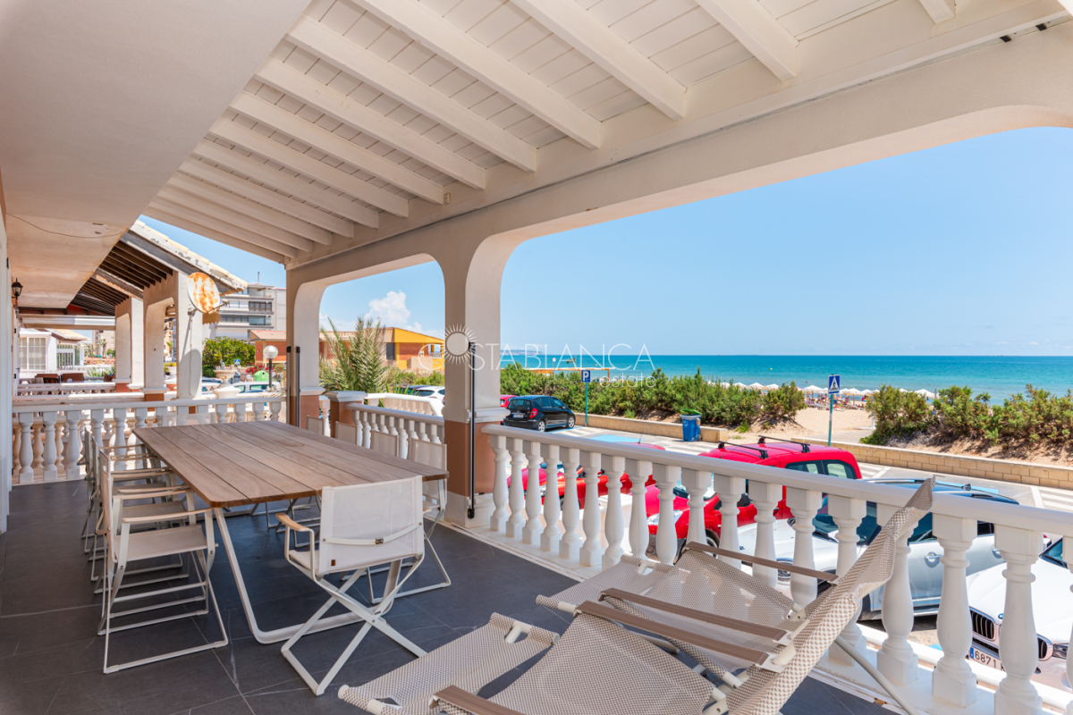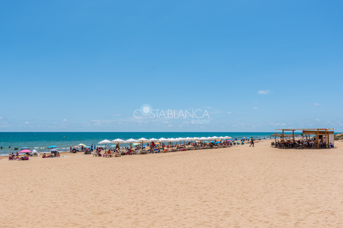 Niesamowita luksusowa kamienica z widokiem na Morze Śródziemne Ta nieruchomość, niedawno odnowiona w 2021 roku, oferuje panoramiczne widoki na jedną z najpiękniejszych plaż na Costa Blanca, Playa de la Roqueta w Guardamar. Del Segura. Jest to otwarta plaża, blisko plaży Centro i plaży Moncayo. Dom jest częścią kompleksu mieszkalnego (Residencial Benamor) i charakteryzuje się doskonałą orientacją, która pozwala w pełni wykorzystać śródziemnomorski klimat. Wykończenia domu są wybierane z wielką delikatnością, z wyposażeniem prestiżowych marek, które nadaje domowi szczególne poczucie jakości i designu. Nieruchomość sprzedawana jest z pełnym umeblowaniem, łącznie ze sprzętem elektrycznym. Wszystkie meble i dekoracje domu pochodzą od producentów i artystów o międzynarodowej renomie. W piwnicy nieruchomości znajduje się przestronny salon, siłownia, 3 sypialnie, 2 łazienki oraz pralnia z dużą ilością miejsca do przechowywania. Na parterze znajdziemy jadalnię na dwóch poziomach, z otwartym widokiem na morze. Dodatkowo na tym piętrze znajdziemy kuchnię amerykańską o włoskim designie, w pełni wykończoną i wyposażoną w sprzęty najlepszych marek. Na pierwszym piętrze domu znajduje się główny pokój z łazienką i balkonem, a także 2 dodatkowe sypialnie i 1 łazienka. Dom posiada również niesamowity zadaszony taras z widokiem na morze i tylne patio o powierzchni 42 m2 skierowane na zachód