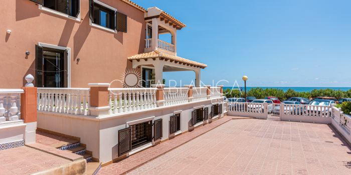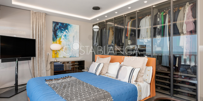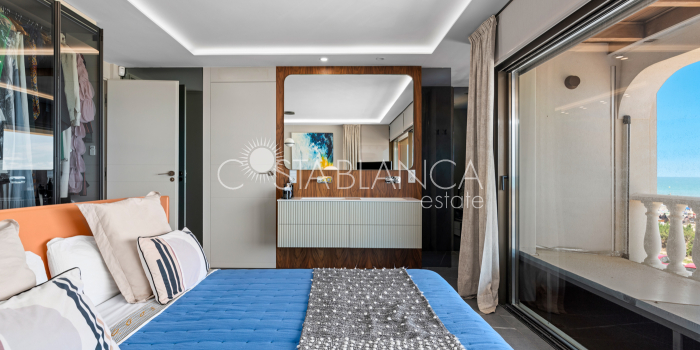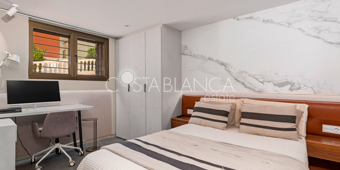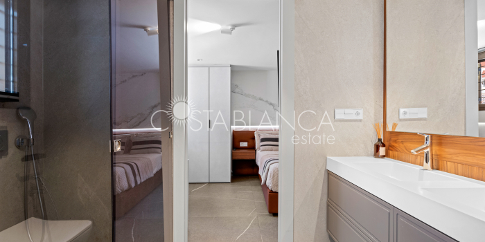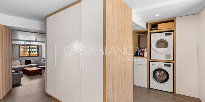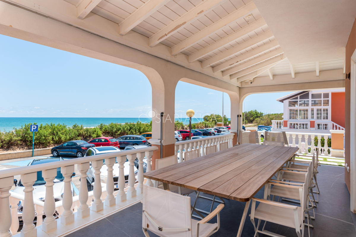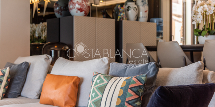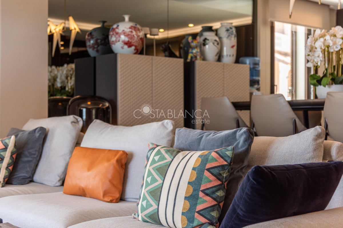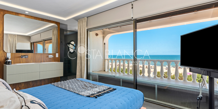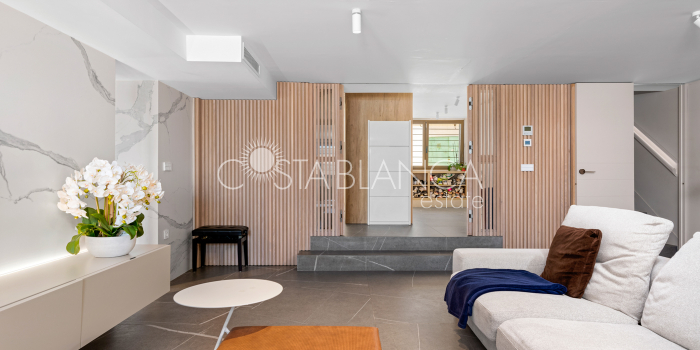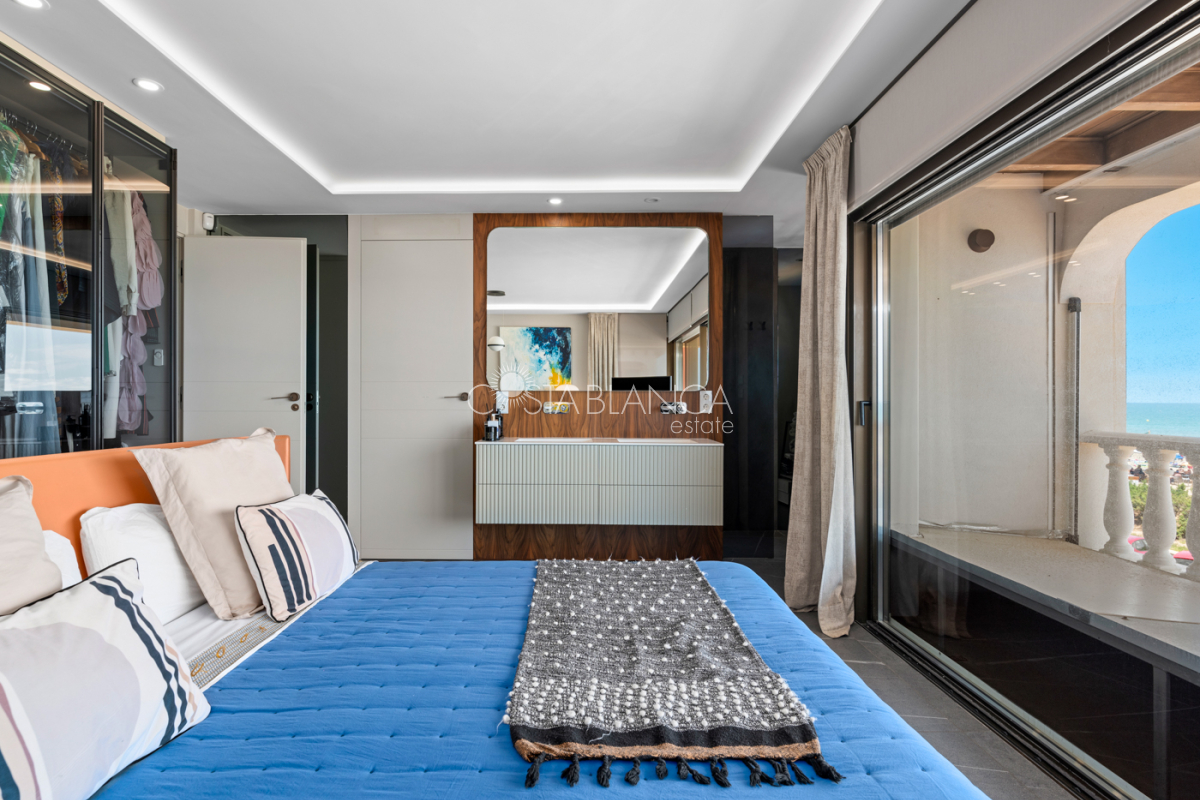 Niesamowita luksusowa kamienica z widokiem na Morze Śródziemne Ta nieruchomość, niedawno odnowiona w 2021 roku, oferuje panoramiczne widoki na jedną z najpiękniejszych plaż na Costa Blanca, Playa de la Roqueta w Guardamar. Del Segura. Jest to otwarta plaża, blisko plaży Centro i plaży Moncayo. Dom jest częścią kompleksu mieszkalnego (Residencial Benamor) i charakteryzuje się doskonałą orientacją, która pozwala w pełni wykorzystać śródziemnomorski klimat. Wykończenia domu są wybierane z wielką delikatnością, z wyposażeniem prestiżowych marek, które nadaje domowi szczególne poczucie jakości i designu. Nieruchomość sprzedawana jest z pełnym umeblowaniem, łącznie ze sprzętem elektrycznym. Wszystkie meble i dekoracje domu pochodzą od producentów i artystów o międzynarodowej renomie. W piwnicy nieruchomości znajduje się przestronny salon, siłownia, 3 sypialnie, 2 łazienki oraz pralnia z dużą ilością miejsca do przechowywania. Na parterze znajdziemy jadalnię na dwóch poziomach, z otwartym widokiem na morze. Dodatkowo na tym piętrze znajdziemy kuchnię amerykańską o włoskim designie, w pełni wykończoną i wyposażoną w sprzęty najlepszych marek. Na pierwszym piętrze domu znajduje się główny pokój z łazienką i balkonem, a także 2 dodatkowe sypialnie i 1 łazienka. Dom posiada również niesamowity zadaszony taras z widokiem na morze i tylne patio o powierzchni 42 m2 skierowane na zachód