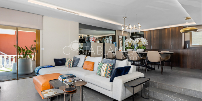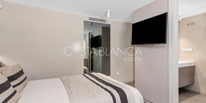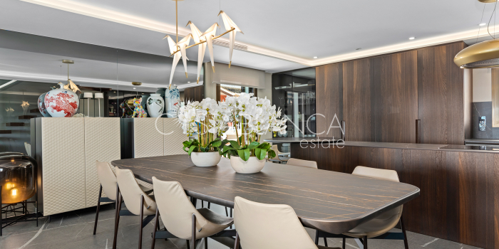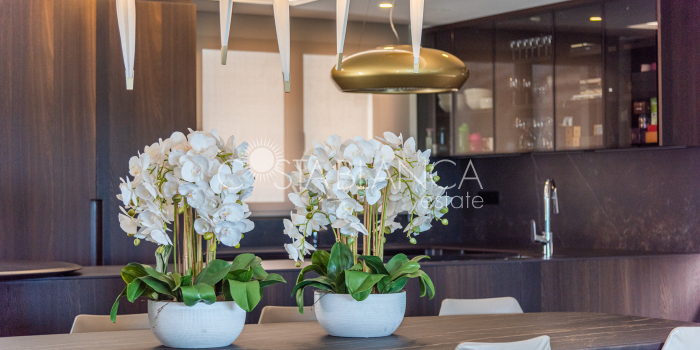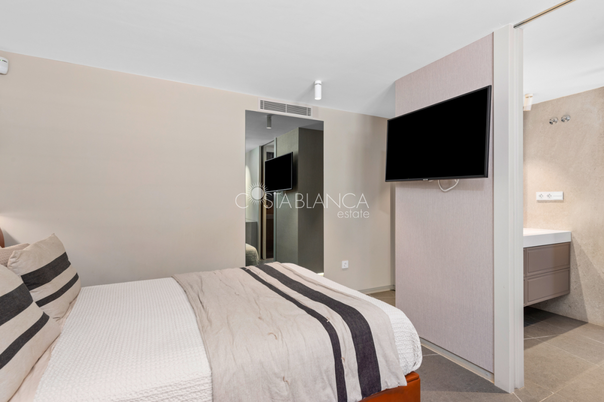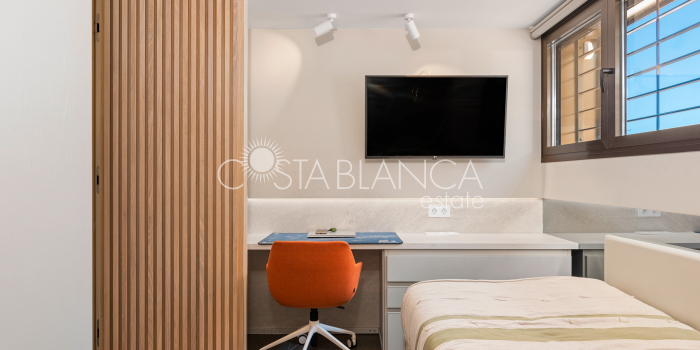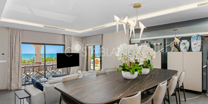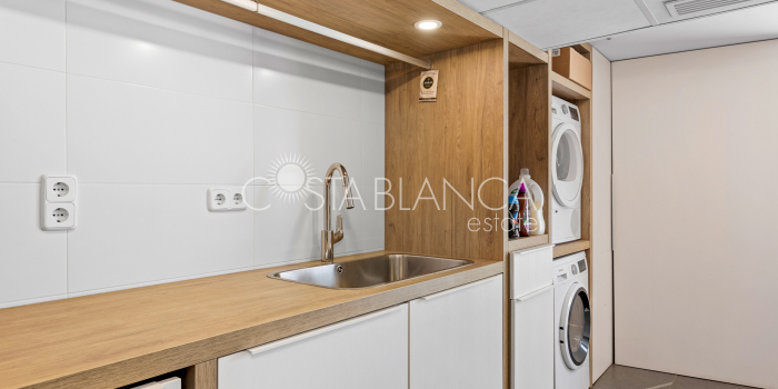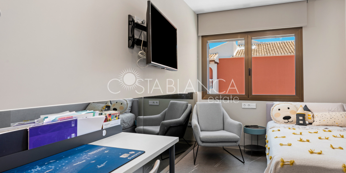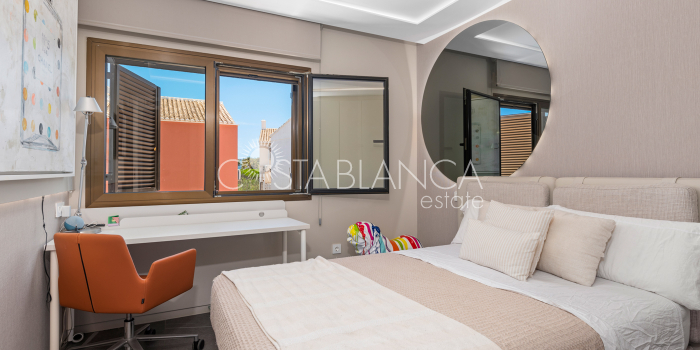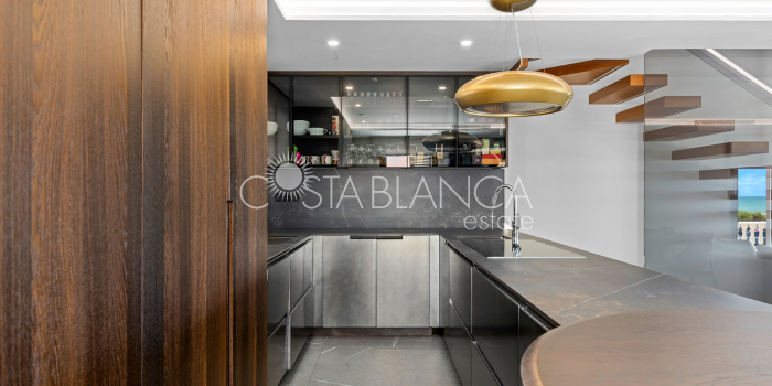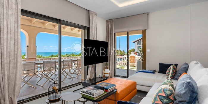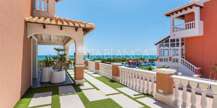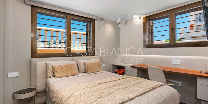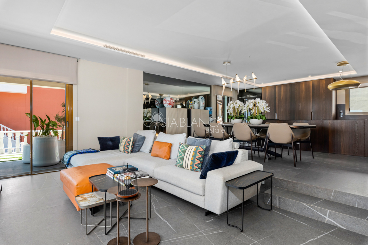 Niesamowita luksusowa kamienica z widokiem na Morze Śródziemne Ta nieruchomość, niedawno odnowiona w 2021 roku, oferuje panoramiczne widoki na jedną z najpiękniejszych plaż na Costa Blanca, Playa de la Roqueta w Guardamar. Del Segura. Jest to otwarta plaża, blisko plaży Centro i plaży Moncayo. Dom jest częścią kompleksu mieszkalnego (Residencial Benamor) i charakteryzuje się doskonałą orientacją, która pozwala w pełni wykorzystać śródziemnomorski klimat. Wykończenia domu są wybierane z wielką delikatnością, z wyposażeniem prestiżowych marek, które nadaje domowi szczególne poczucie jakości i designu. Nieruchomość sprzedawana jest z pełnym umeblowaniem, łącznie ze sprzętem elektrycznym. Wszystkie meble i dekoracje domu pochodzą od producentów i artystów o międzynarodowej renomie. W piwnicy nieruchomości znajduje się przestronny salon, siłownia, 3 sypialnie, 2 łazienki oraz pralnia z dużą ilością miejsca do przechowywania. Na parterze znajdziemy jadalnię na dwóch poziomach, z otwartym widokiem na morze. Dodatkowo na tym piętrze znajdziemy kuchnię amerykańską o włoskim designie, w pełni wykończoną i wyposażoną w sprzęty najlepszych marek. Na pierwszym piętrze domu znajduje się główny pokój z łazienką i balkonem, a także 2 dodatkowe sypialnie i 1 łazienka. Dom posiada również niesamowity zadaszony taras z widokiem na morze i tylne patio o powierzchni 42 m2 skierowane na zachód