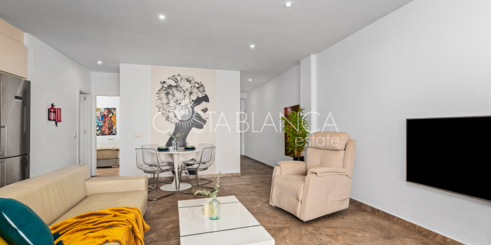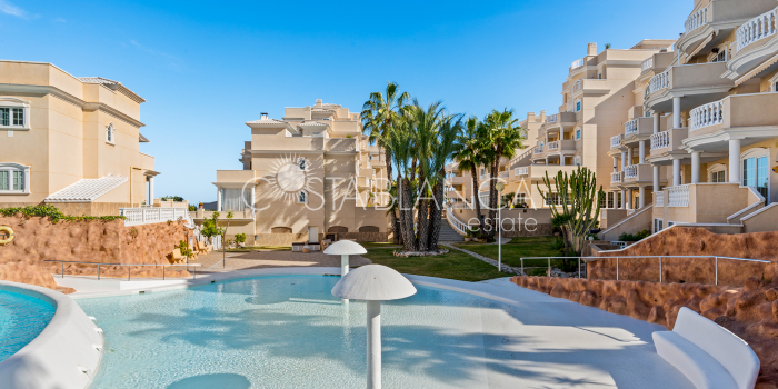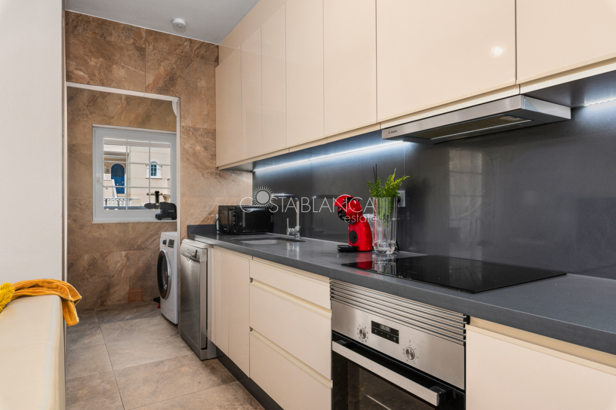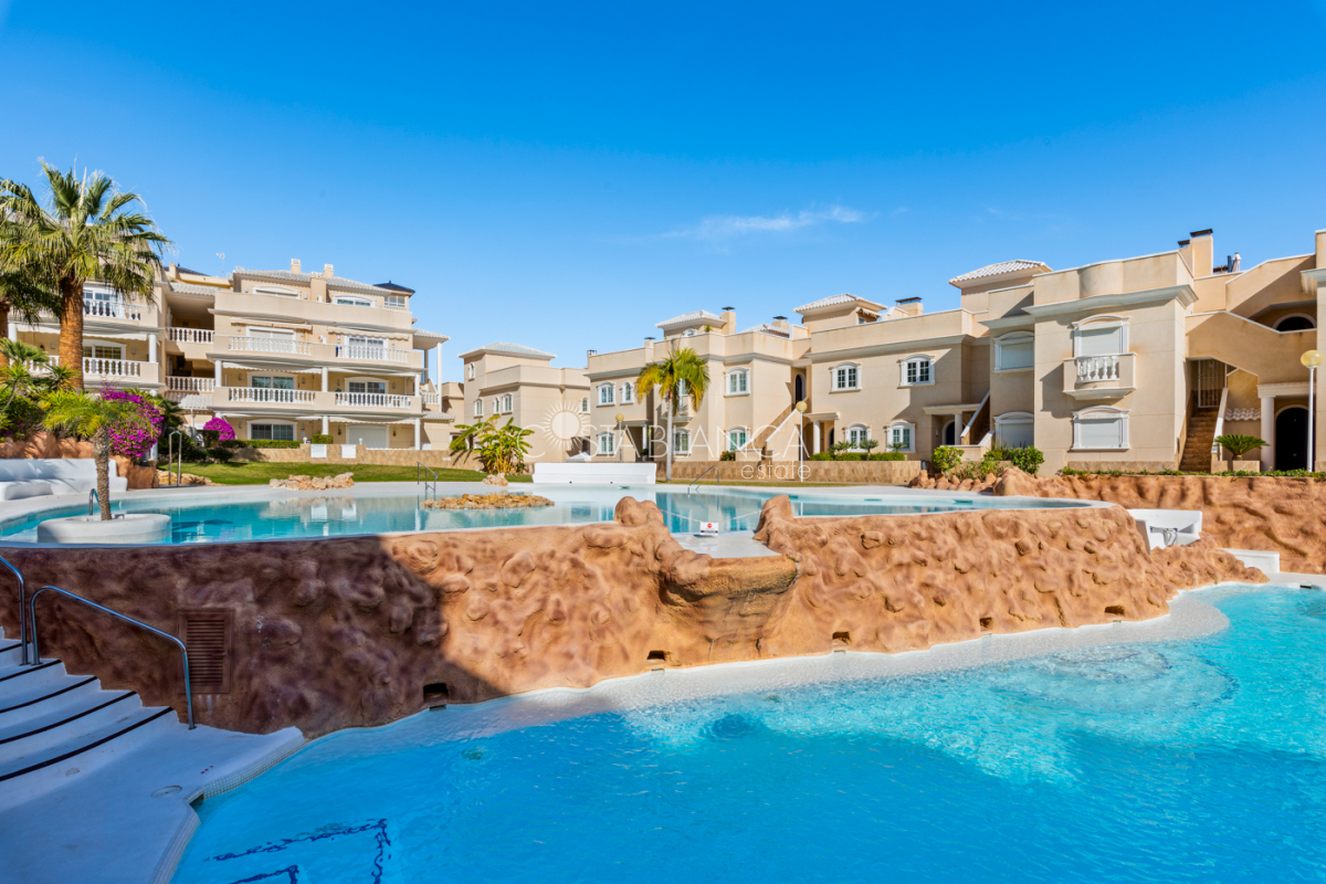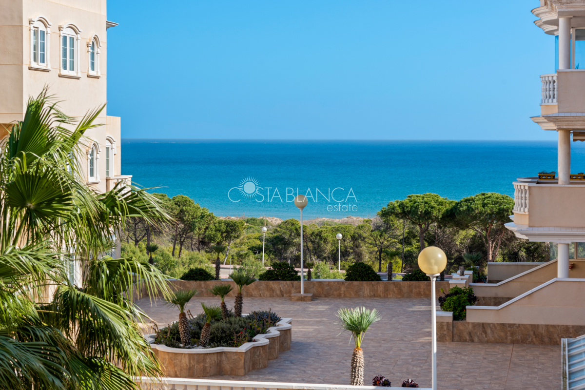 Luksusowy apartament mieszkalny z widokiem na morze w Pórtico Mar w Guardamar del SeguraMieszkanie składa się z nowoczesnego, przestronnego salonu z otwartą kuchnią, dwóch sypialni, pralni oraz łazienki. Obiekt dysponuje zewnętrznym tarasem z częścią wypoczynkową z widokiem na morze i wspólnym ogrodem. Jest wyposażony w klimatyzację.Pórtico de Mar obejmuje około 150 apartamentów o różnych funkcjach. Jeśli chodzi o obszary wspólne i przestrzeń zewnętrzną, ma 3 baseny, wodospady, wewnętrzny ogród i kilka stref relaksu. Jeśli chodzi o bezpieczeństwo, właściciele wchodzą na teren kompleksu za pomocą osobistego kodu PIN, a na terenie kompleksu znajduje się całodobowy system bezpieczeństwa.W cenie obszerny garaż na osiedlu.Mieszkanie znajduje się zaledwie 5 minut spacerem od plaży, a przy wejściu do kompleksu mieszkalnego znajduje się restauracja i bar.Mieszkanie posiada licencję turystyczną.ObszarGuardamar to przytulne i popularne miejsce na Costa Blanca, ze wspaniałą plażą o długości 11 km z drobnym piaskiem, wydmami i pięknym parkiem ciągnącym się kilometrami przez miasto. Znajdziesz tu także sklepy, supermarkety, restauracje, kawiarnie, bary, apteki, banki, usługi medyczne i dentystyczne oraz wszystko, czego możesz potrzebować. A także przystań, korty tenisowe, boisko do piłki nożnej, siłownie i inne. Znajduje się bardzo blisko pola golfowego La Marquesa i parku wodnego Rojales, a także tylko 10 km od Torrevieja, która oferuje szeroki program rekreacyjny dla wszystkich grup wiekowych, centra handlowe i nie tylko.Dotarcie tamGuardamar znajduje się około 30 minut jazdy samochodem od lotniska w Alicante i około 55 minut od lotniska w Murcji. Z Guardamar można łatwo dotrzeć do głównych miast w okolicy autostradą A-7 lub autostradą N-332, takich jak Elche, Alicante, Walencja, Murcja i Kartagena, żeby wymienić tylko kilka.
