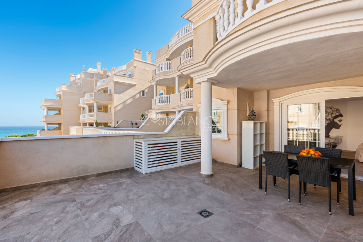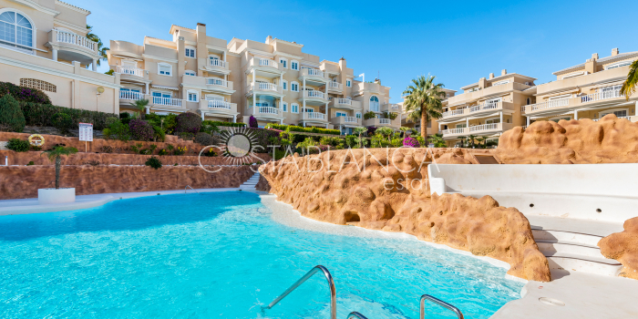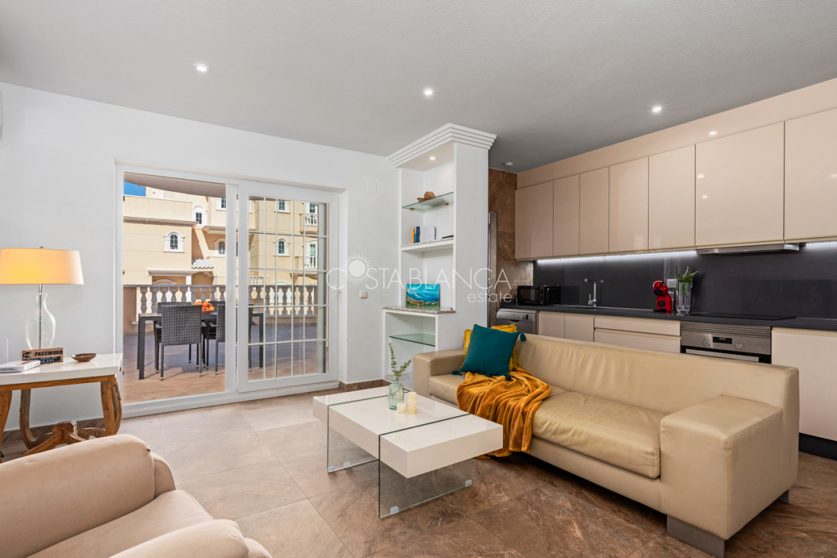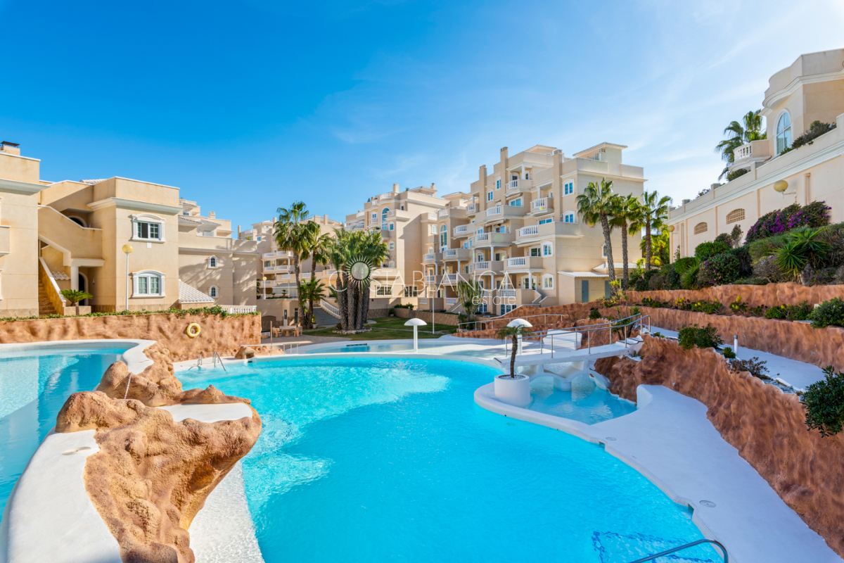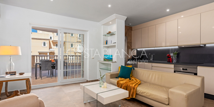 Luksusowy apartament mieszkalny z widokiem na morze w Pórtico Mar w Guardamar del SeguraMieszkanie składa się z nowoczesnego, przestronnego salonu z otwartą kuchnią, dwóch sypialni, pralni oraz łazienki. Obiekt dysponuje zewnętrznym tarasem z częścią wypoczynkową z widokiem na morze i wspólnym ogrodem. Jest wyposażony w klimatyzację.Pórtico de Mar obejmuje około 150 apartamentów o różnych funkcjach. Jeśli chodzi o obszary wspólne i przestrzeń zewnętrzną, ma 3 baseny, wodospady, wewnętrzny ogród i kilka stref relaksu. Jeśli chodzi o bezpieczeństwo, właściciele wchodzą na teren kompleksu za pomocą osobistego kodu PIN, a na terenie kompleksu znajduje się całodobowy system bezpieczeństwa.W cenie obszerny garaż na osiedlu.Mieszkanie znajduje się zaledwie 5 minut spacerem od plaży, a przy wejściu do kompleksu mieszkalnego znajduje się restauracja i bar.Mieszkanie posiada licencję turystyczną.ObszarGuardamar to przytulne i popularne miejsce na Costa Blanca, ze wspaniałą plażą o długości 11 km z drobnym piaskiem, wydmami i pięknym parkiem ciągnącym się kilometrami przez miasto. Znajdziesz tu także sklepy, supermarkety, restauracje, kawiarnie, bary, apteki, banki, usługi medyczne i dentystyczne oraz wszystko, czego możesz potrzebować. A także przystań, korty tenisowe, boisko do piłki nożnej, siłownie i inne. Znajduje się bardzo blisko pola golfowego La Marquesa i parku wodnego Rojales, a także tylko 10 km od Torrevieja, która oferuje szeroki program rekreacyjny dla wszystkich grup wiekowych, centra handlowe i nie tylko.Dotarcie tamGuardamar znajduje się około 30 minut jazdy samochodem od lotniska w Alicante i około 55 minut od lotniska w Murcji. Z Guardamar można łatwo dotrzeć do głównych miast w okolicy autostradą A-7 lub autostradą N-332, takich jak Elche, Alicante, Walencja, Murcja i Kartagena, żeby wymienić tylko kilka.